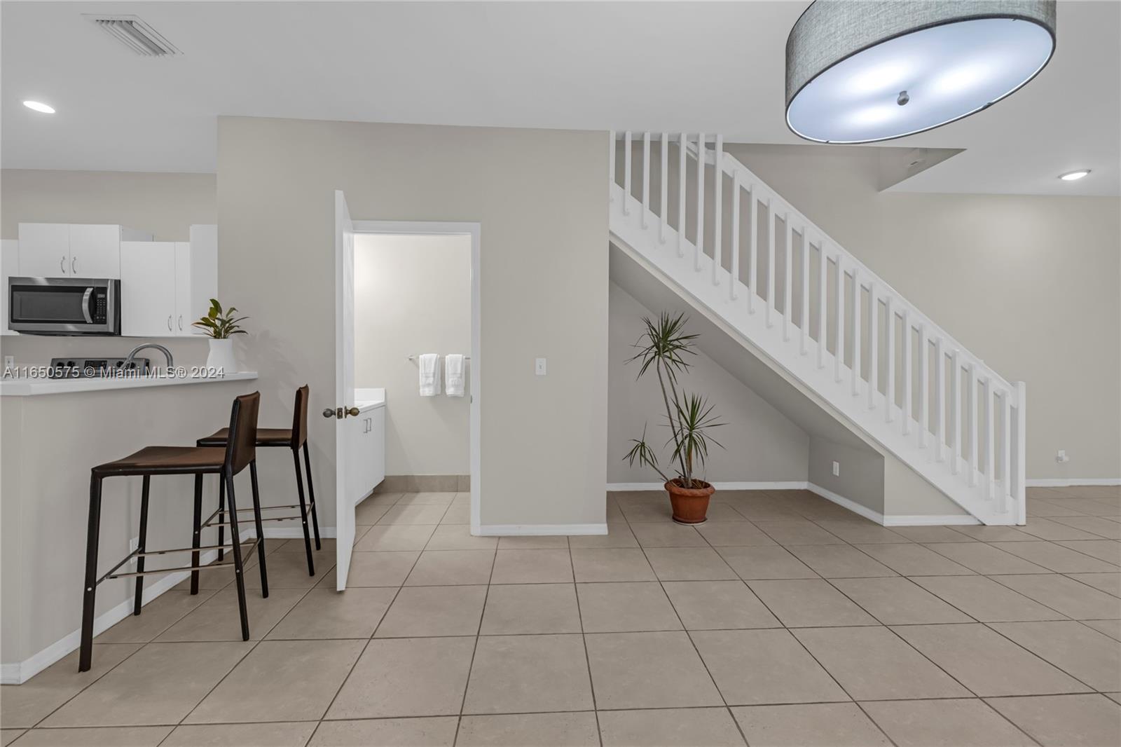Corner unit townhouse in the sought-after San Messina community in Weston, featuring 4 beds. and 2.5 baths and 1 car garage with a second parking space in the driveway. The kitchen is designed with S.S. appliances, snack bar and a breakfast area, perfect for casual dining. Living room and dining room are combined into a spacious open area that flows seamlessly to a screened porch, ideal for entertaining. The living areas boast tile flooring, while the staircase and all bedrooms have newly installed vinyl flooring, adding a modern touch. The community offers a pool and a playground area. Located just minutes away from I-75, shopping centers, schools, this townhouse offers both convenience and comfort. Whether you're looking for a new home or an investment property, this is perfect for you.