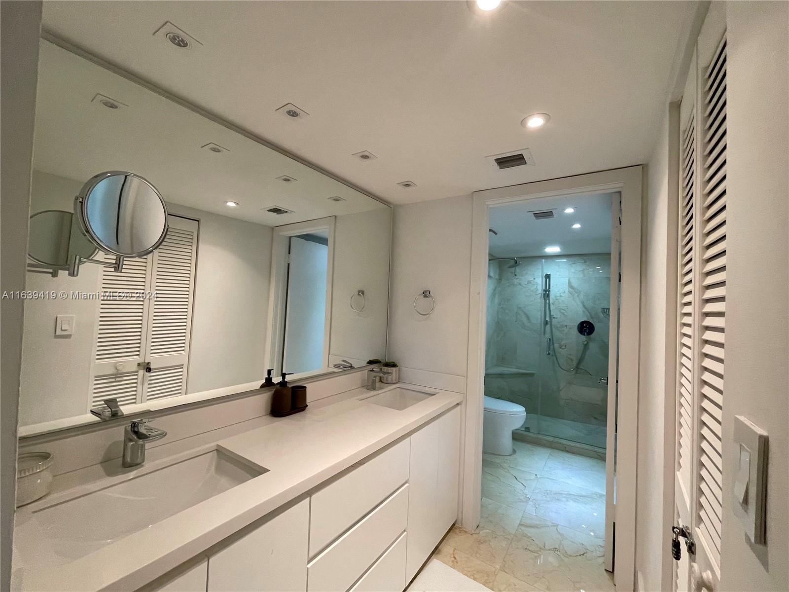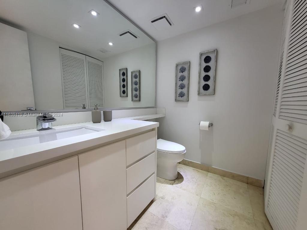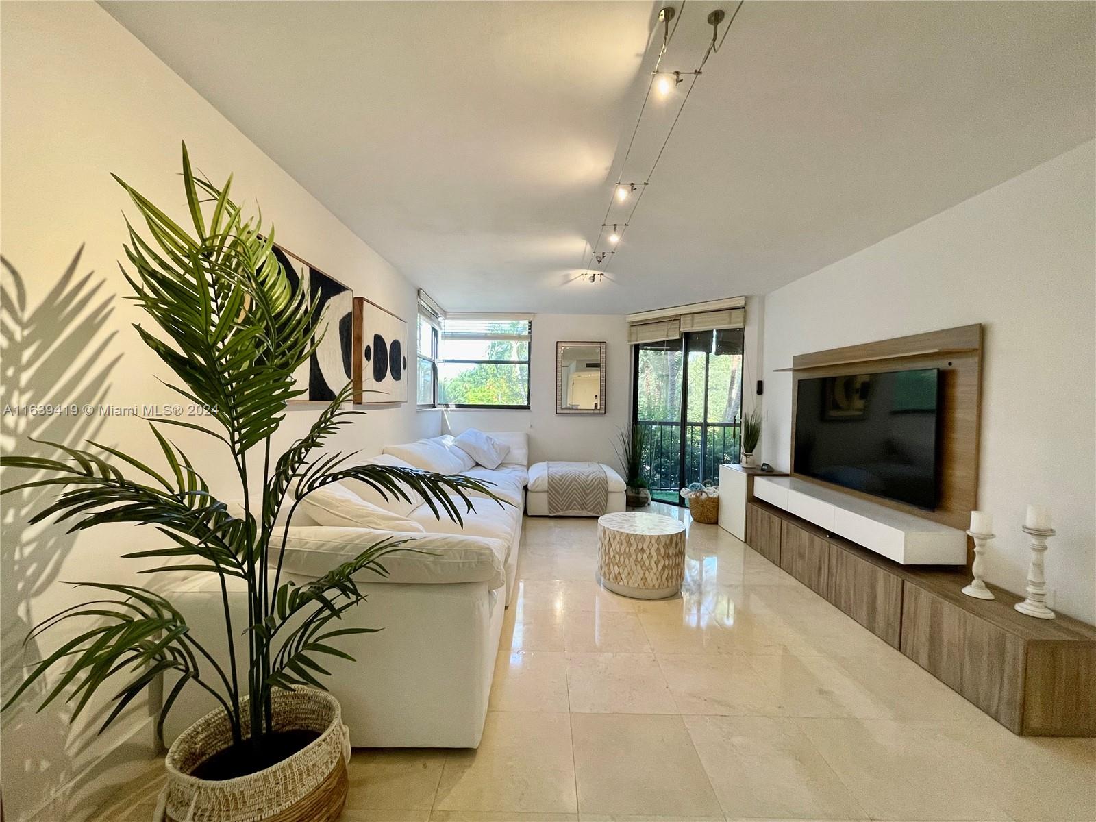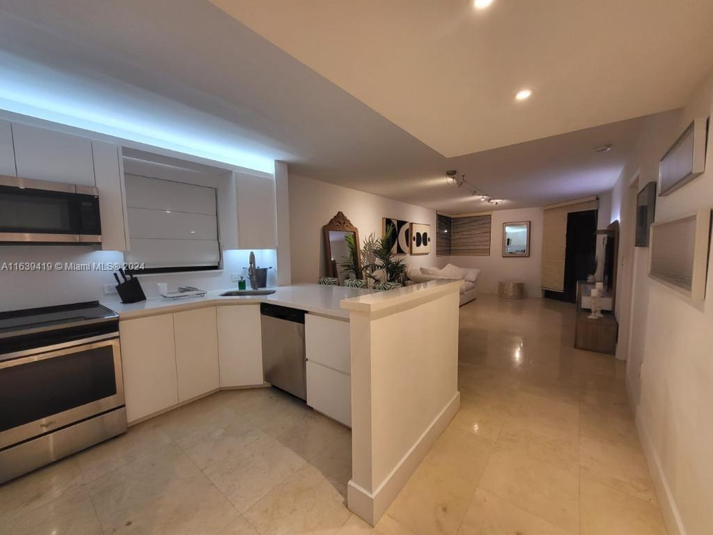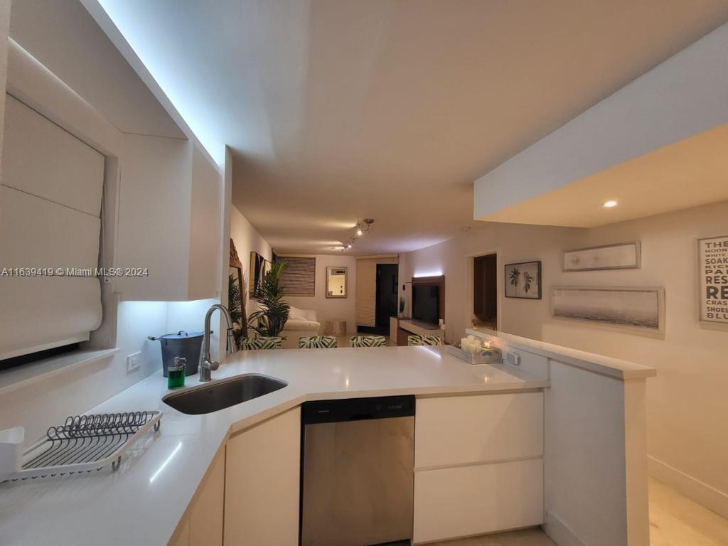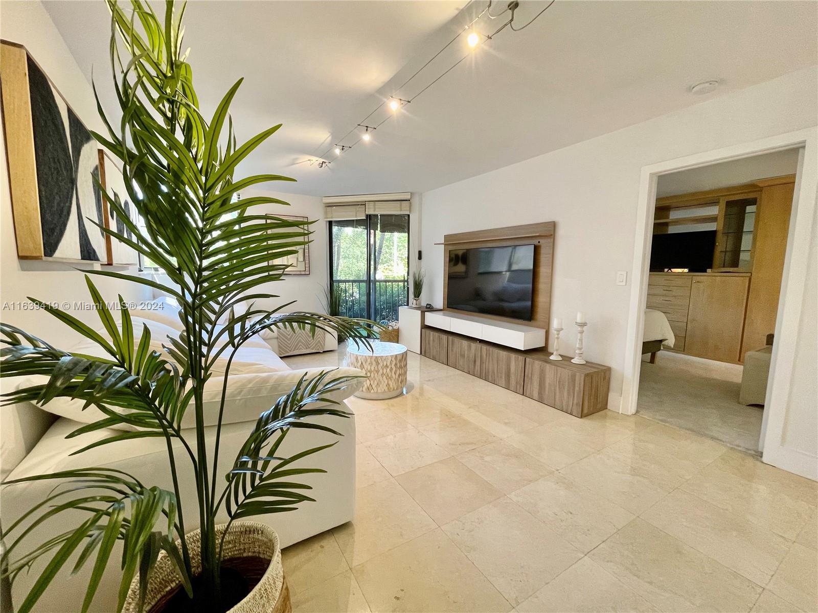 This 1 bedroom 1.5 bath unit is fully remodeled, impact windows are being installed, assessment are already paid. Soft close kitchen cabinets, stainless steel appliances, recessed lighting. Bedroom has plenty of closet space, with walk in closet and custom built in cabinet. Bathroom with double sinks. This building has open hallways that offer a very serene and tropical atmosphere with its lush trees, gardens and ponds. It has two pools and a gym. Beach access within walking distance.