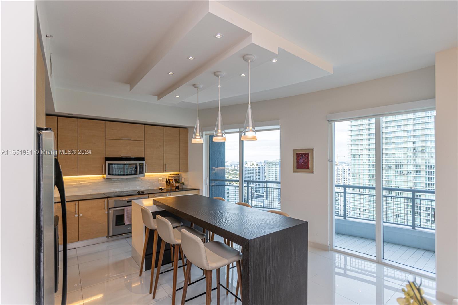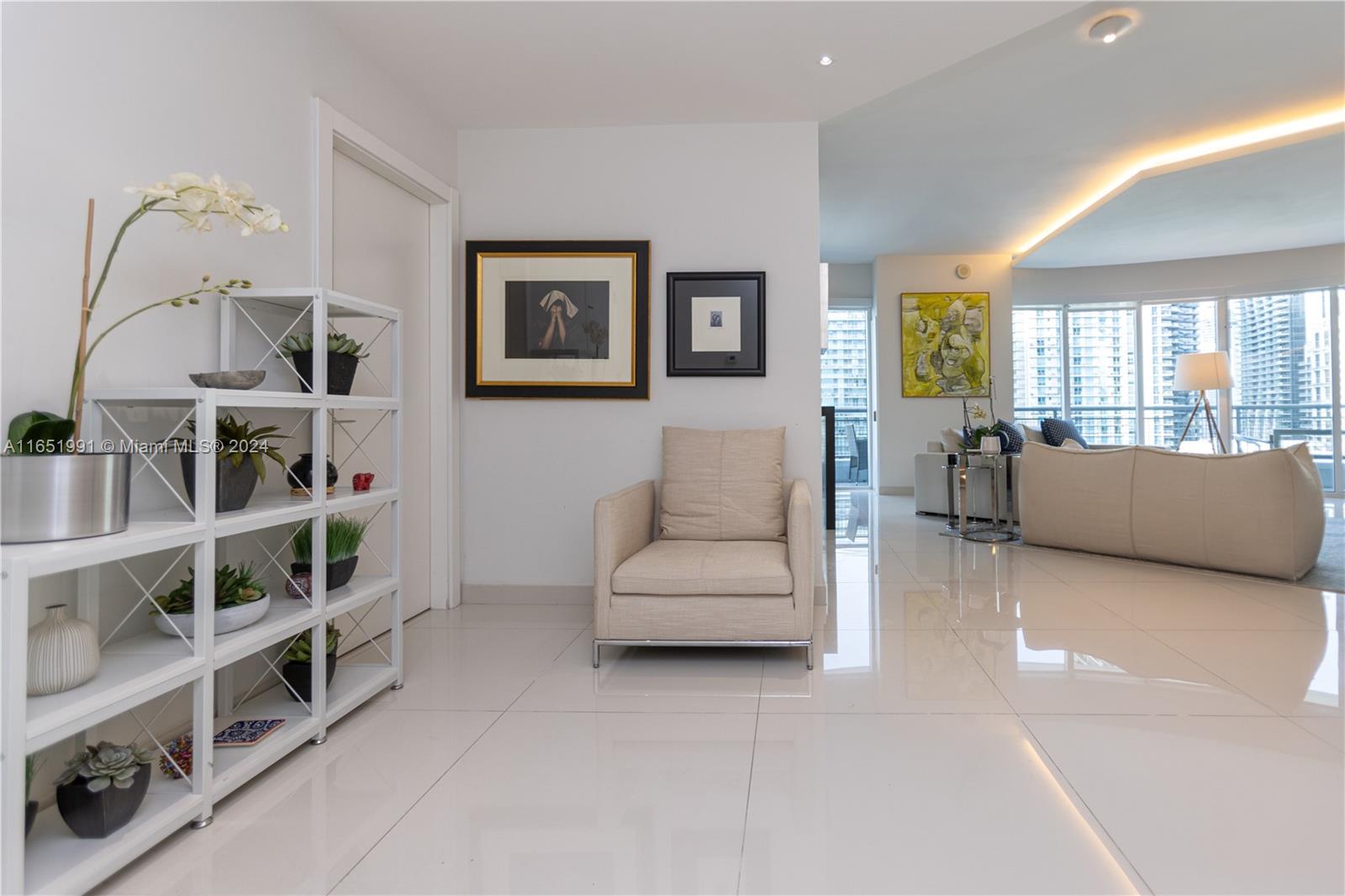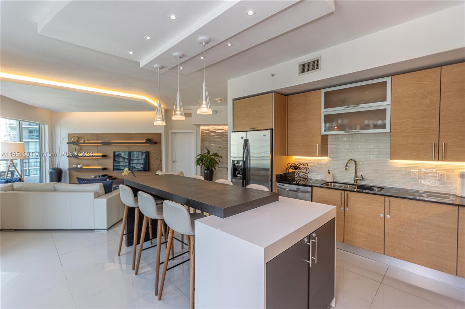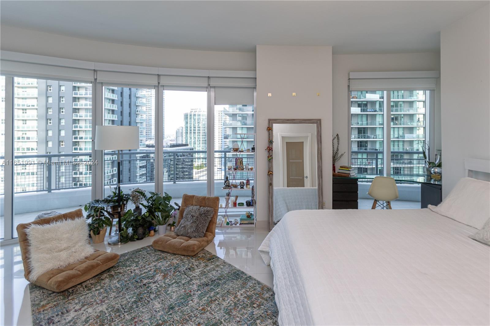 Spectacular 1666 sqft corner unit completely updated with breath taken city views from every room and partial ocean views. Wrap around balcony, open kitchen, custom closets, window treatments and white tile floors. Two large bedrooms with 2 12 baths with floor to ceiling windows. One covered parking . Walking distance to restaurants and Brickell City Centre. Infinity is a full service building with 24hrs front desk service, security and valet parking.
