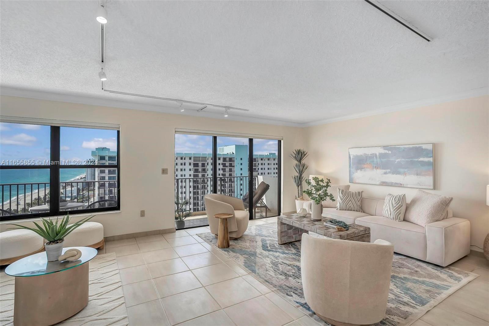 Exceptional Residence with Panoramic Ocean, Intercoastal, Lake, and City Views! This CORNER UNIT just below the penthouse has been meticulously well maintained offering an open-concept floor plan showcasing stunning ocean views. This unit boasts three generously-sized bedrooms & three bathrooms, including a spacious primary suite with an elegant dressing area, separate shower & spa-like tub, and dual sinks. Residents at the Summit have access to an array of premium amenities, such as direct beach access, a pool side cafe, two heated pools, two tennis courts, pickleball, gym, sauna, golf putting green, driving net, shuffleboard, exercise classes, game rooms, 24 hour security and much more. Ideally situated in the BEST location on the water in all of Southeast Florida!