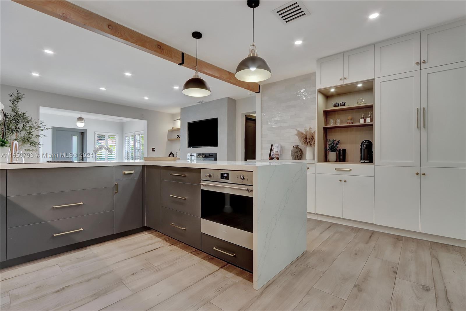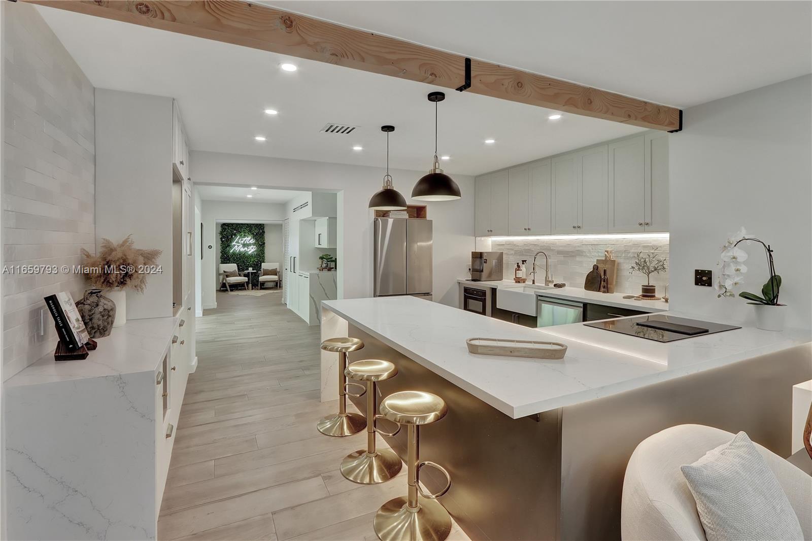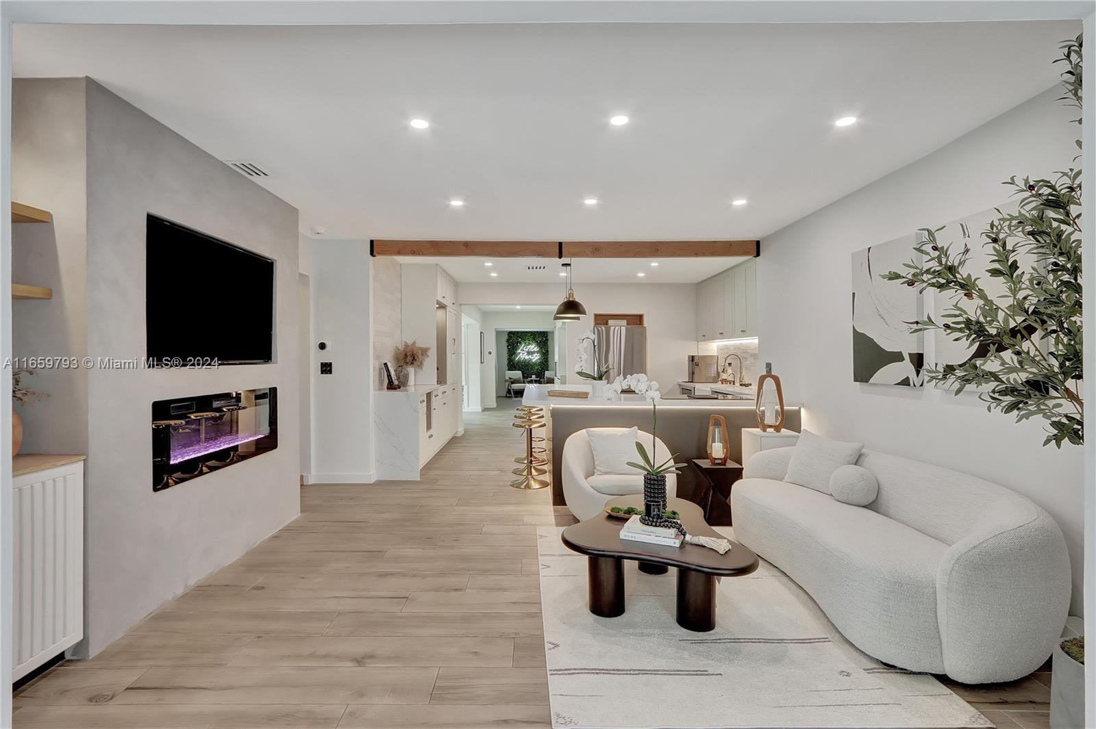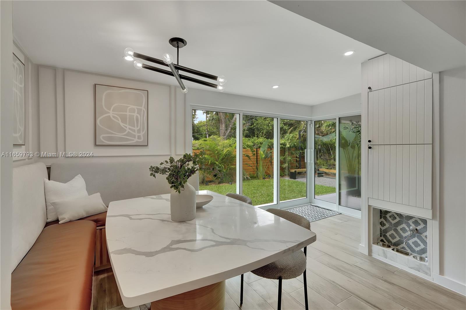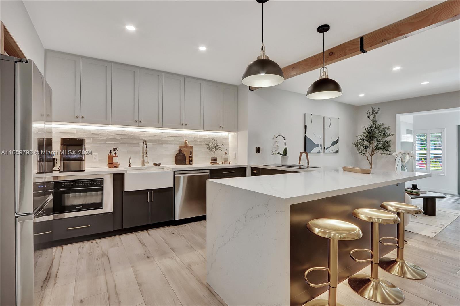 This exquisitely renovated home offers luxurious, move-in-ready living in beautiful Coral Gables! Centrally situated near top dining, shopping, acclaimed schools and golf courses, this residence blends sophisticated design with high-end finishes and amenities. The home features Buster & Punch light switches, designer tiles, impact windows and doors, an electric fireplace, heated toilet, pet watering station, spacious custom closets, a spa-like master bathroom with double shower, sunken whirlpool tub and private toilet room. The chef's dream kitchen is equipped with stainless steel appliances, an Italian induction stove, built-in coffee bar and a custom built-in banquette. Enjoy stunning views of the professionally landscaped tropical garden.