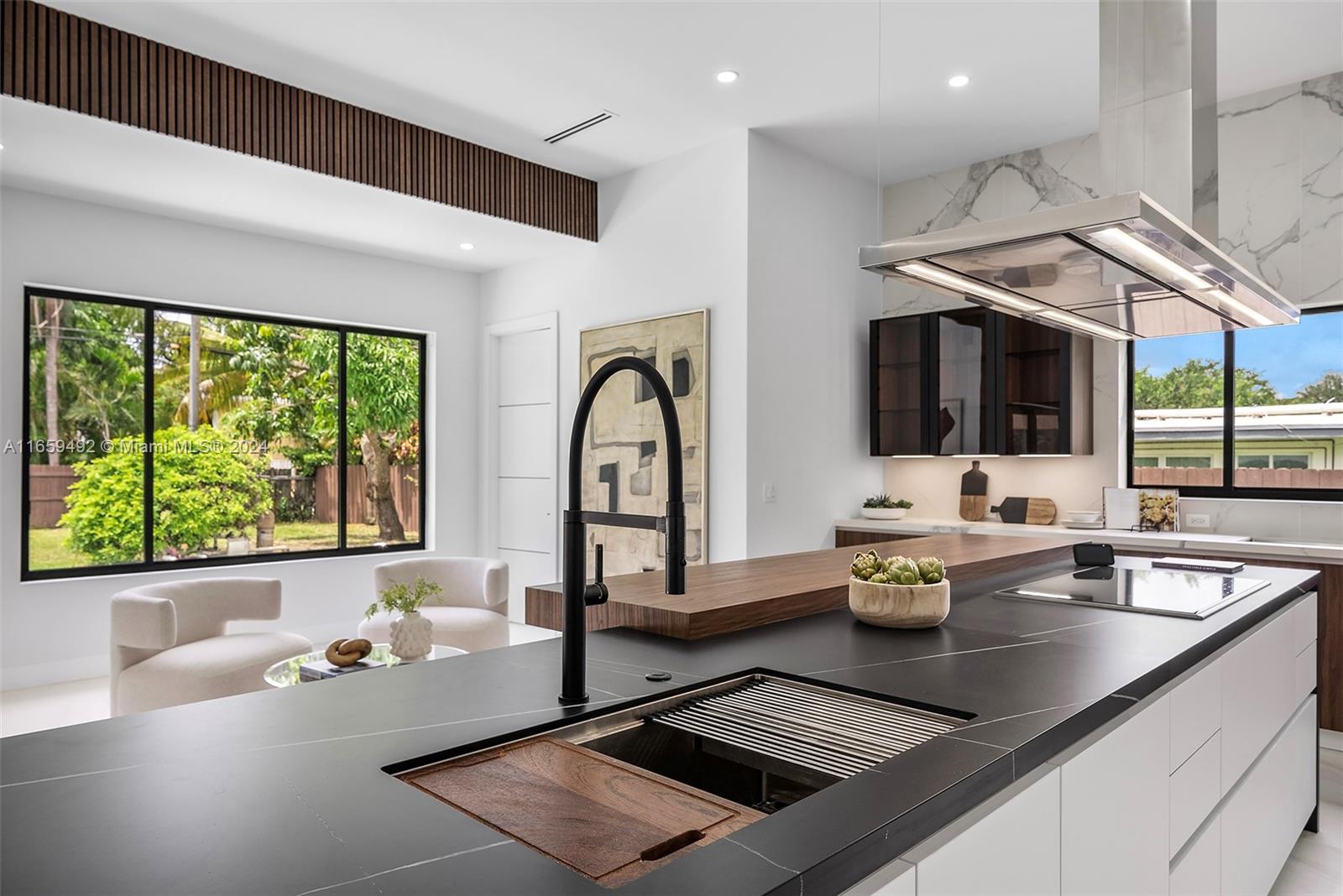 Ultra-modern, fully renovated home offers 5 bed and 5 bath, 3,300 SF liveable with 12ft high ceilings. The open layout creates a bright, airy feel, seamlessly connecting the living room, dining area, and gourmet kitchen, featuring top-tier appliances, MiaCucina Italian cabinets kosher kitchen double sink. Primary bedroom opens directly to the splendid backyard, where you'll find a large pool perfect for lounging and entertaining. The luxurious en-suite bath offers a double sink, soaking tub, and walk-in shower, while the ultra luxury and spacious walk-in closet provides ample storage. Four additional bedrooms feature en-suite bathrooms, and a convenient cabana bath is ideal for poolside days. This home exudes modern elegance and thoughtful design, ideal for hosting and outdoor enjoyment.
