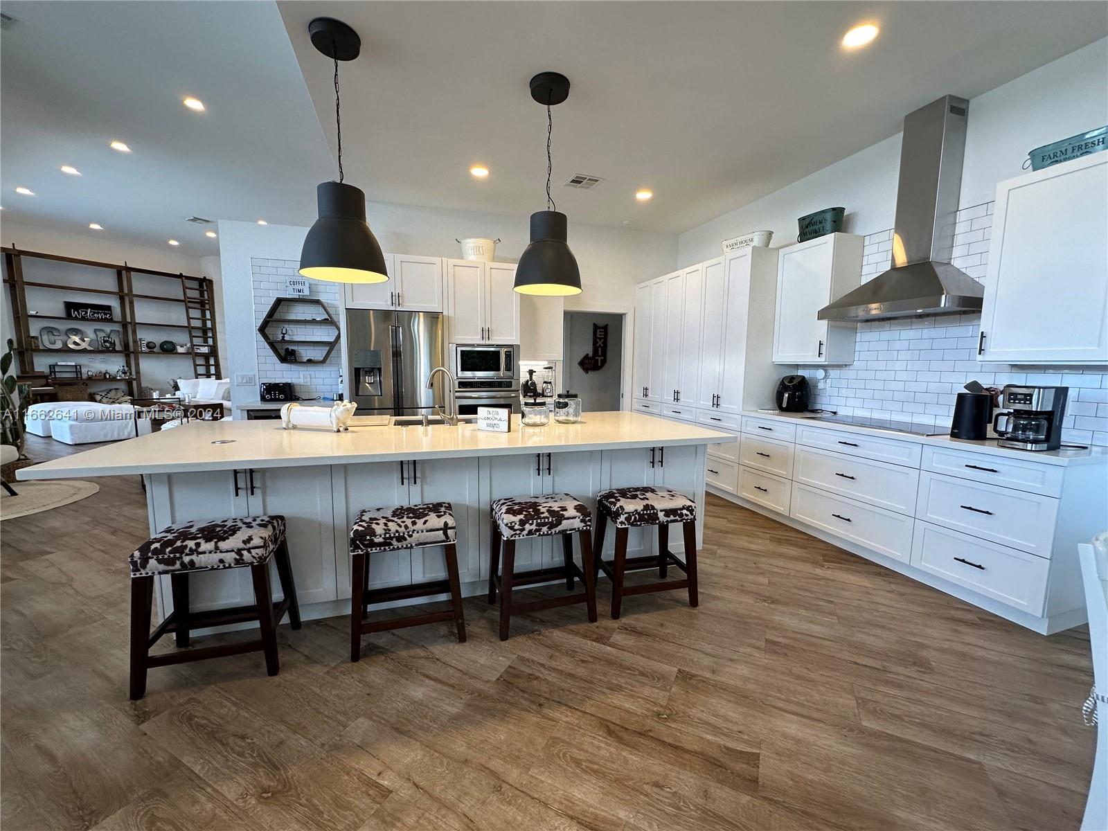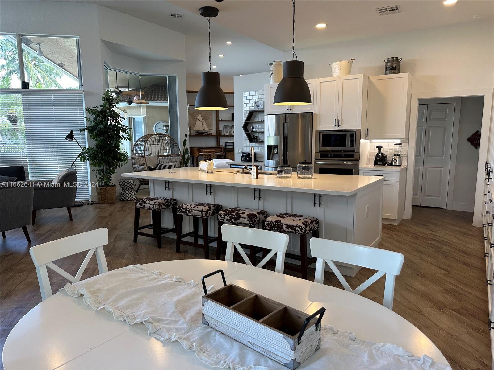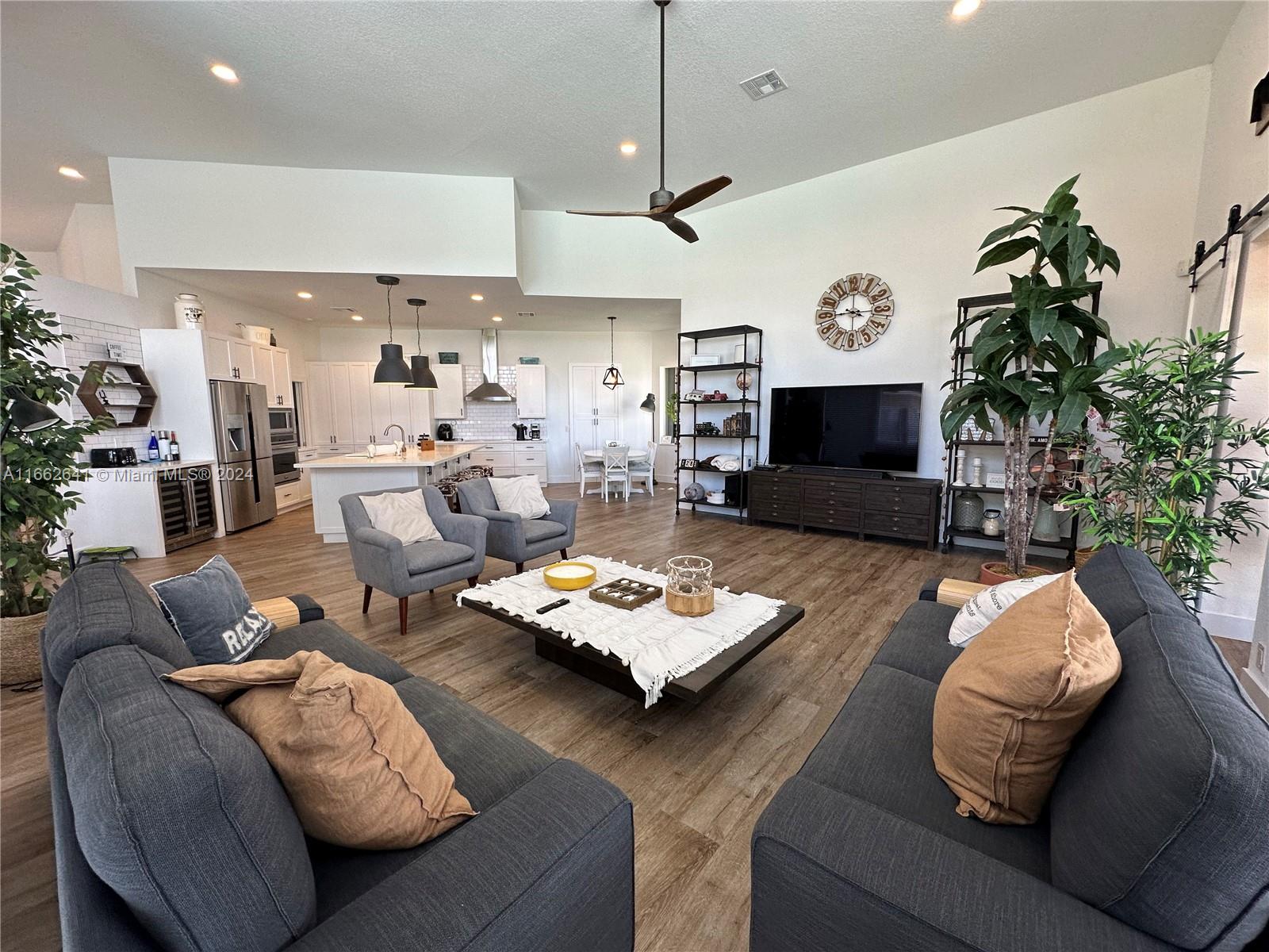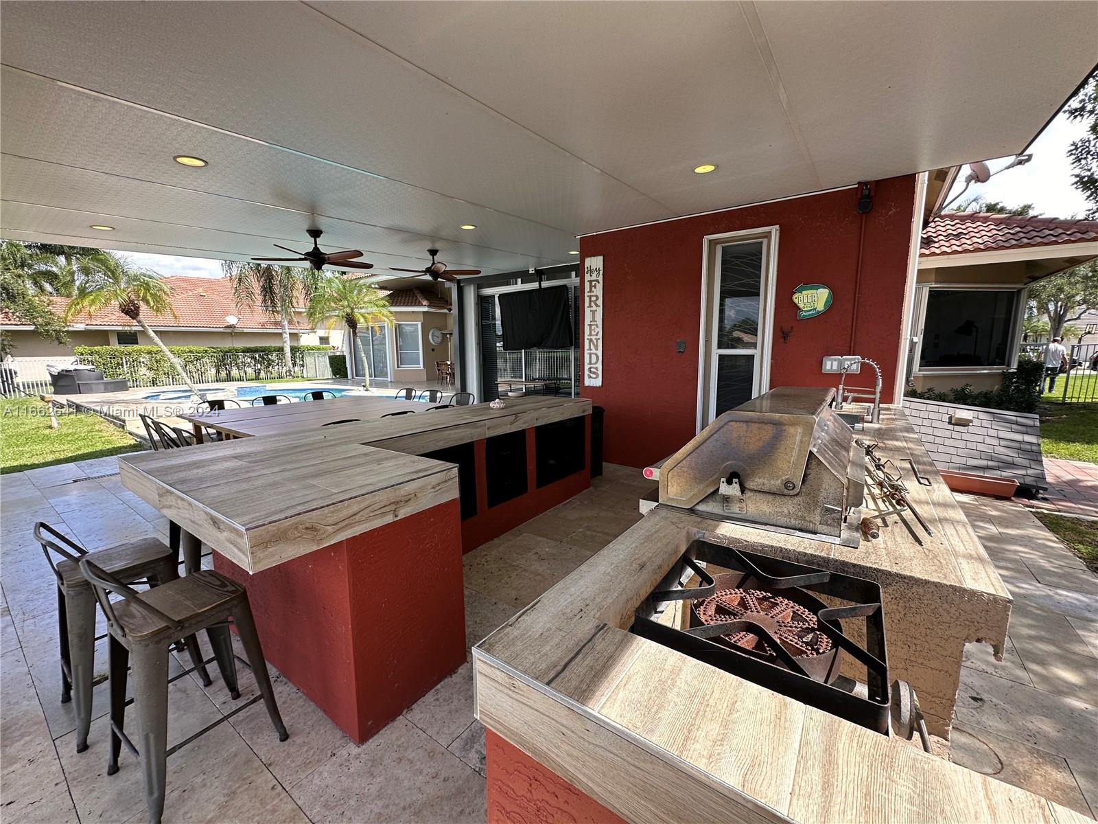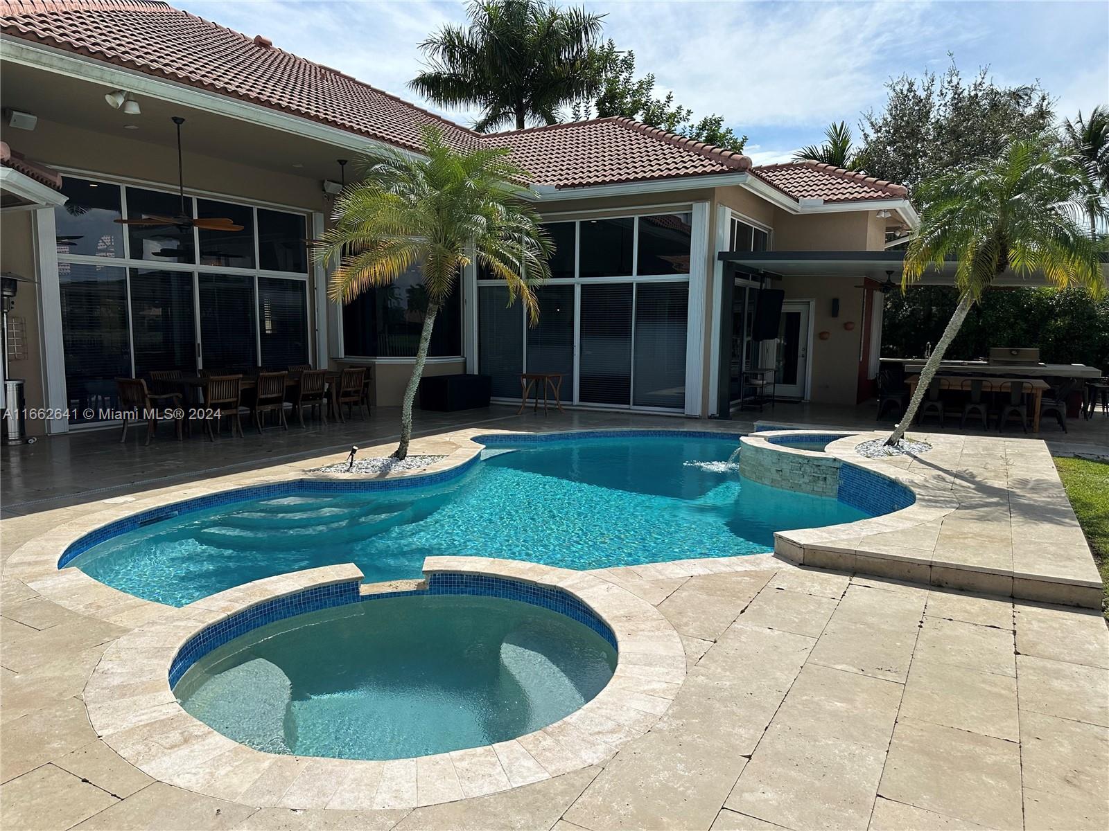 Welcome to your dream home! This beautifully renovated residence features 5 spacious bedrooms, 4 full bathrooms, and a convenient half bath, perfect for families and guests alike. Nestled within a prestigious gated community, you'll enjoy the ultimate blend of luxury and security. The open-concept layout is designed for modern living, with stylish finishes and abundant natural light throughout. The gourmet kitchen is a chef's delight, complete with high-end appliances and elegant countertops, seamlessly flowing into the inviting living and dining areas. Featuring a fantastic outdoor barbecue and summer kitchen, ideal for entertaining and al fresco dining. Enjoy breathtaking sunsets from your spacious patio