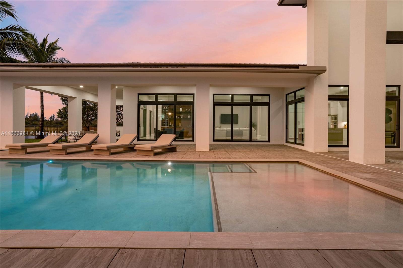 This stunning custom-built home, designed with impeccable attention to detail, offers modern luxury in one of Weston's most desirable communities, Windmill Reserve. Thoughtfully crafted for luxe family living in mind. This two-story estate features a spacious gourmet kitchen with granite countertops and oversized island. Primary suite boasts a lavish bath with custom walk-in closets for both her/him, wet bar and reading area overlooking the beauty of the everglades. With seven en-suite bedrooms, an office, and 8.5 baths, offering abundant space. Outside, a large covered lanai overlooks a breathtaking infinity pool, heated spa, and entertainment areas on a lot with serene reserve views. Additional features include a 4-car garage, guest parking, and elegant tile flooring throughout.