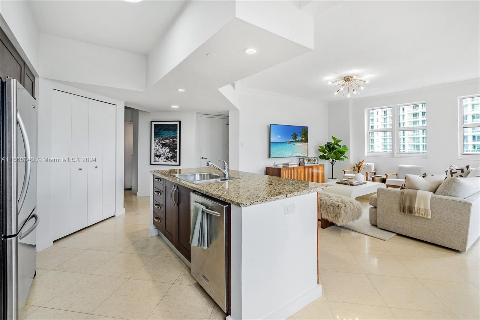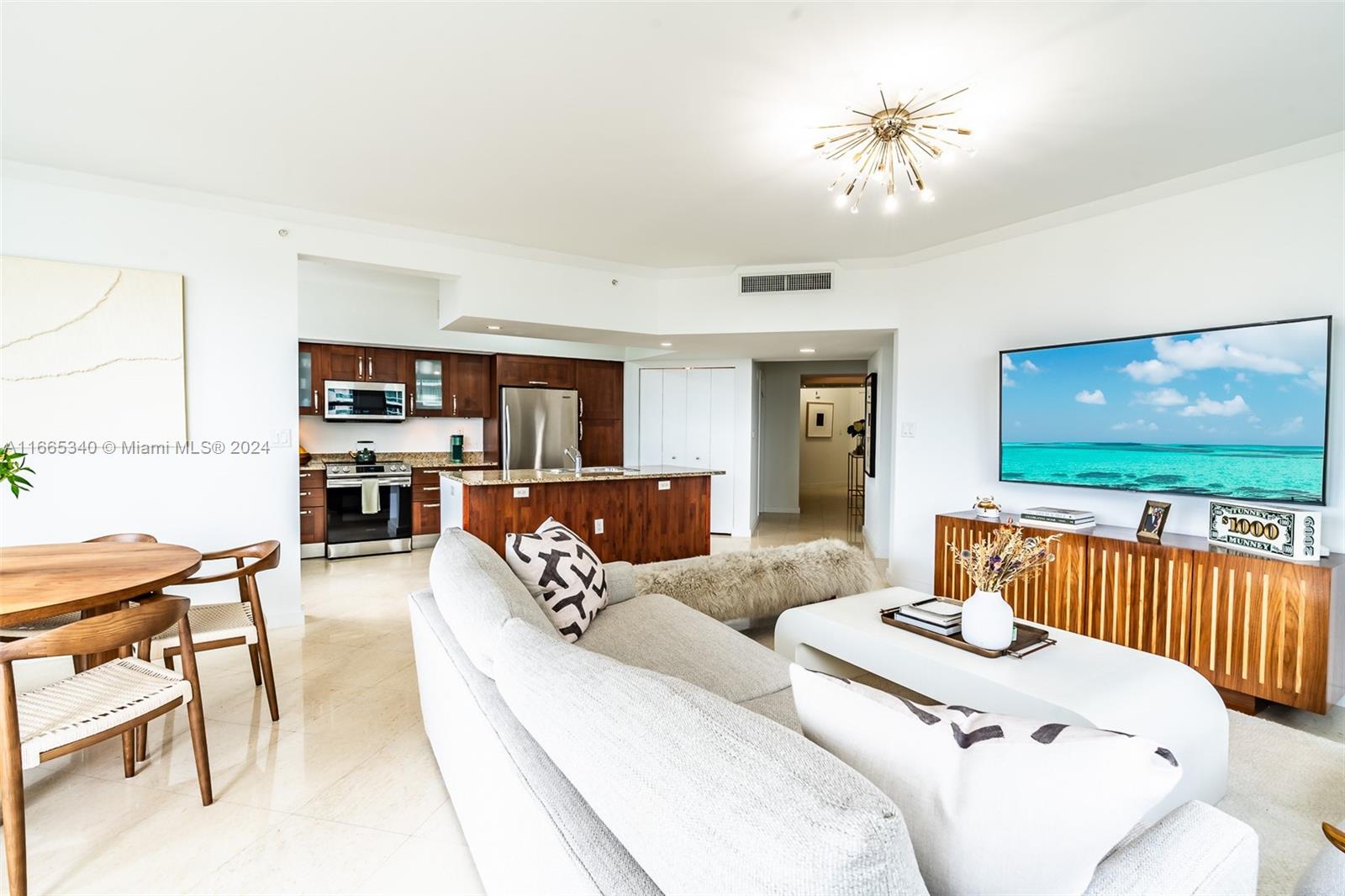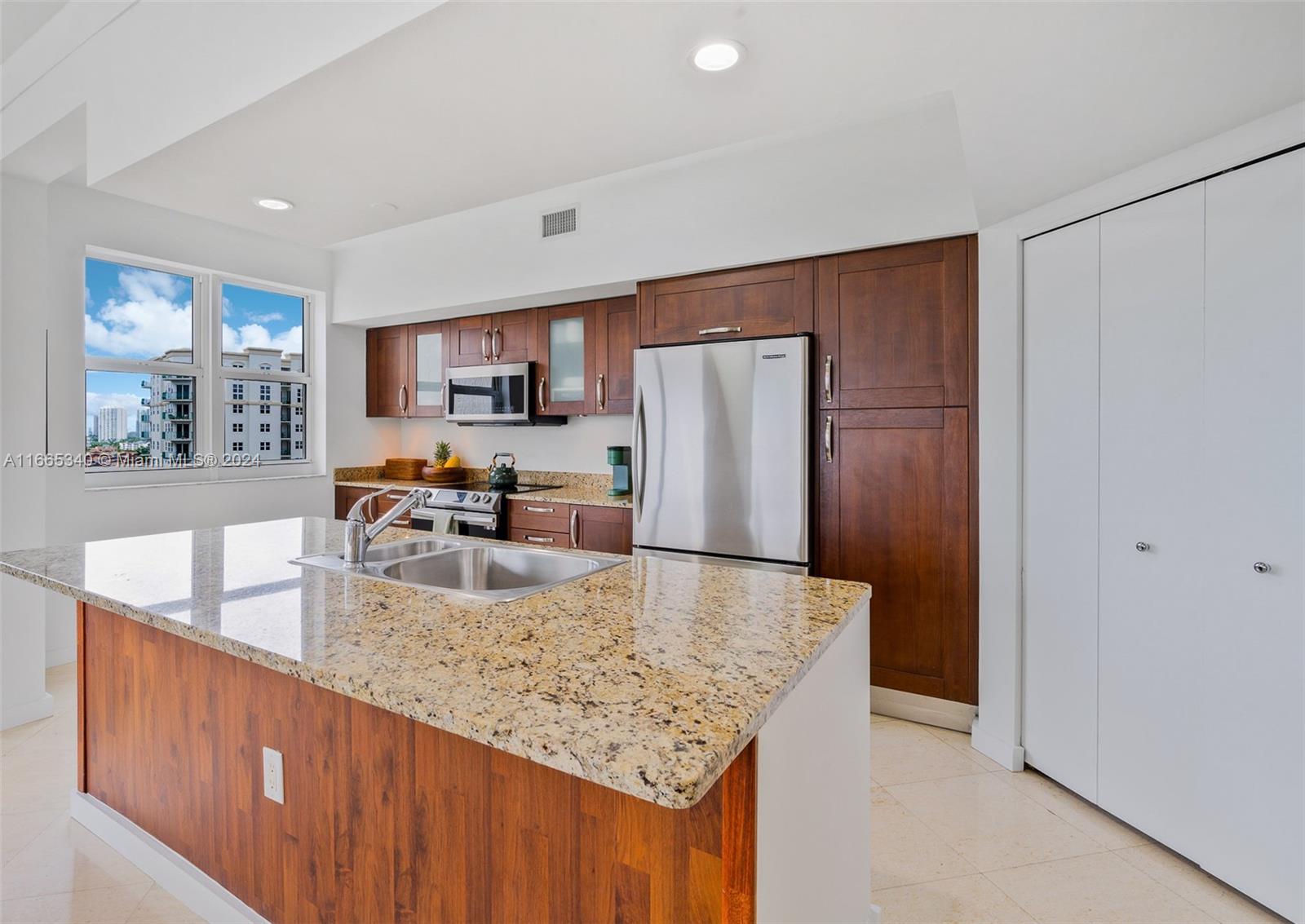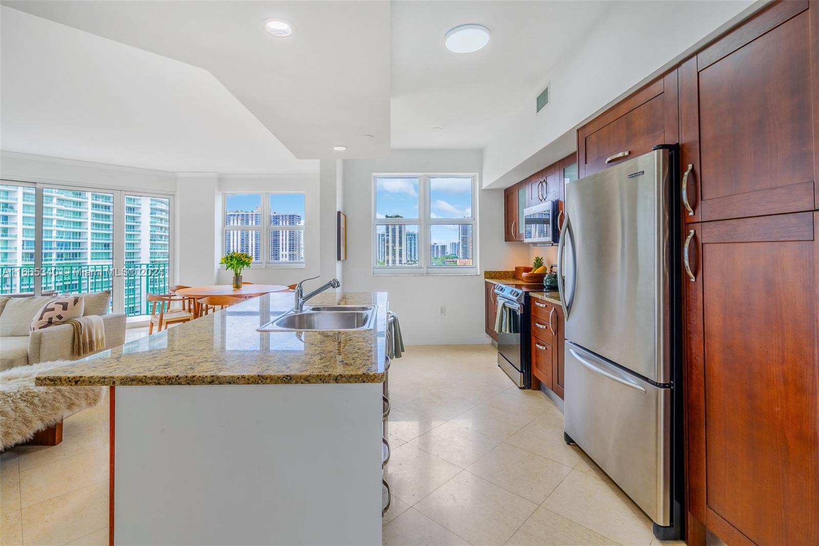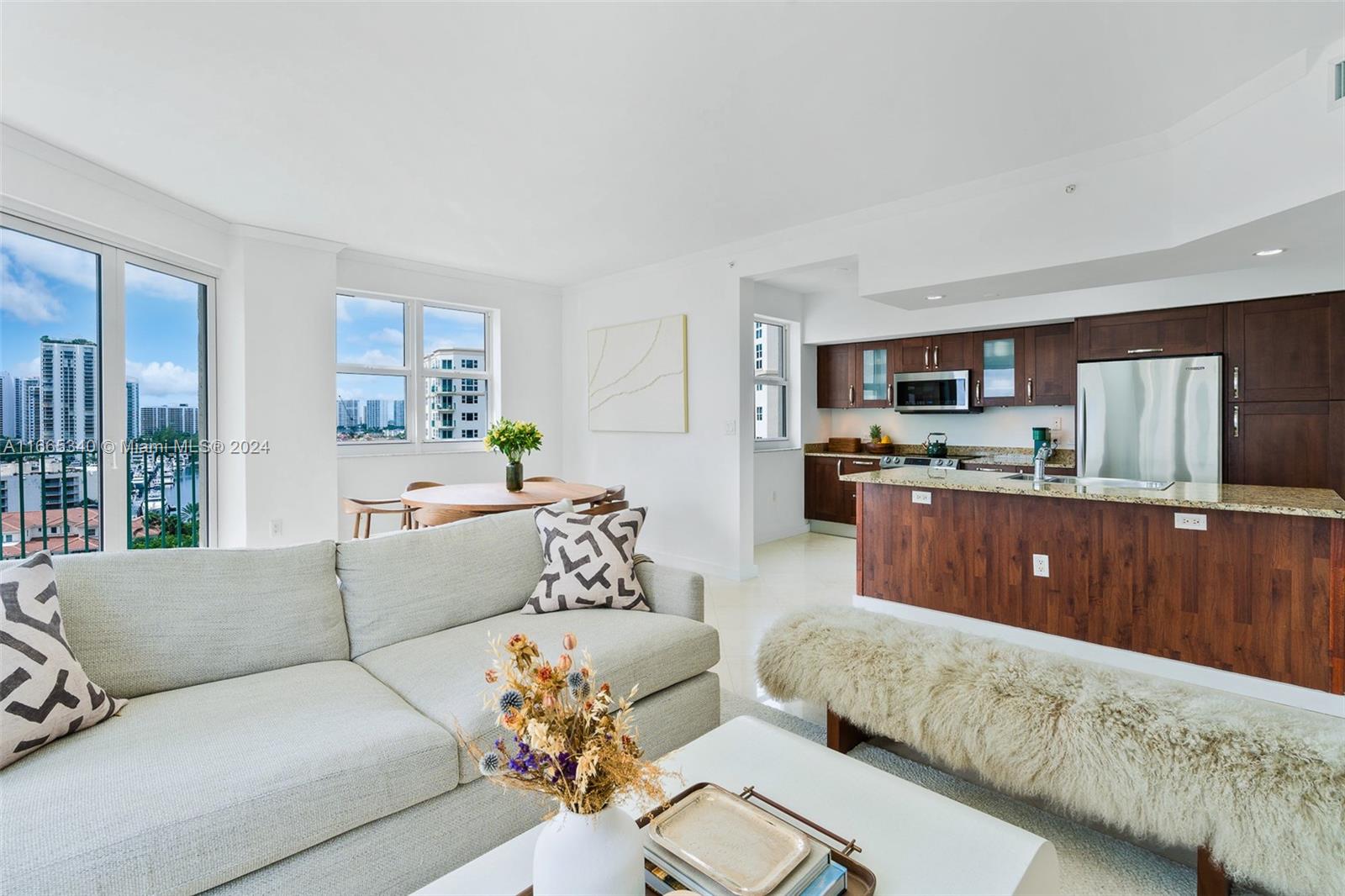 Welcome to luxury living at Turnberry Village in Aventura! This stunning 3 BR, 3 BA high-rise condo offers 1,681 SF of modern elegance. Enjoy an open-concept living space bathed in natural light, with breathtaking direct ocean and city views. The gourmet kitchen, equipped w/ hi-end built-ins & a dishwasher, flows seamlessly into a formal dining area. Each bedroom offers ample space and privacy, while the spa-like bathrooms add a touch of luxury. Top-tier amenities include a state-of-the-art gym, sauna, heated pool, private terrace, barbecue area, & infinity pool. Convenience is paramount with a doorman, concierge, elevator & valet parking. Additional perks include a bike room, common storage, and a common kitchen. Parking is easy with two assigned spots and guest parking options.