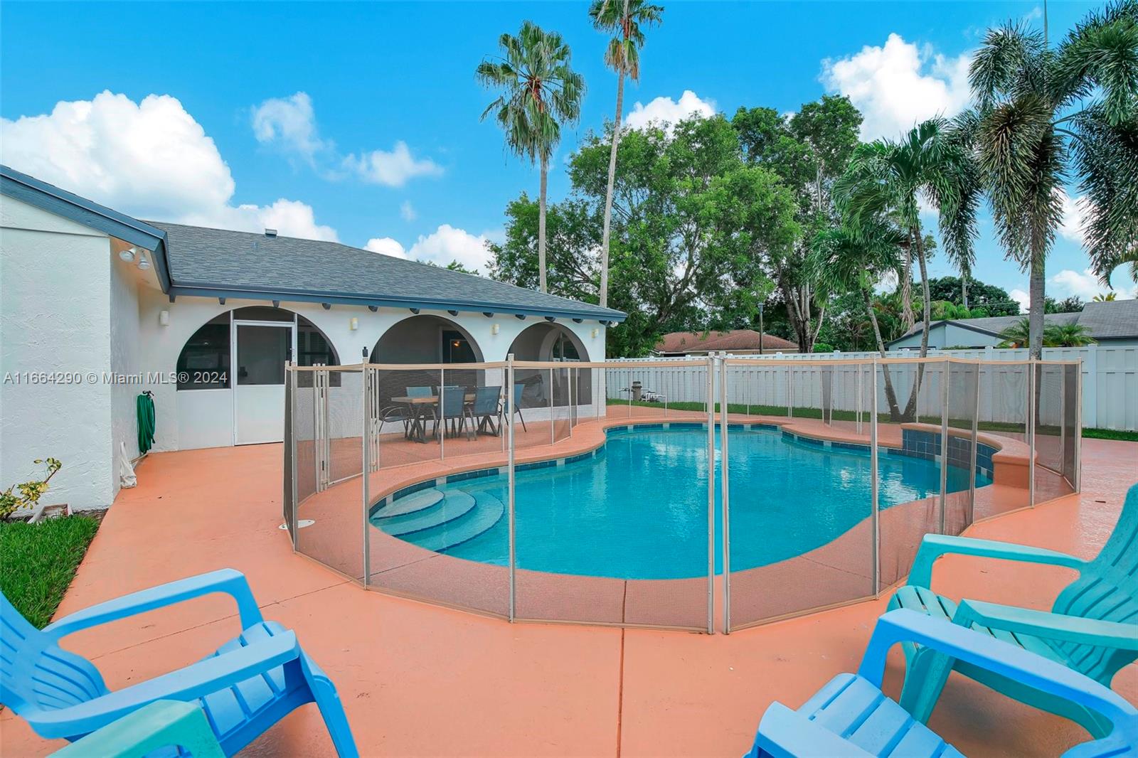This remarkable pool home sits on a large corner lot in the highly sought-after Cooper City community of Flamingo Gardens. Standing out for its spaciousness and fresh upgrades, it features a brand-new roof, updated quartz kitchen, new AC compressor, new washer-dryer, fresh paint, Bahama shutters (windows) and integrated between-the-glass blinds (French doors). Outside, enjoy a wonderful patio, great for barbecues and entertaining, and the safety of a pool fence along with a new Nautilus pool vacuum. This home offers top-rated schools and is just a short walk to Griffin Elementary and in close in proximity to the 10-acre Bill Lips Sports Complex. This is the perfect home for families looking for comfort, convenience, and a vibrant community! Don't miss out on this incredible opportunity.