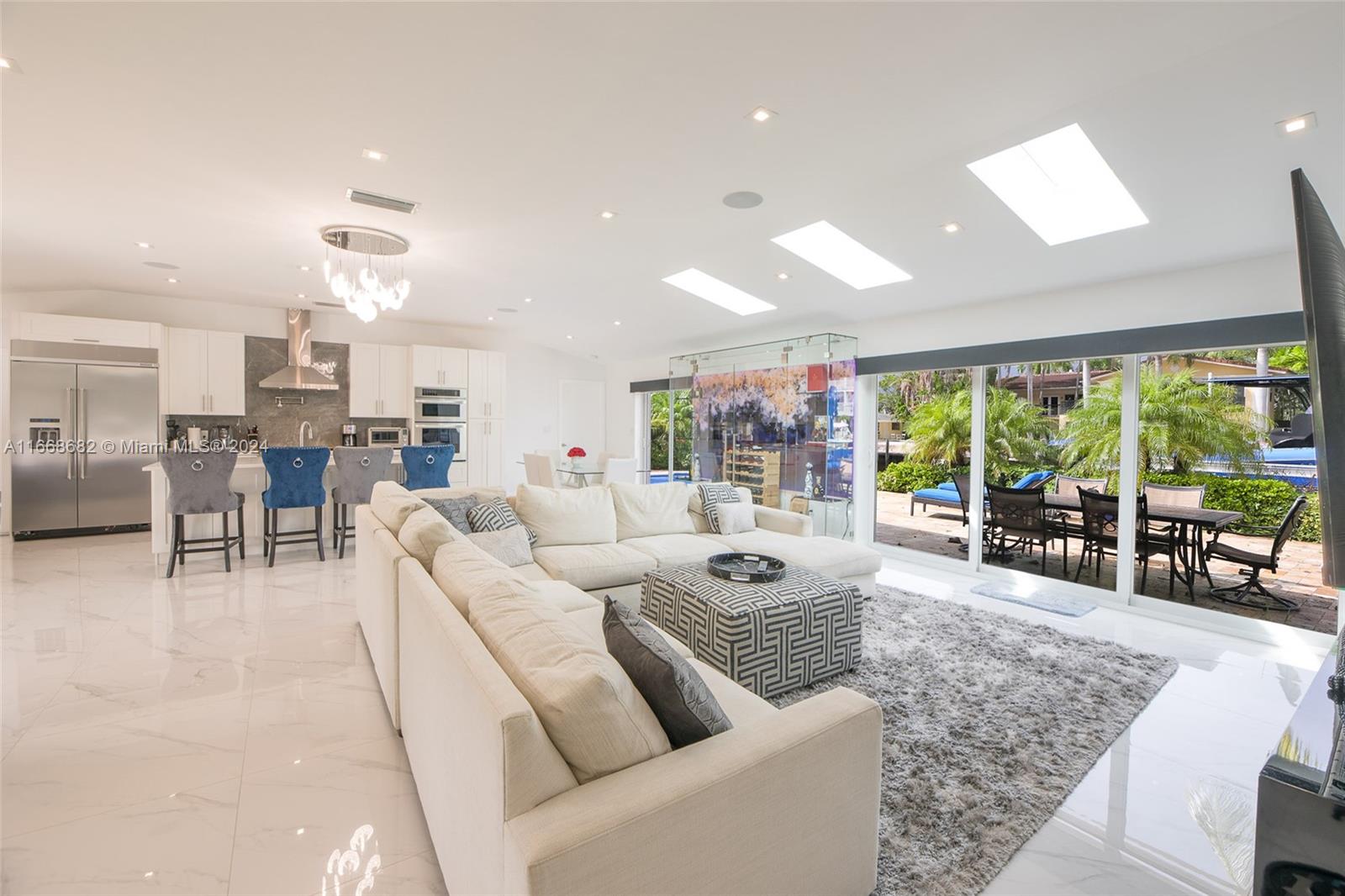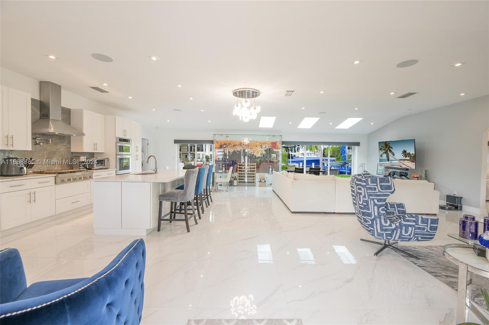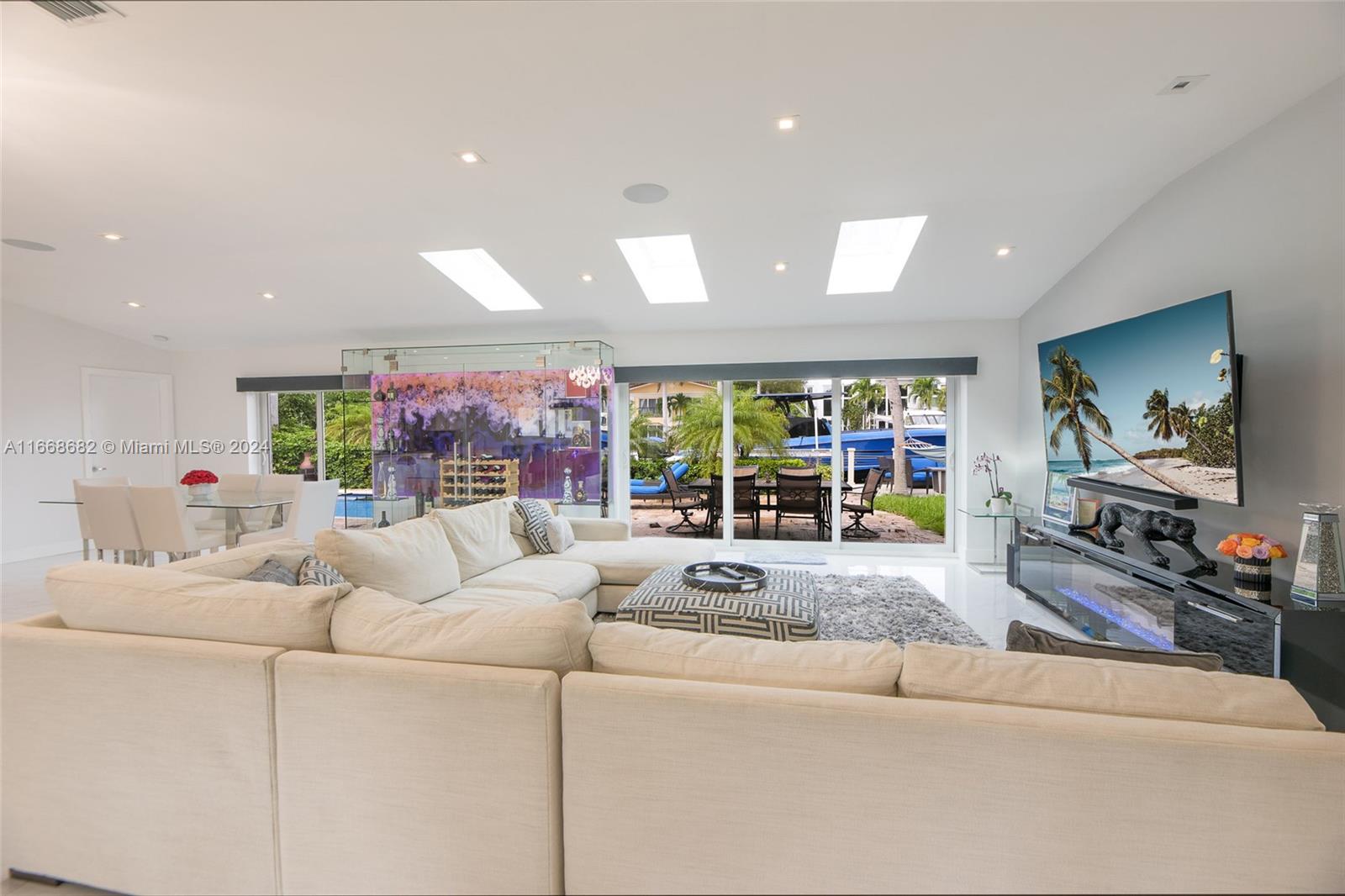 Don't miss your chance to own a slice of paradise in one of Fort Lauderdale's most desirable locations! This stunning, fully furnished & remodeled 3 bed, 2.5 bath waterfront home offers an open-concept gourmet kitchen, equipped w an oversized refrigerator, kitchen island, custom wine storage cabinetry & top-of-the-line gas range. Comforts include smart home features, cozy living room area & primary spa-like bath w an oversized zen-like shower. Take in spectacular sunsets & water views in the heated saltwater pool. The resort style patio boasts an impressive 90 ft dockage of deep ocean access & no fixed bridges, making it a boater's paradise. The prestigious & peaceful Coral Ridge neighborhood provides privacy and A-rated schools. You're min away from the beach & downtown Fort Lauderdale.