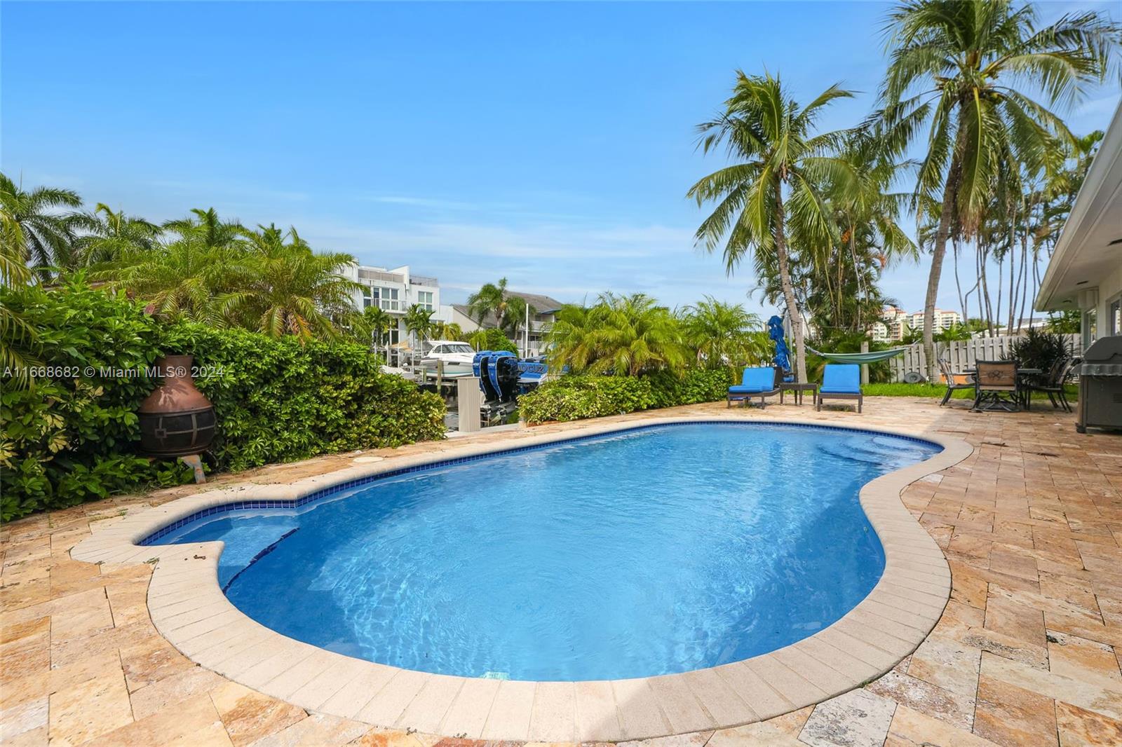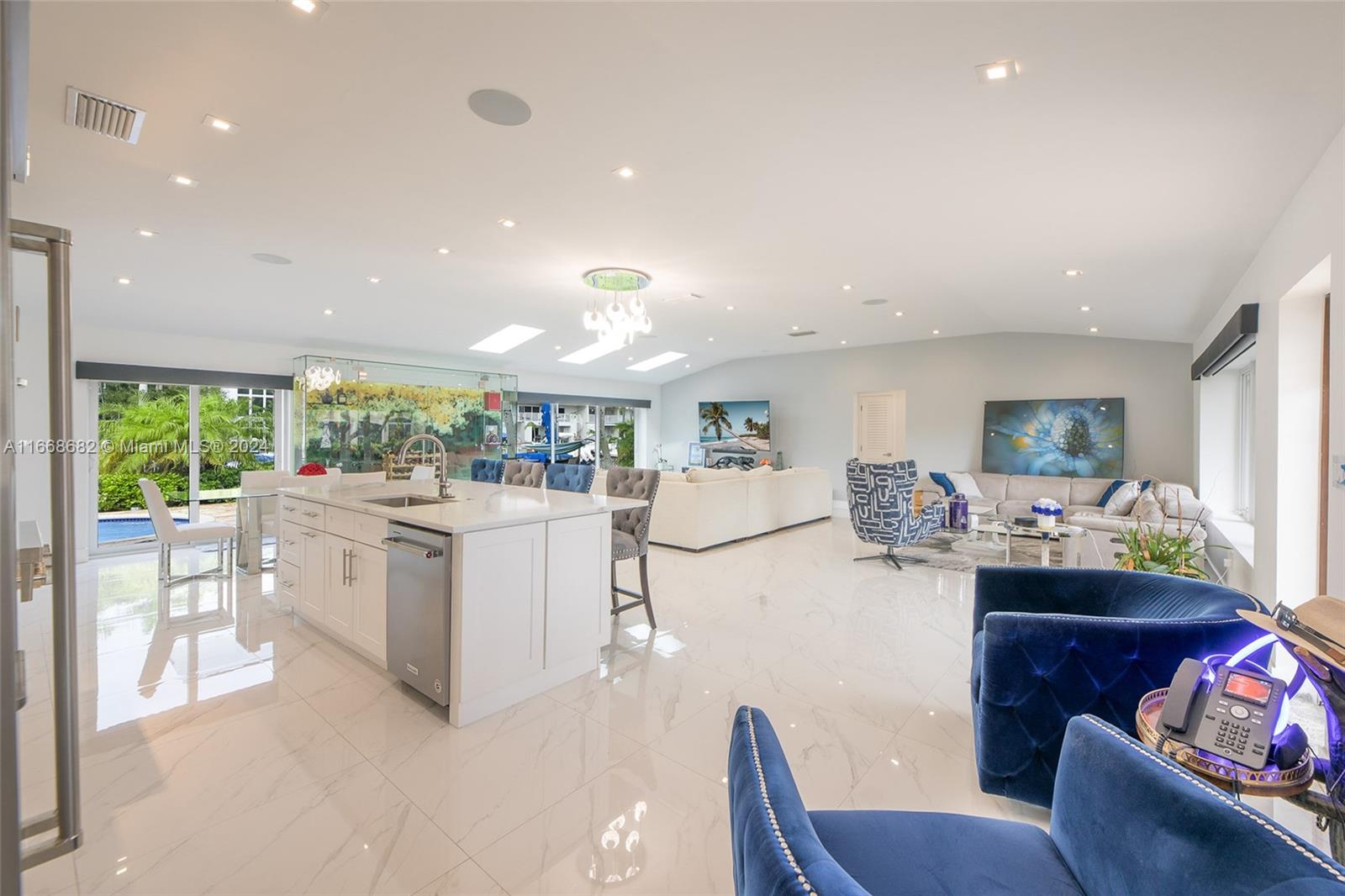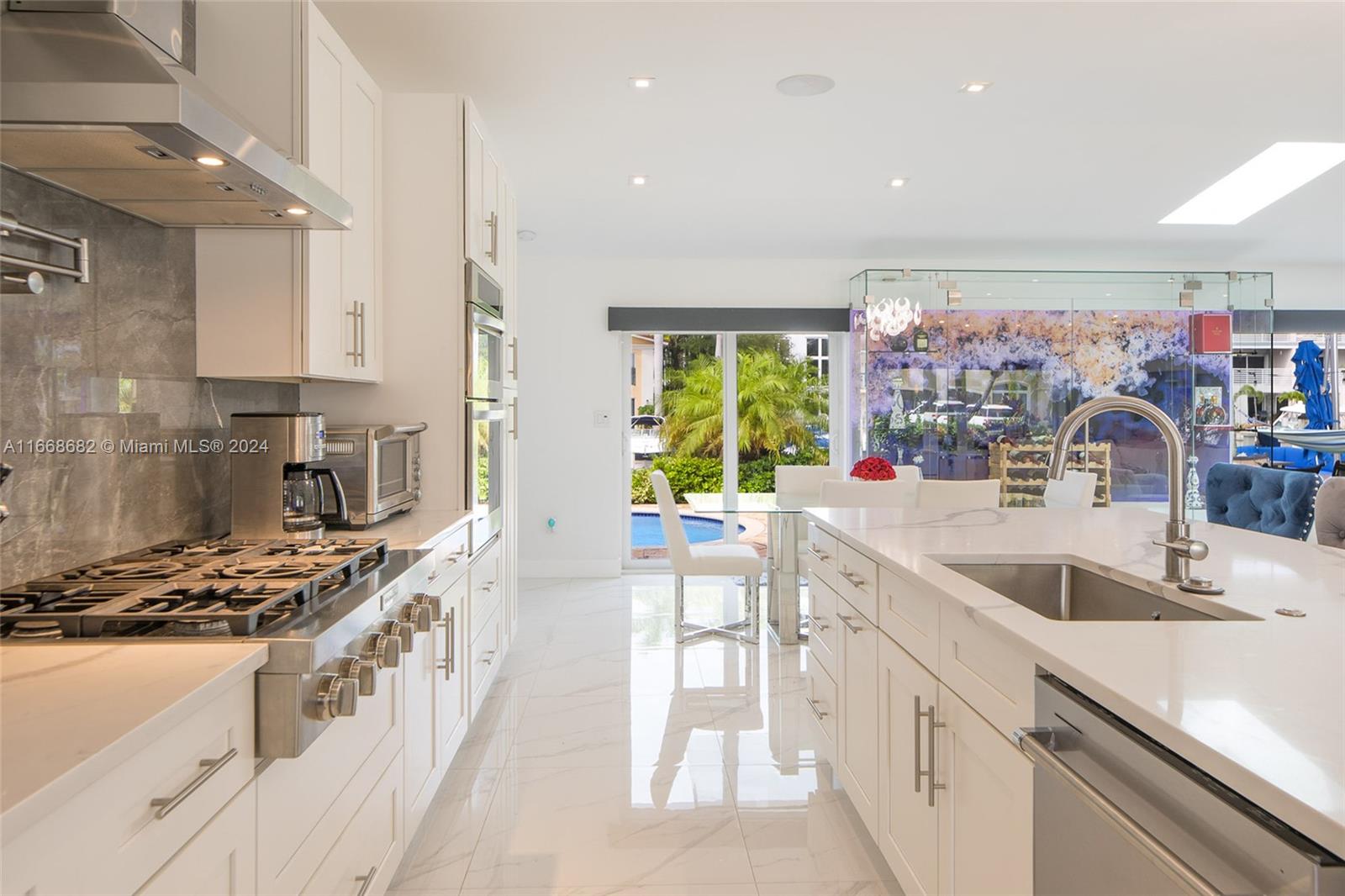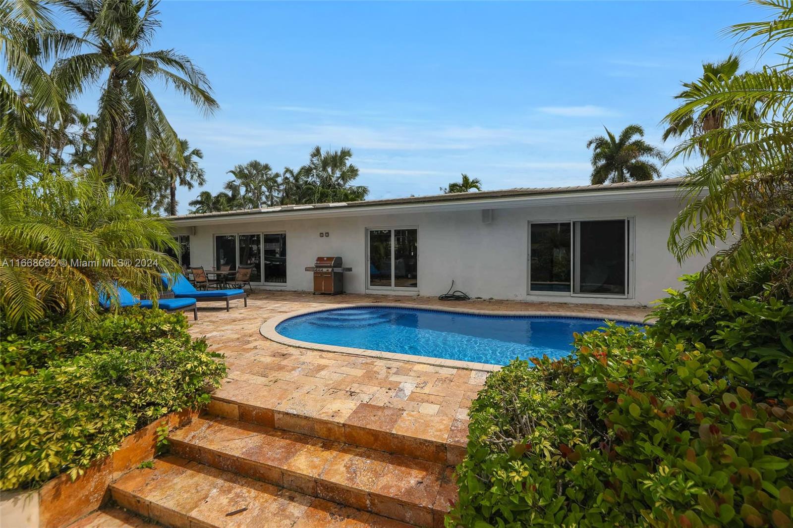 Don't miss your chance to own a slice of paradise in one of Fort Lauderdale's most desirable locations! This stunning, fully furnished & remodeled 3 bed, 2.5 bath waterfront home offers an open-concept gourmet kitchen, equipped w an oversized refrigerator, kitchen island, custom wine storage cabinetry & top-of-the-line gas range. Comforts include smart home features, cozy living room area & primary spa-like bath w an oversized zen-like shower. Take in spectacular sunsets & water views in the heated saltwater pool. The resort style patio boasts an impressive 90 ft dockage of deep ocean access & no fixed bridges, making it a boater's paradise. The prestigious & peaceful Coral Ridge neighborhood provides privacy and A-rated schools. You're min away from the beach & downtown Fort Lauderdale.
