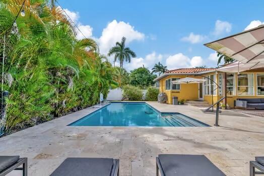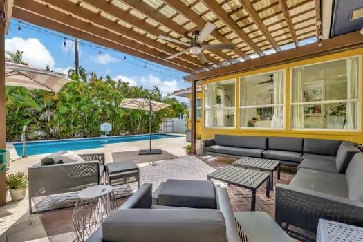 Spectacular, fully remodeled pool home in Hollywood Lakes. Sensational kitchen with large island, 6 burner gas stove, walk in pantry, abundant storage and outlets. Bathrooms are renovated. Bedrooms have custom closets with shelving and hanging areas and 3 way doors. Fully enclosed bright Florida room with mini split ac. French doors off dining room open onto the newly refinished patio with pergola and built in speakers. Inviting heated salt water pool. The ultimate ''SMART'' home has a wall mount system in the garage for wires and tech boxes. Garage also has abundant storage from floor to ceiling, slat wall shelving, workbench and a/c. Newer appliances and a/c, updated electric and plumbing. Hurricane impact windows throughout. Walking distance to worship, downtown Hollywood and the beach