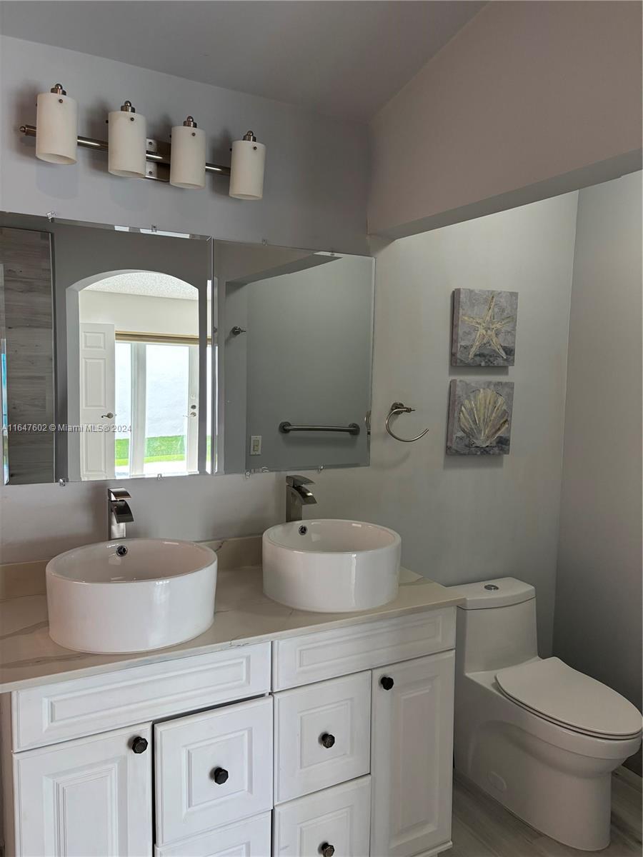 Come visit this beautiful house located at the well seek West Lake Village near the Hollywood Beach and make it your dream home! The house features a high ceiling, 4 bedrooms/ 2 baths. 2 rooms were merged to become one spacious room. The primary suite downstairs has a double glass door that leads to a beautiful backyard. Spacious walk-in closet. All bathrooms are fully renovated. Granite countertop in the kitchen. All new appliances, brand new A/C unit. 2 car garage, converted to an extra lounge room. This top-notch community features a Swim and Racket club, fitness gym, tennis court, huge playground. Beautiful landscaping, tall trees. View the lake in this quiet neighborhood. Easy access to the main street (Sheridan), near A1A, West Lake Park. Closed to grocery stores, plazas…