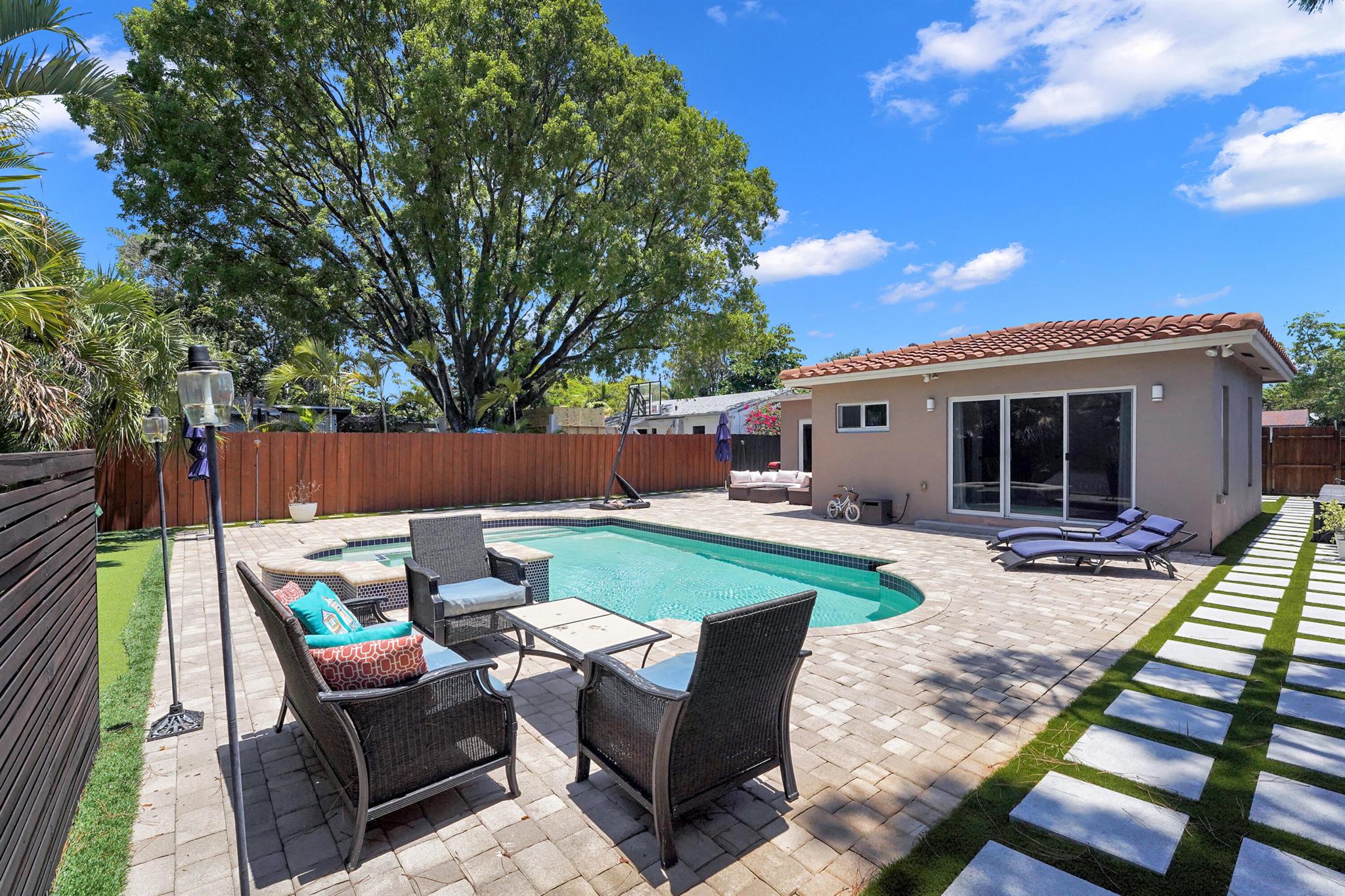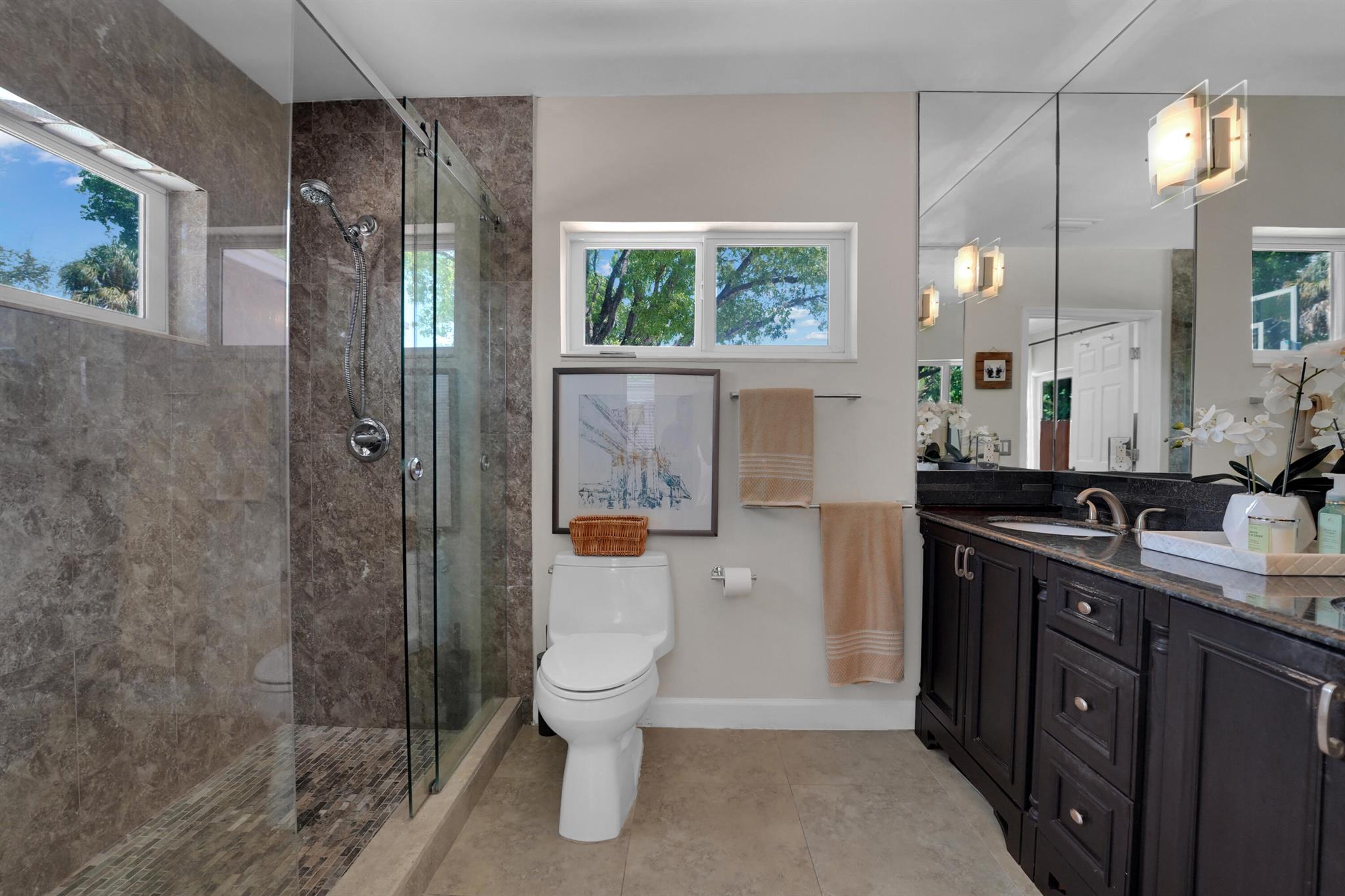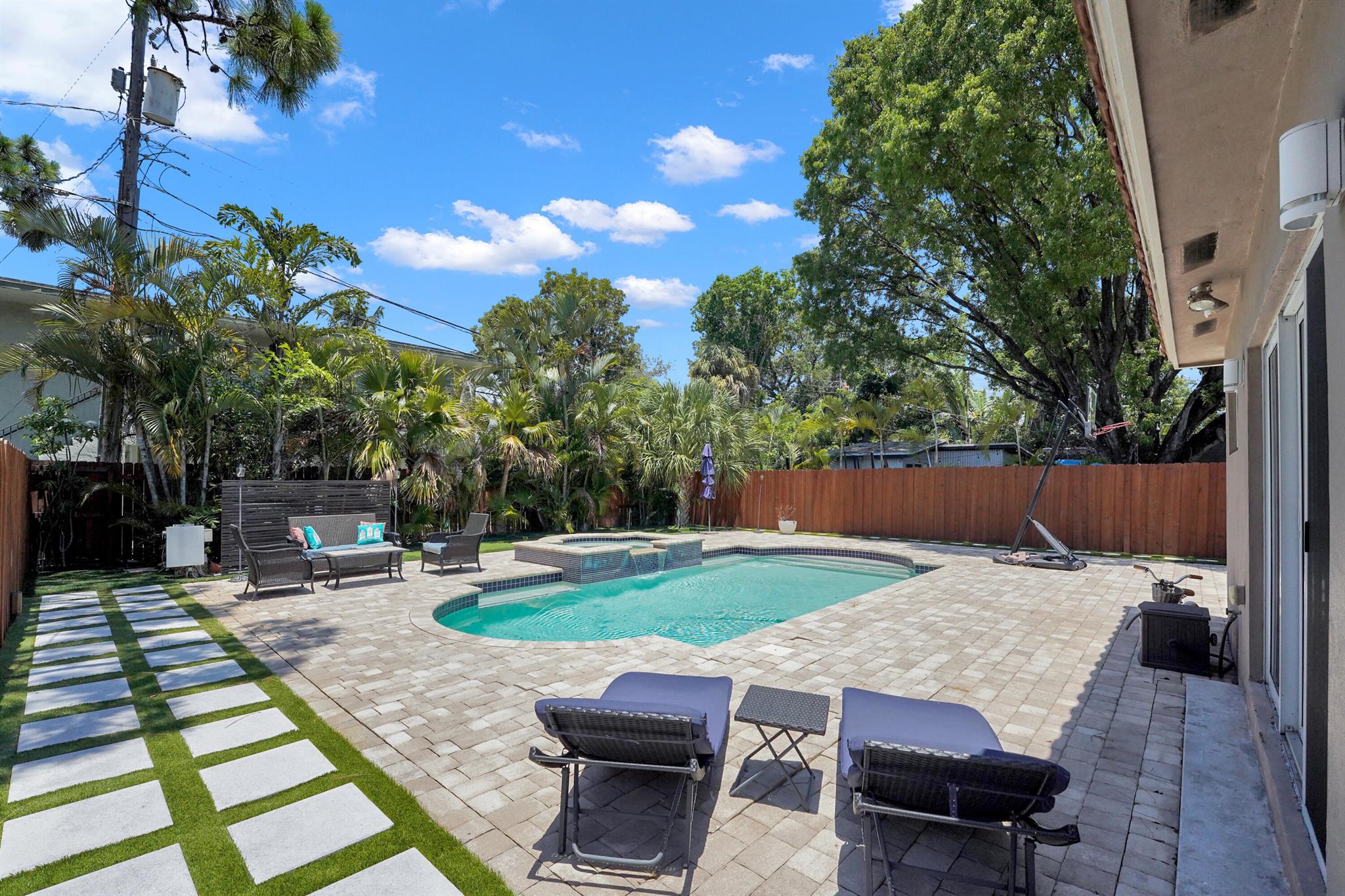 Welcome to your East Fort Lauderdale oasis! This beautifully renovated home features a stunning heated saltwater pool and spa, all controlled effortlessly from your iPhone. Enjoy the sleek kitchen with quartz countertops and brand-new stainless steel appliances, perfect for culinary adventures. The master suite offers a serene escape, while ceramic flooring throughout adds modern elegance. With impact windows, dual tankless water heaters, and two-zone A/C, this home is designed for comfort and style. Centrally located near Wilton Manors, Downtown, and the Beaches--your perfect home awaits! NEW LARGE DRIVEWAY PUT IN TO ACCOMODATE 4 CARS