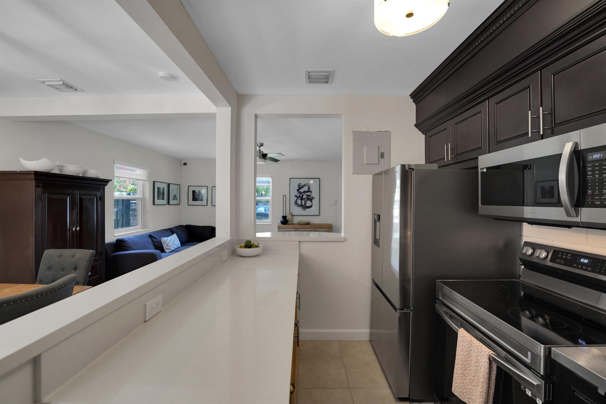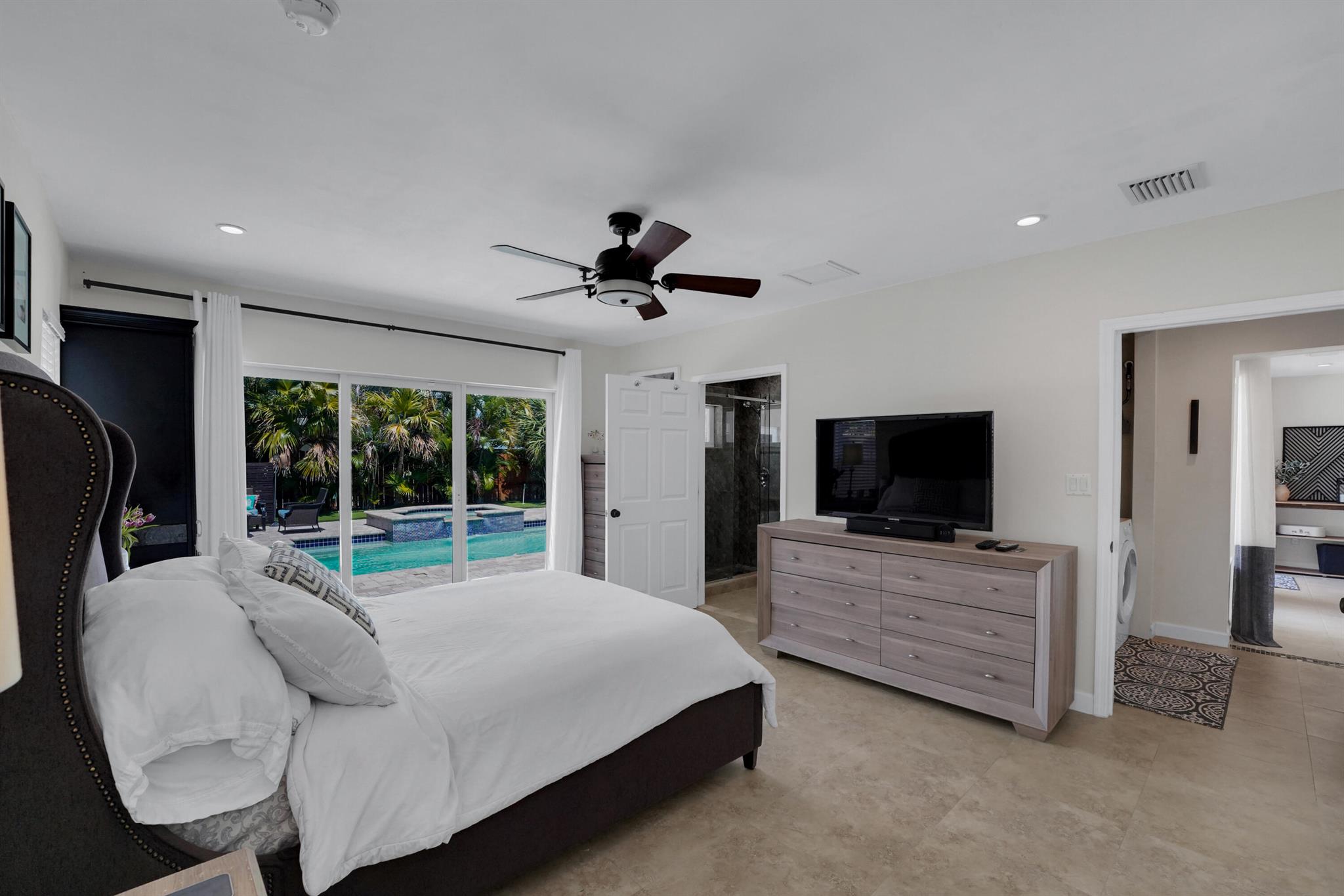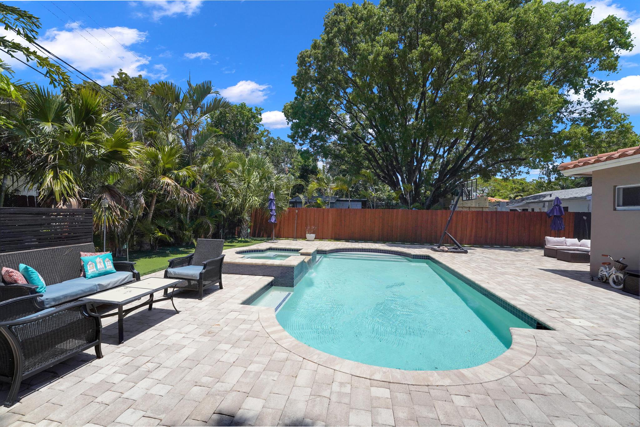 Welcome to your East Fort Lauderdale oasis! This beautifully renovated home features a stunning heated saltwater pool and spa, all controlled effortlessly from your iPhone. Enjoy the sleek kitchen with quartz countertops and brand-new stainless steel appliances, perfect for culinary adventures. The master suite offers a serene escape, while ceramic flooring throughout adds modern elegance. With impact windows, dual tankless water heaters, and two-zone A/C, this home is designed for comfort and style. Centrally located near Wilton Manors, Downtown, and the Beaches--your perfect home awaits! NEW LARGE DRIVEWAY PUT IN TO ACCOMODATE 4 CARS