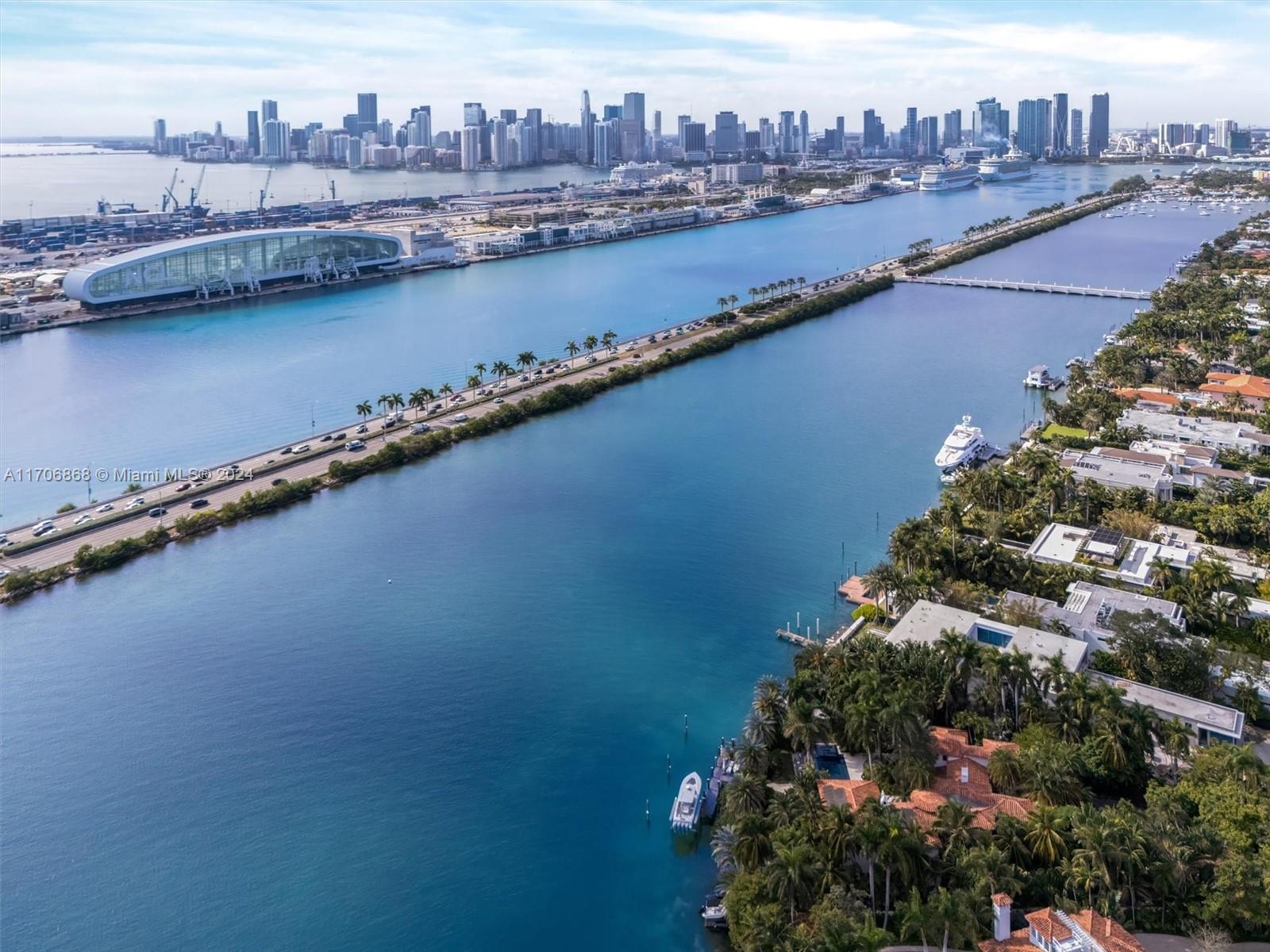 This Mediterranean Revival estate seamlessly blends classic architecture with modern luxury. Fully renovated in 2009, the home sits on a sprawling 35,348 sq. ft. lot on prestigious Palm Island, offering 220' of prime south-facing waterfront capable of accommodating yachts up to 205'. A spacious addition includes a luxurious primary suite, chef's kitchen, and family wing. Exceptional amenities include a home theater, gym, steam rooms, bocce court, wine cellar, heated pool, spa, private beach, and a serene courtyard. A separate guest house, smart home technology, lighting controls, and solar panels complete this lush, gated haven. Surrounded by exotic landscaping, this estate embodies sophistication and privacy in the exclusive, police-guarded Palm Island community.