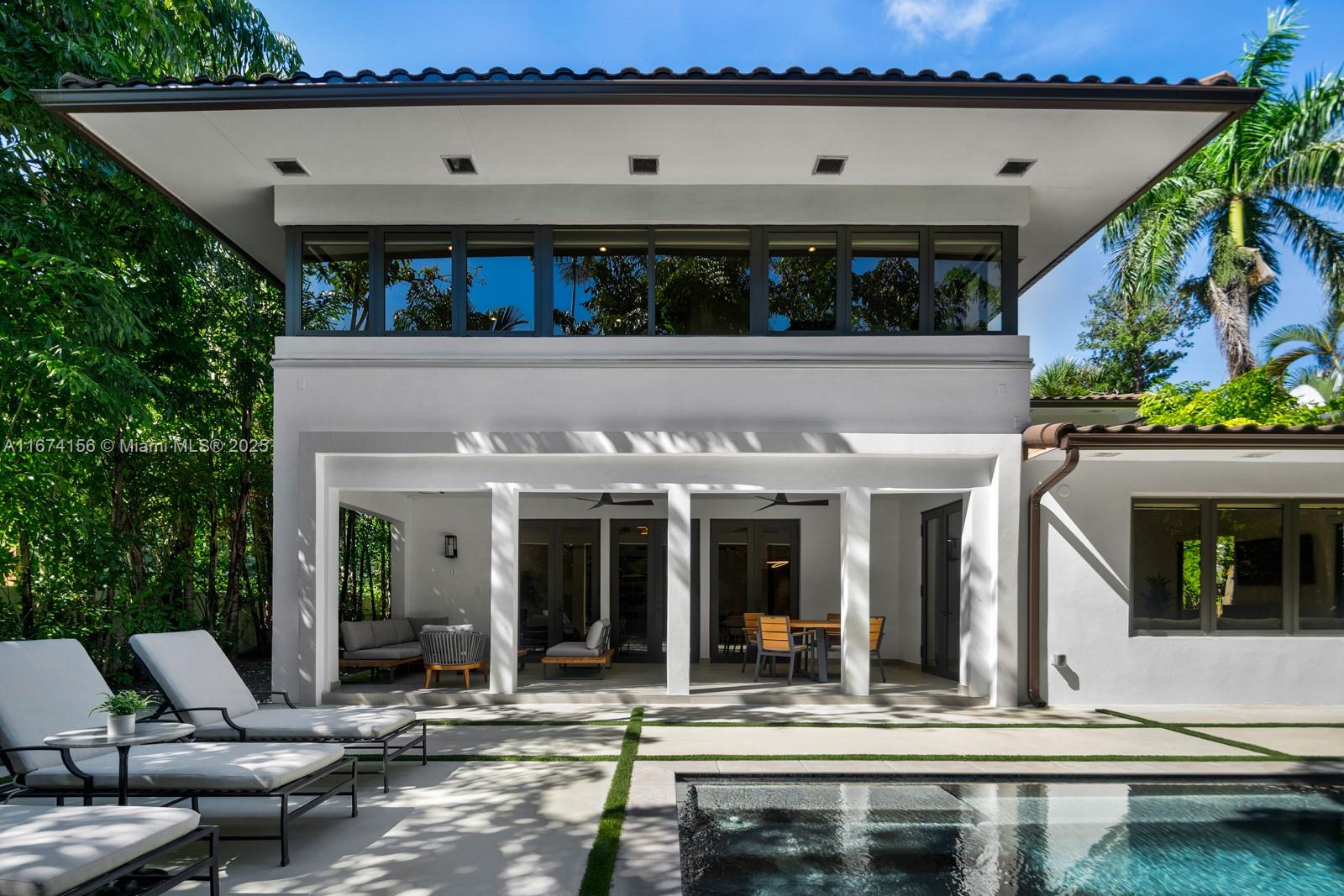 Step Inside With Me! This exquisite Mediterranean restoration is nestled on prestigious Upper North Bay Road, offering privacy and modern luxury. Behind the walled gate, you'll find a spacious, family-friendly home featuring 5-bed/5-baths. The gourmet kitchen boasts Corian countertops, a large island with a Viking 6-burner gas stovetop, and opens to a sunlit TV room. The primary suite offers a walk-in closet, dual vanities, an oversized tub, and a cozy sitting/office nook. Outside, the lush, tropical backyard invites you to entertain on the expansive covered patio or relax in the heated saltwater pool. With hurricane impact windows, doors, and a 2-car AC garage plus ample parking, this home truly stands out.