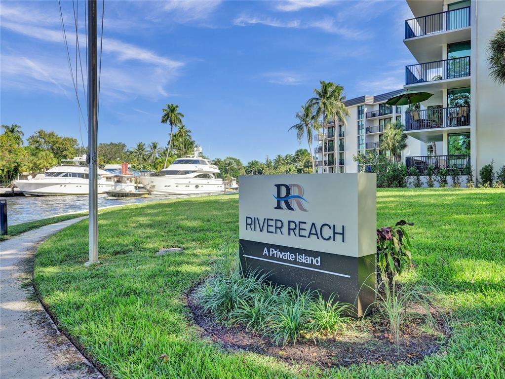 Make this Hidden Gem Island Community Your Home Today! This spacious top floor unit has lovely East City Skyline views across to North and South canal views of boats. Open plan living-dining area has neutral tile floors and kitchen features light cabinetry with granite counters. Large Master bedroom has walk-in closet and en suite bathroom. Guest bedroom has sliding door to balcony views. Hurricane impact windows and concrete restoration completed as part of Major Maintenance project . River Reach amenities include: gym, 3 swimming pools, 2 tennis courts, libraries, pickleball and community center. Maint fee includes cable, Wifi, water, sewer, garbage, pest control service. Dockage available up to 50ft vessel may have to be put on waiting list. Can Rent immediately. Boat included with sale