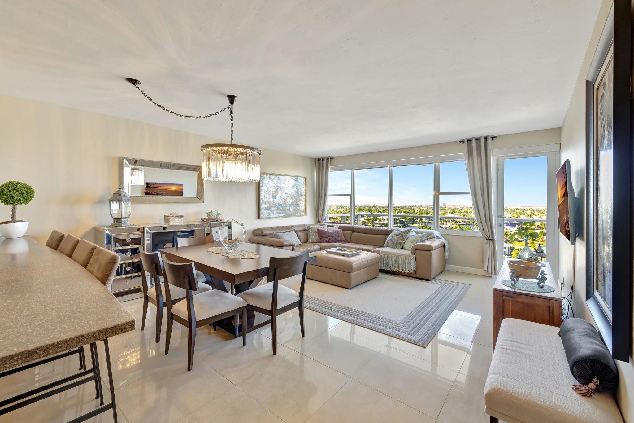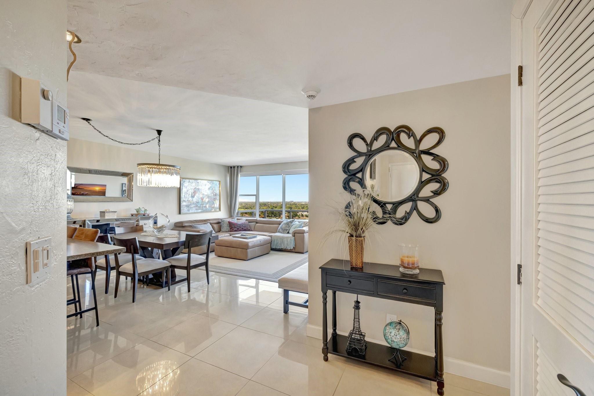 Exceptional residence features a stunning open chef's kitchen. Ideal for entertaining or enjoying those well deserved "at home" moments. With a beautifully designed master suite, this 2 bed, 2 bath home offers a peaceful view of the IntraCoastal and luxury multi-million dollar mansions below. ALL STRUCTURAL WORK IS COMPLETED AND NO UPCOMING ASSESSMENTS. Building is in such great condition they received an insurance PRICE DECREASE for 2025. 55+ community with tons of social activities, heated pool, fitness center, bocce ball, on site management, door man, 24/7 security. Surrounded by activities, retail, golf, boating, next to the beach. IntraCoastal Clubhouse for this building only. Maintenance includes water, sewer, trash, basic cable and internet.