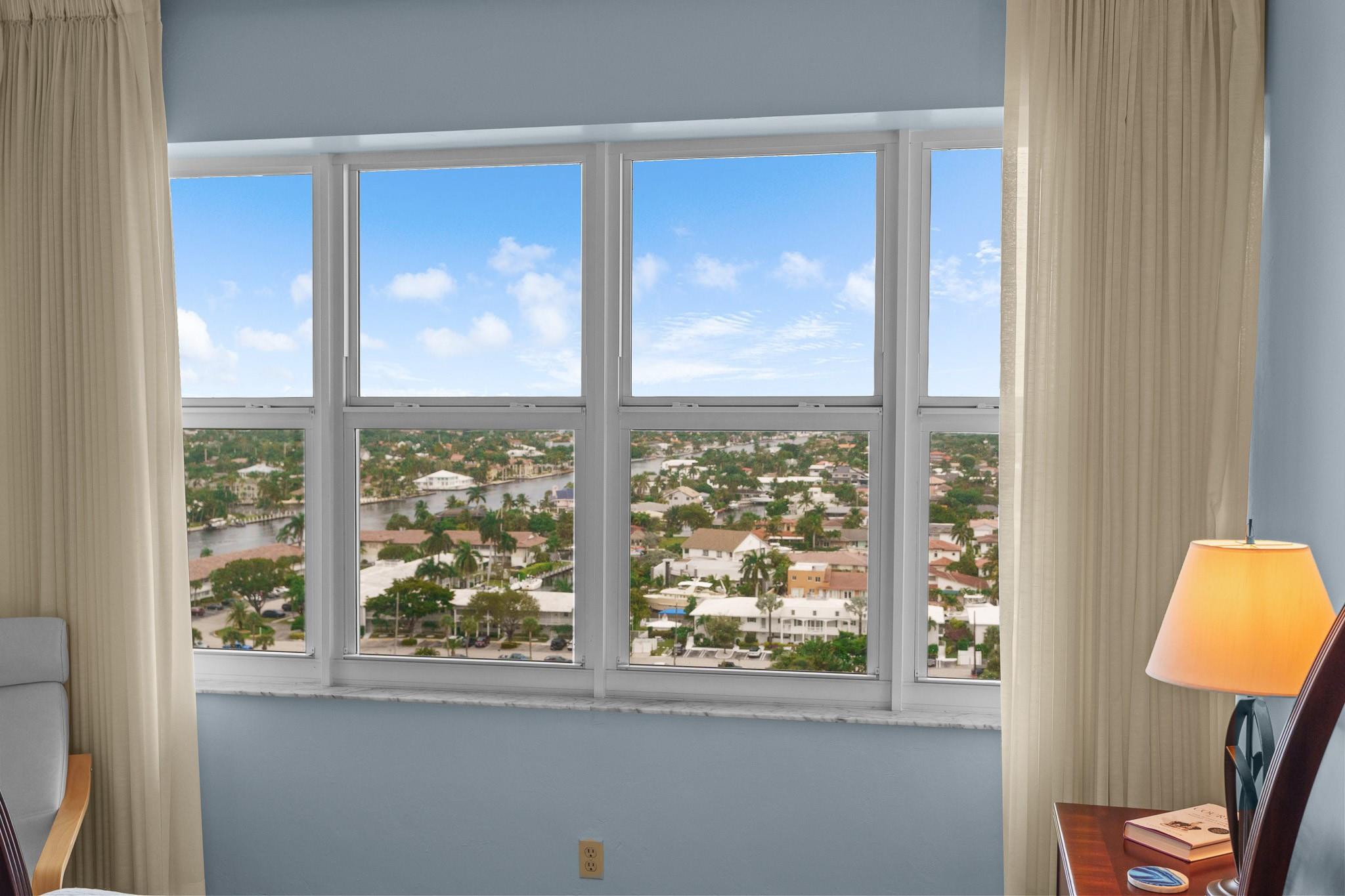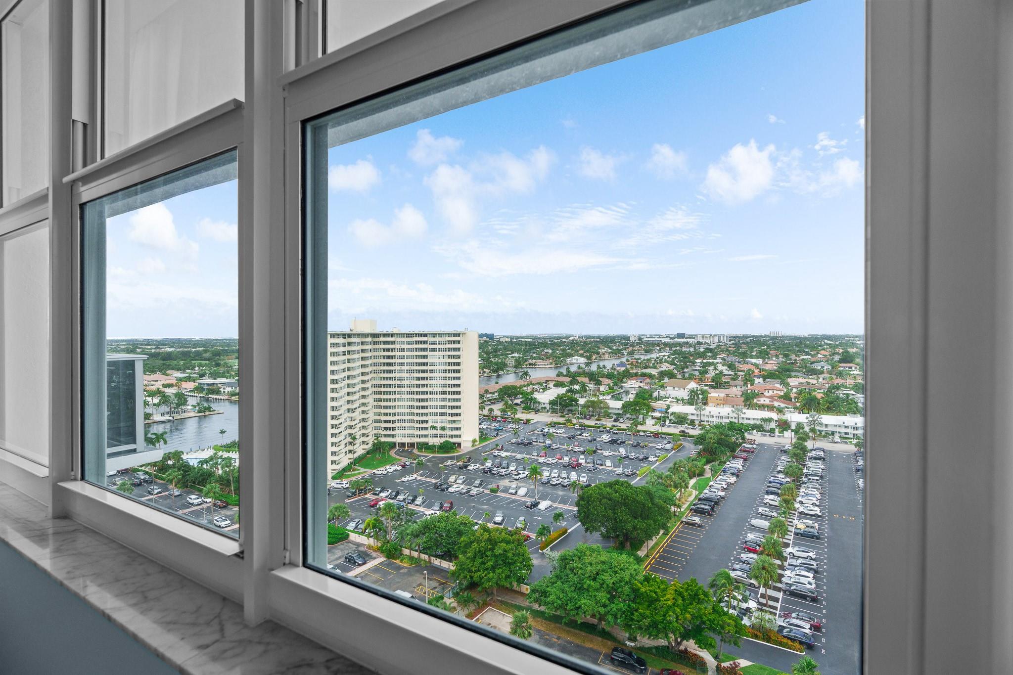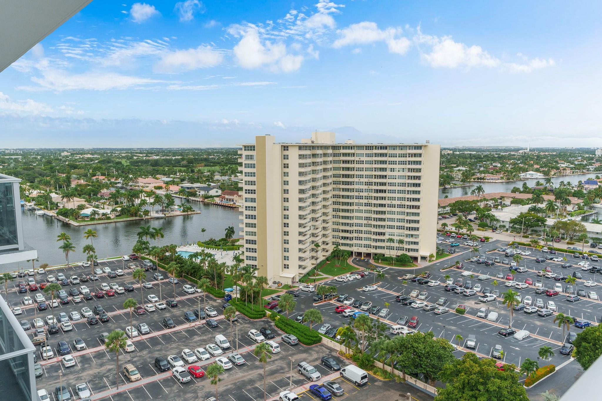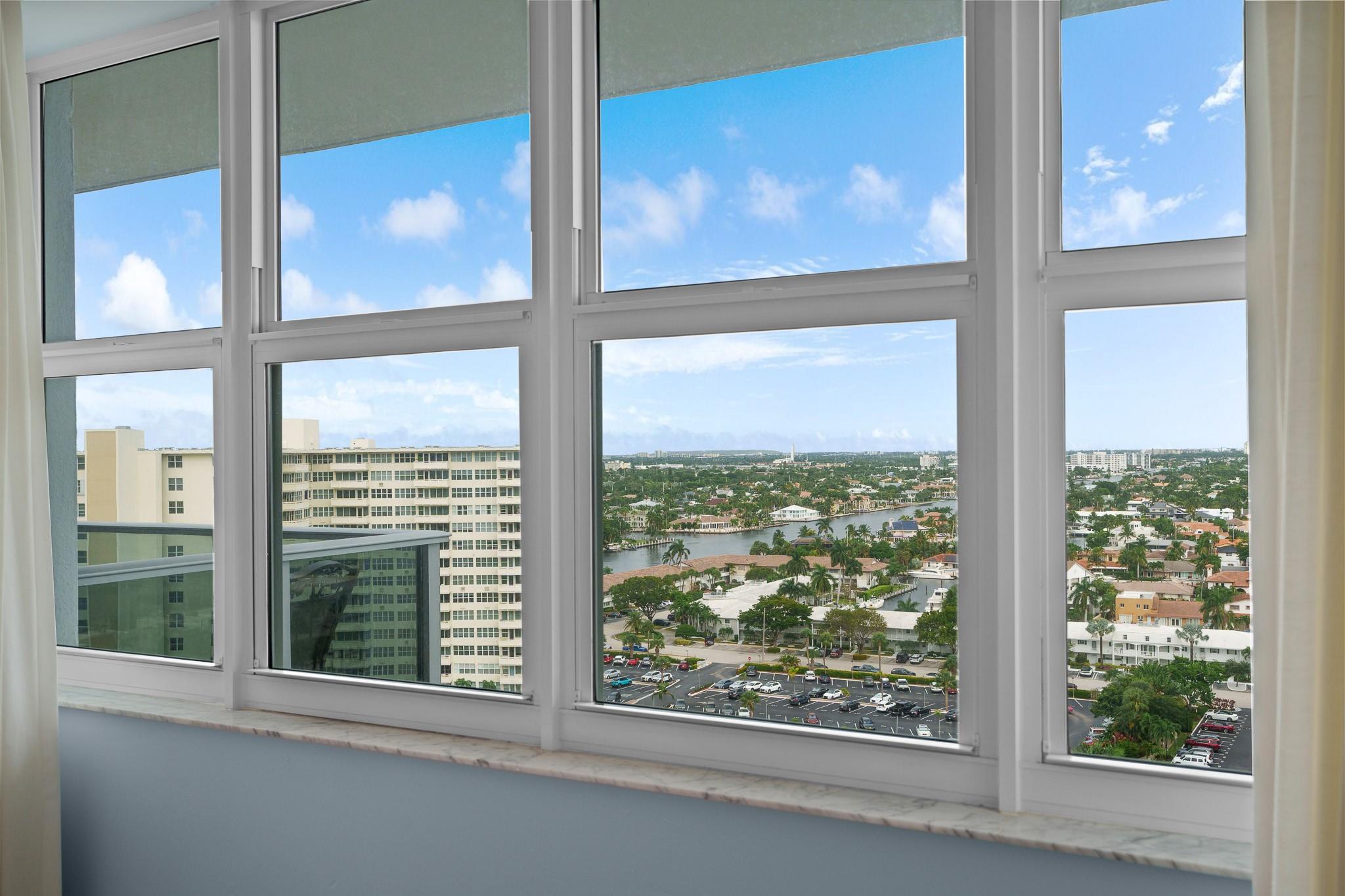 Penthouse Perfection at Coral Ridge Towers South. This welcoming and extra large 2 bed and 2 bath home offers everything you could want in a 55+ community, with all of the amenities available. Stunning vistas of Fort Lauderdale and the canals are viewed from your balcony and every window. The foyer entry offers a charming niche for a bar or displaying your heirlooms and a separate butler's entry and pantry allow for easy entertaining when you aren't taking advantage of the many restaurants, shops and gorgeous Fort Lauderdale Beach. The classic black and white kitchen offers stainless steel appliances and instant hot water. The primary bedroom has a dressing room and ensuite bathroom - Expansive balcony - Resort-style amenities: pool, fitness room, 24/7 security and onsite management.