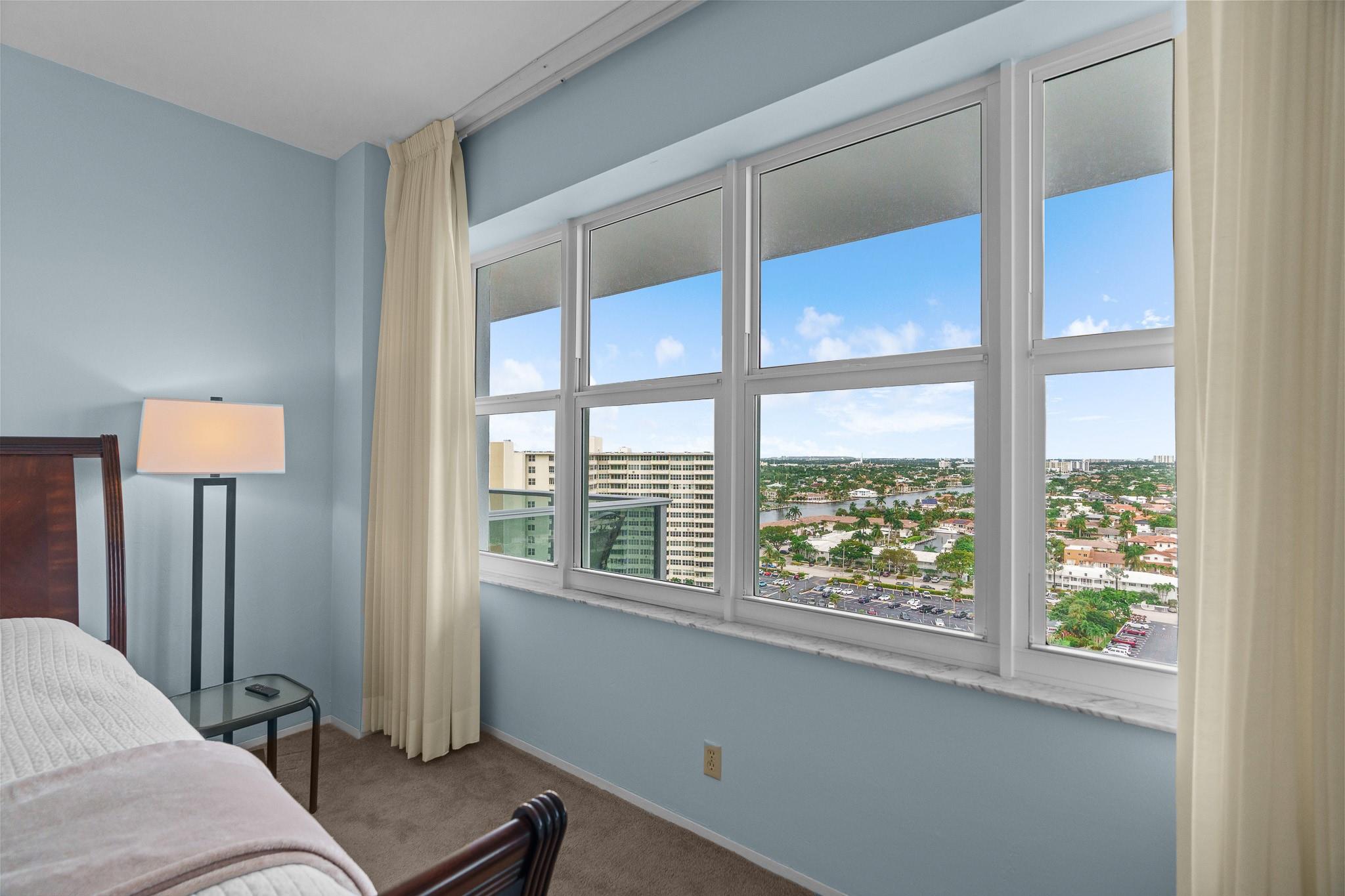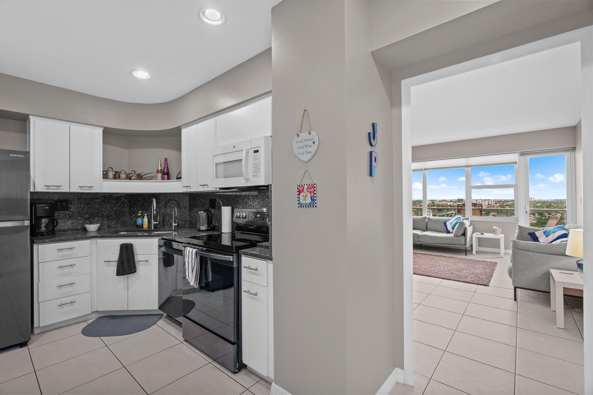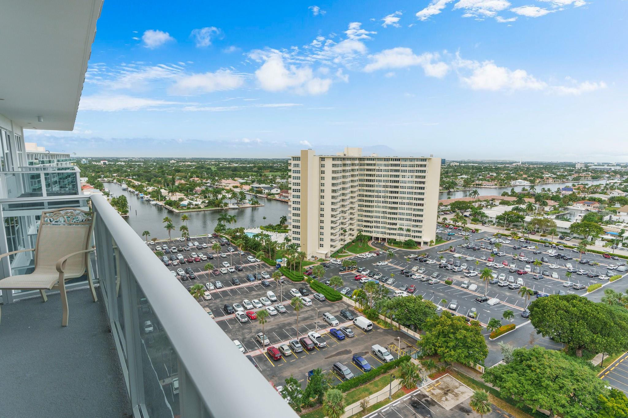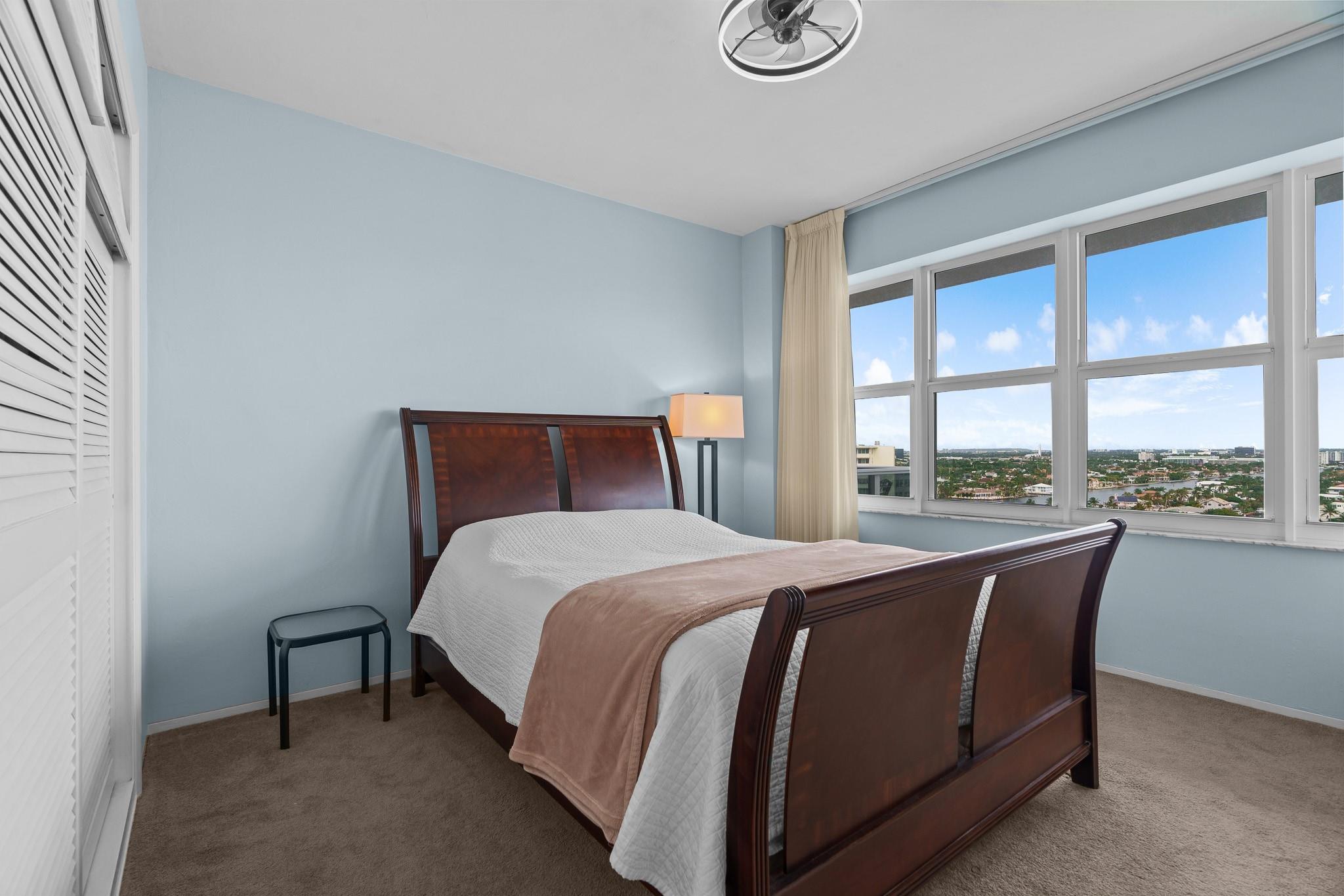 Penthouse Perfection at Coral Ridge Towers South. This welcoming and extra large 2 bed and 2 bath home offers everything you could want in a 55+ community, with all of the amenities available. Stunning vistas of Fort Lauderdale and the canals are viewed from your balcony and every window. The foyer entry offers a charming niche for a bar or displaying your heirlooms and a separate butler's entry and pantry allow for easy entertaining when you aren't taking advantage of the many restaurants, shops and gorgeous Fort Lauderdale Beach. The classic black and white kitchen offers stainless steel appliances and instant hot water. The primary bedroom has a dressing room and ensuite bathroom - Expansive balcony - Resort-style amenities: pool, fitness room, 24/7 security and onsite management.