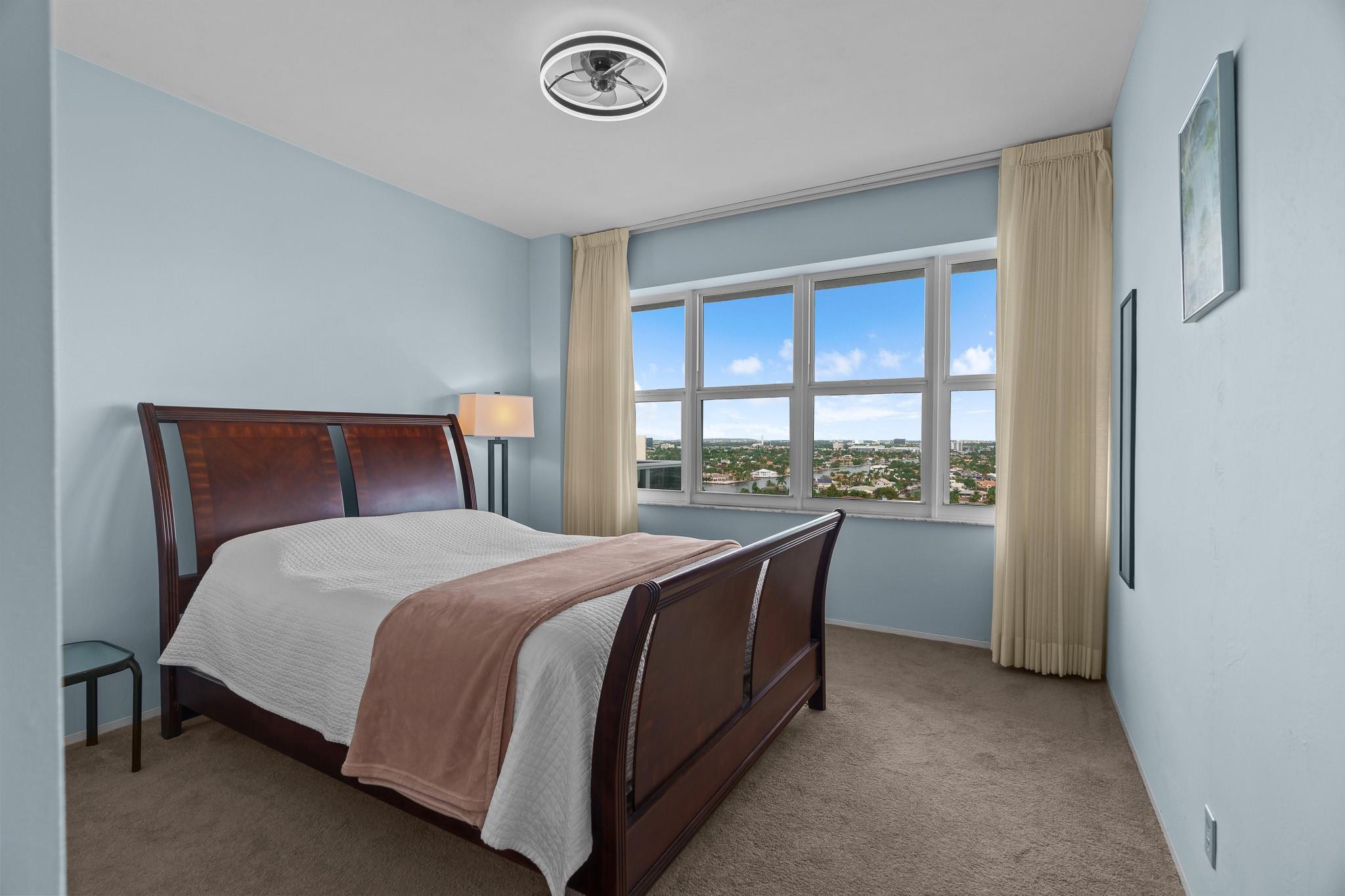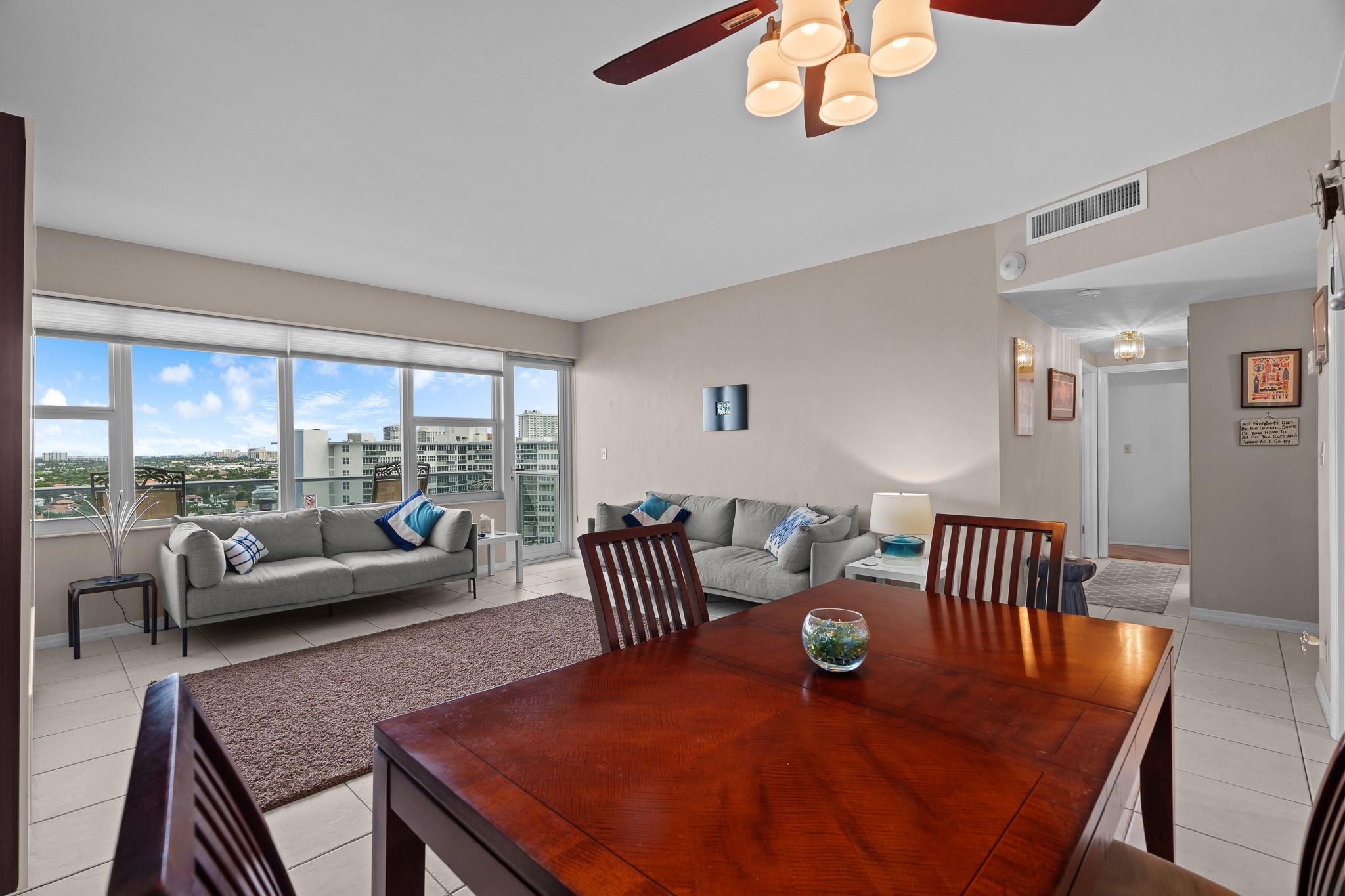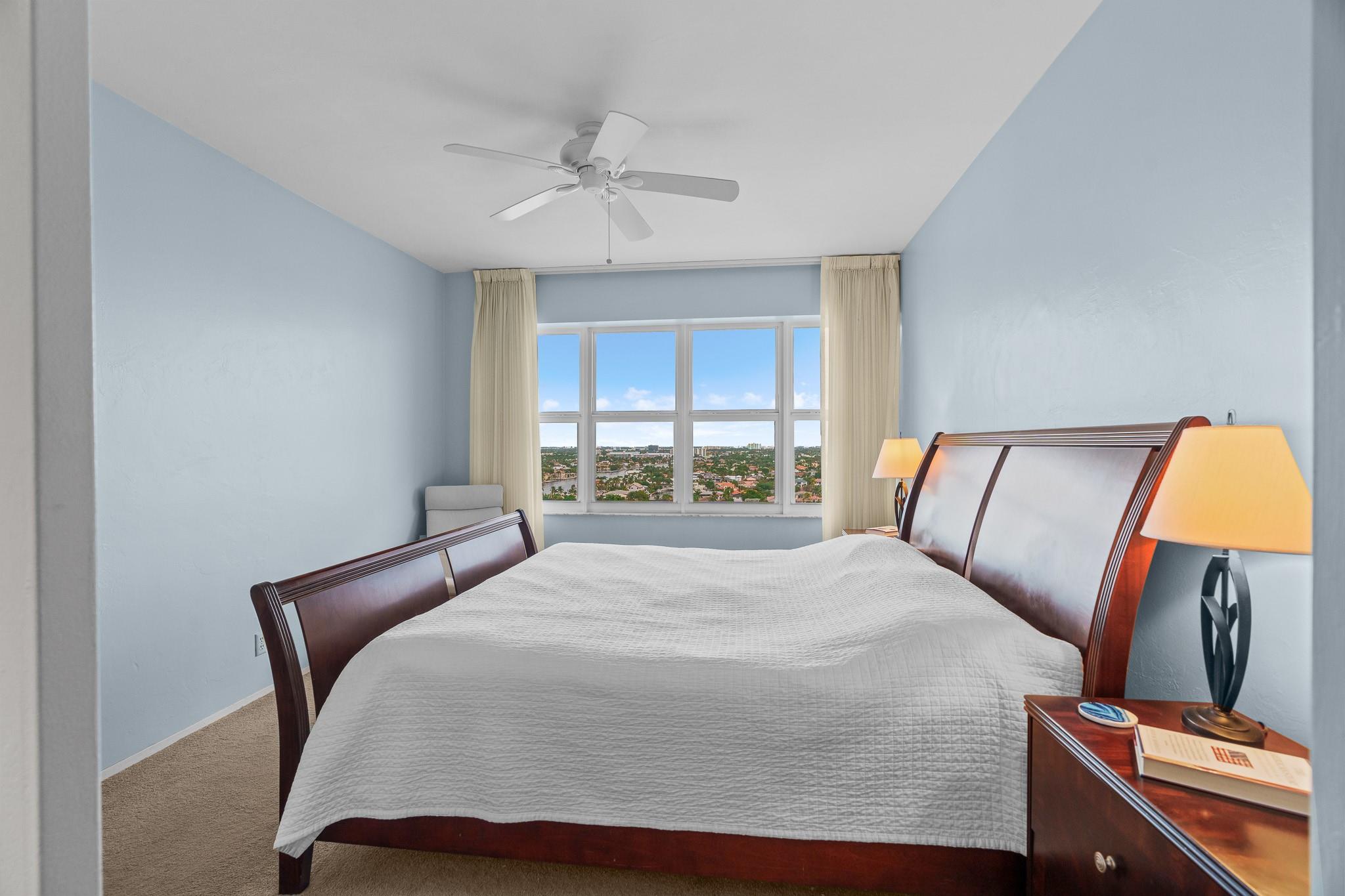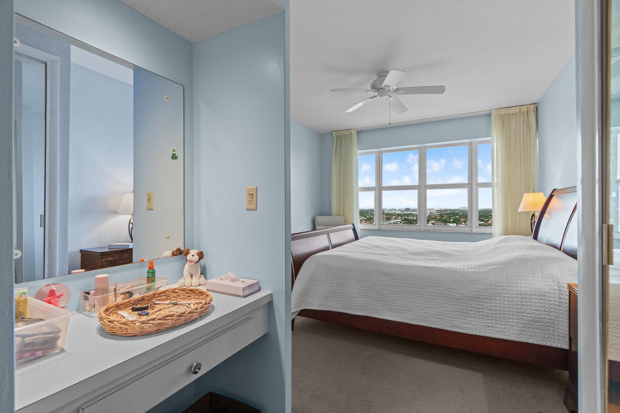 Penthouse Perfection at Coral Ridge Towers South. This welcoming and extra large 2 bed and 2 bath home offers everything you could want in a 55+ community, with all of the amenities available. Stunning vistas of Fort Lauderdale and the canals are viewed from your balcony and every window. The foyer entry offers a charming niche for a bar or displaying your heirlooms and a separate butler's entry and pantry allow for easy entertaining when you aren't taking advantage of the many restaurants, shops and gorgeous Fort Lauderdale Beach. The classic black and white kitchen offers stainless steel appliances and instant hot water. The primary bedroom has a dressing room and ensuite bathroom - Expansive balcony - Resort-style amenities: pool, fitness room, 24/7 security and onsite management.
