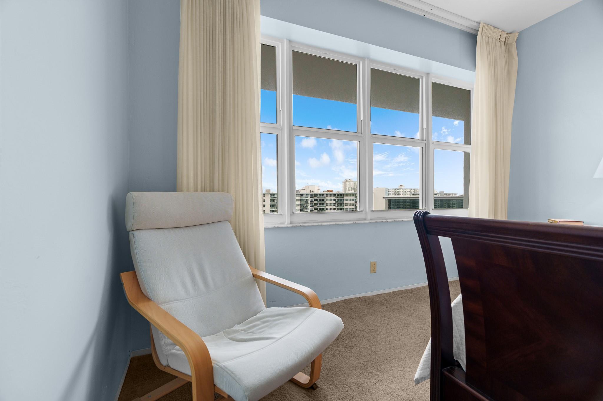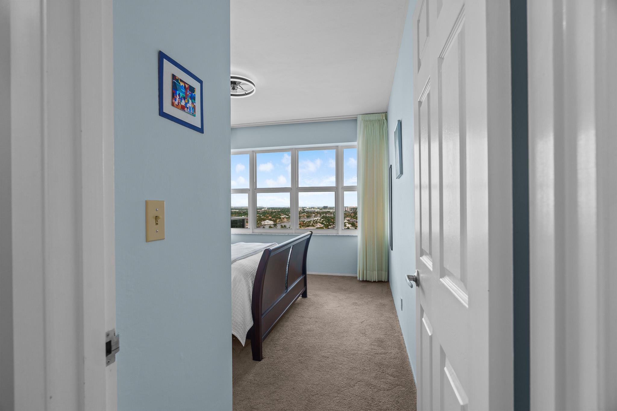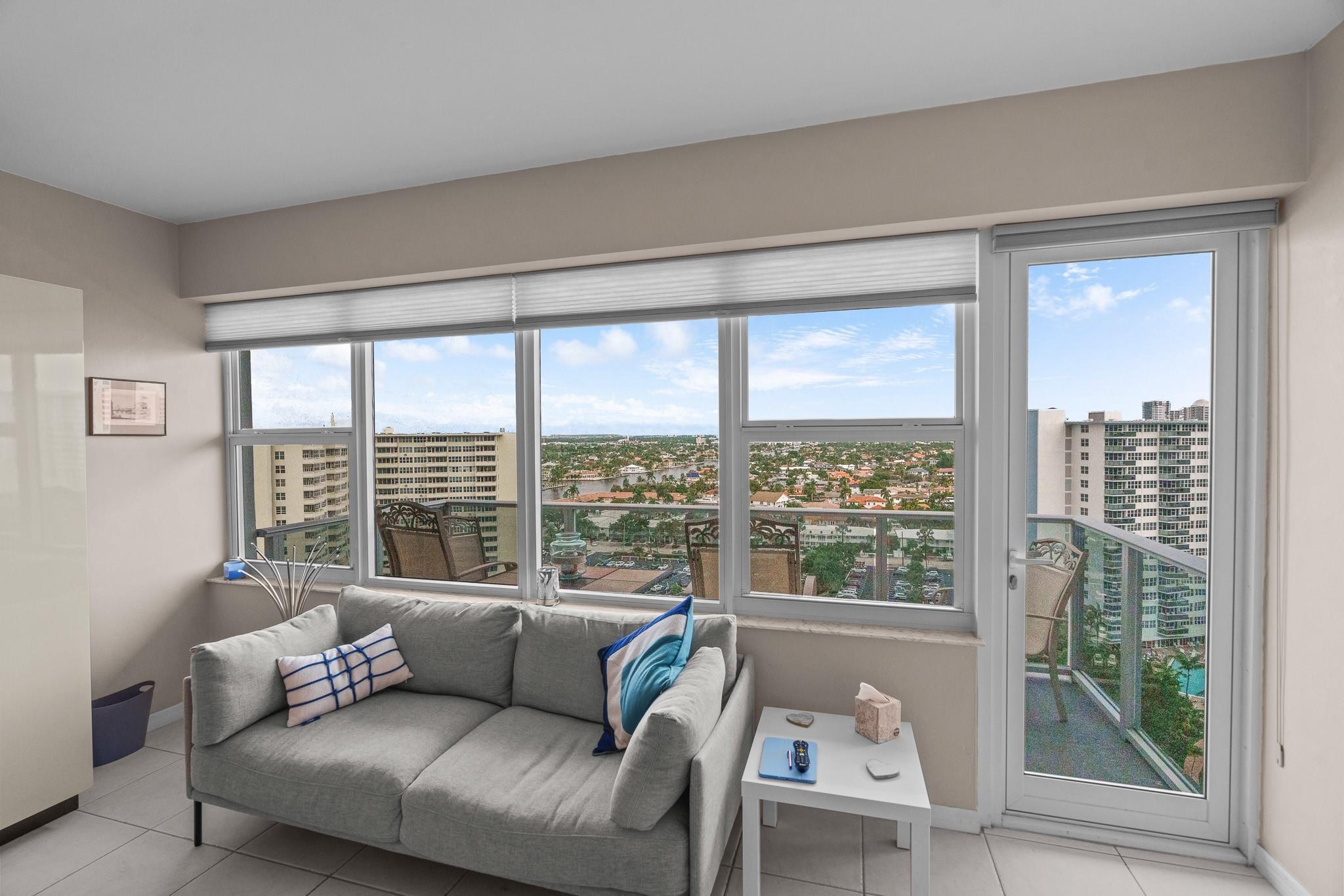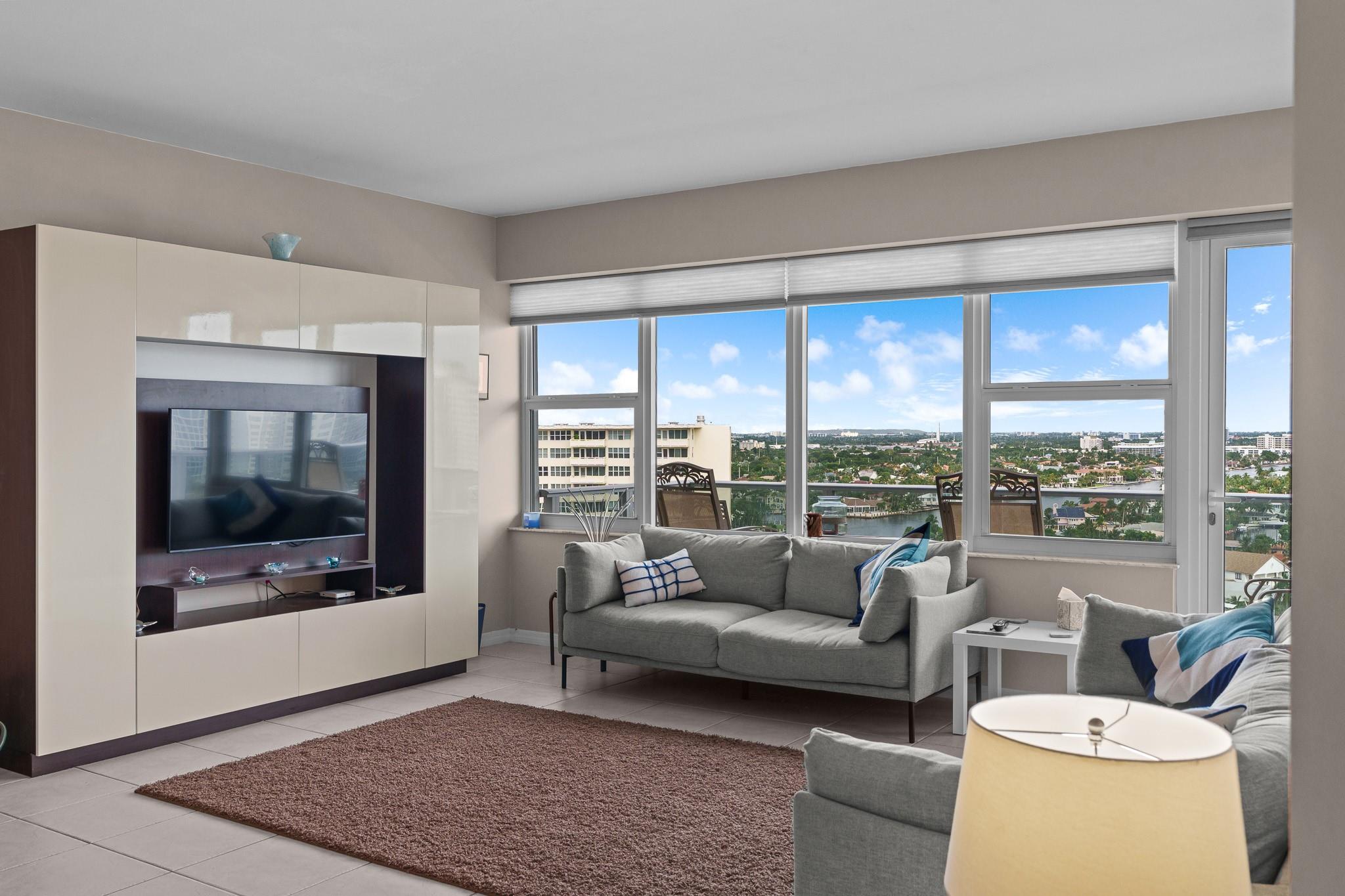 Penthouse Perfection at Coral Ridge Towers South. This welcoming and extra large 2 bed and 2 bath home offers everything you could want in a 55+ community, with all of the amenities available. Stunning vistas of Fort Lauderdale and the canals are viewed from your balcony and every window. The foyer entry offers a charming niche for a bar or displaying your heirlooms and a separate butler's entry and pantry allow for easy entertaining when you aren't taking advantage of the many restaurants, shops and gorgeous Fort Lauderdale Beach. The classic black and white kitchen offers stainless steel appliances and instant hot water. The primary bedroom has a dressing room and ensuite bathroom - Expansive balcony - Resort-style amenities: pool, fitness room, 24/7 security and onsite management.