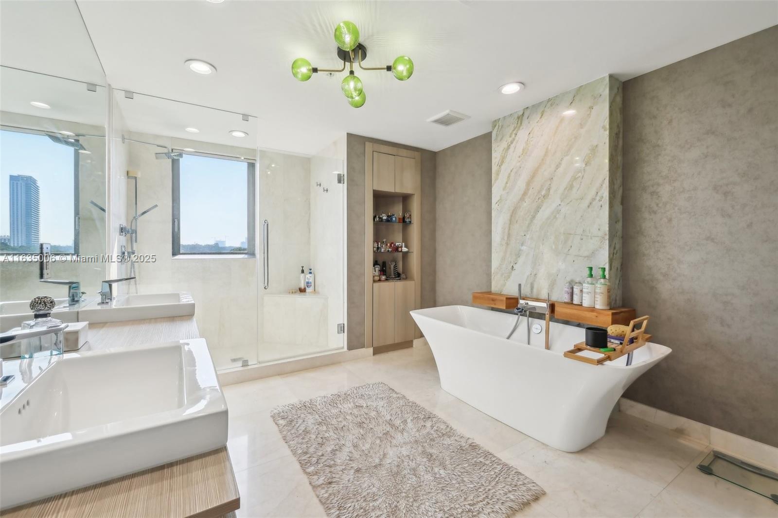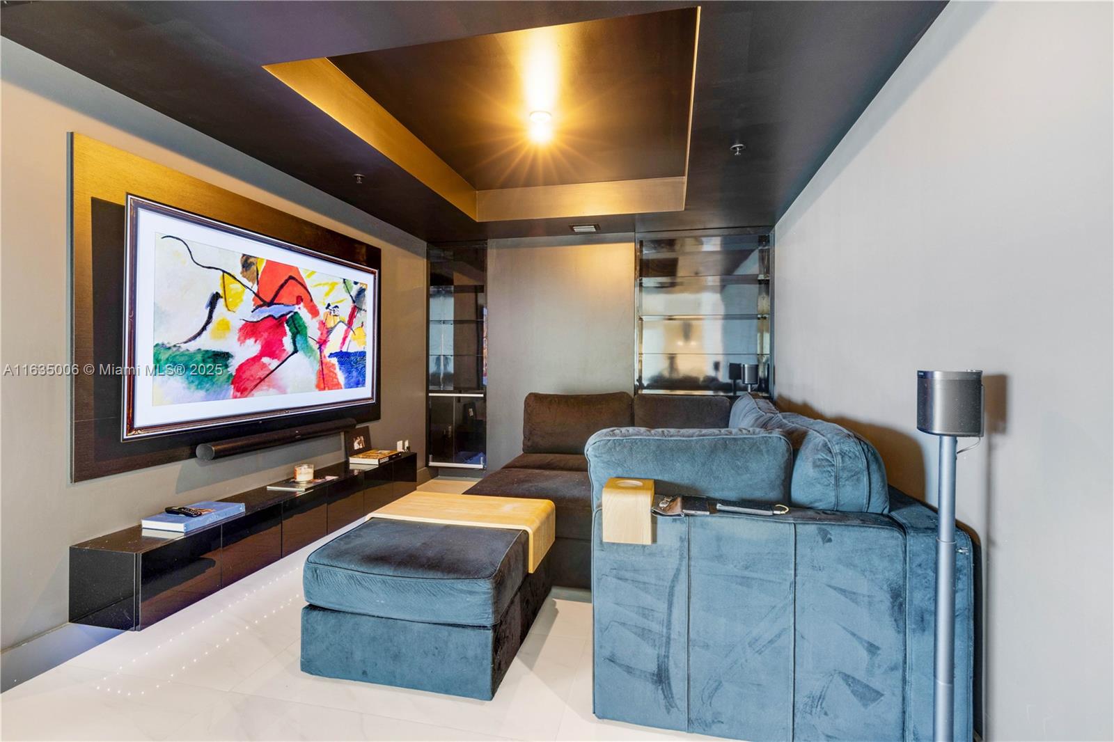 Welcome to luxury at its finest, amazing 2 bedroom 3 bathroom unit with den that can be converted into an extra bedroom. Custom marble wall unit with built in bar, fireplace, wine cooler and matching marble throughout. Walk in closet with custom back paneling and shelving to avoid wall scuffs. Marble bathroom with custom waterfall tub, and automated Axent toilet. Wolf appliances, subzero fridge, motorized blackout blinds and shades throughout. All furniture included. LG OLED 84' TV, full Sonos sound system, lovesac rearrangeable couches, RH Bedroom set/mattress valued at over $20k, living room furniture valued at over $10k. Built in laundry room with custom cabinetry, extra fridge. Move in ready, just bring a toothbrush. Safe property using facial recognition. Storage unit included.