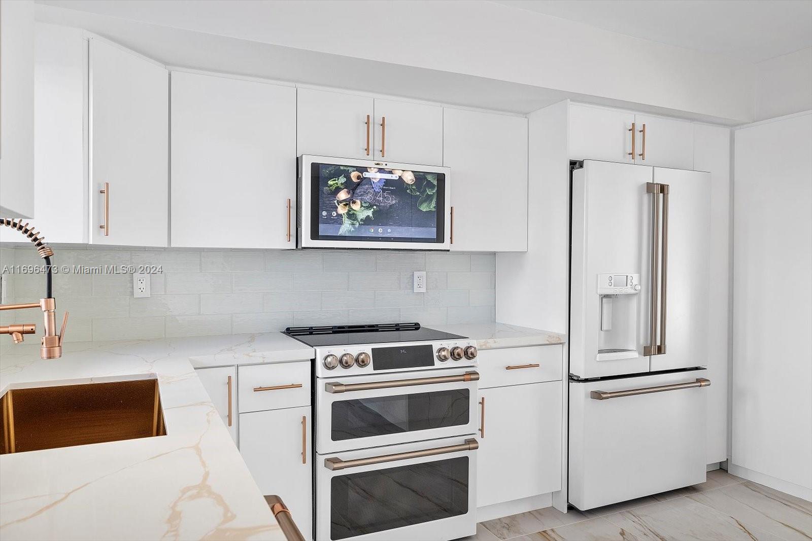 Exquisitely modern and totally renovated two story townhouse on great location. It has 1590 sf, 3 bedrooms 2 & 1/2 bath in desirable Lakeview development on Eastern Shores. Featuring all impact windows & doors, new modern Italian kitchen with island, exclusive Cafe collection of stainless steel appliances, new extra large porcelain floors, new modern bathrooms, in bathroom speaker system, new fence patio great for entertaining, over-sized balcony off master, new lamps plus recessed lighting throughout, all new a/c, high capacity washer & dryer. Steps to the pool area w/ 2 assigned parking spaces and plenty of guest parking. New recently installed roof. Close to the beach , Aventura mall ( Sunny Isles), close distance to restaurants, Oleta Park, Shopping, Houses of Worship, theater & more.