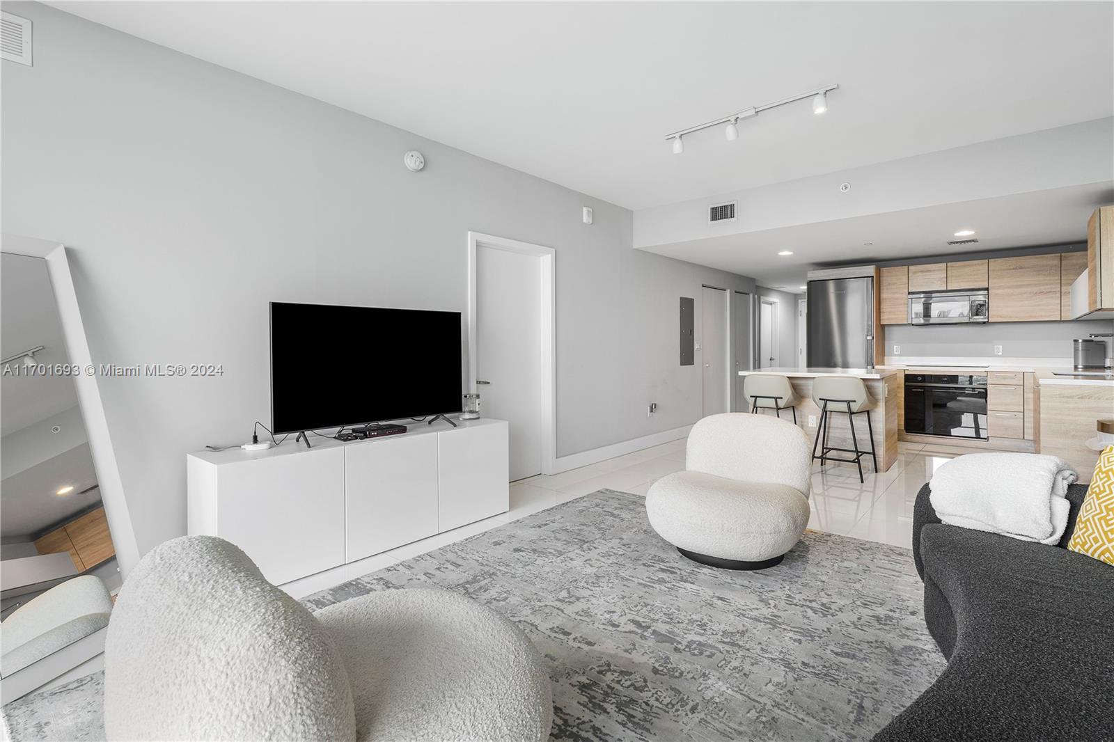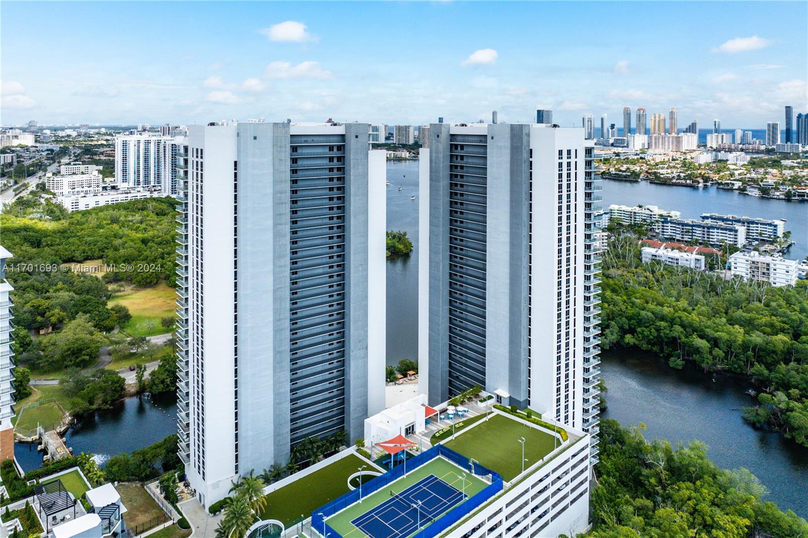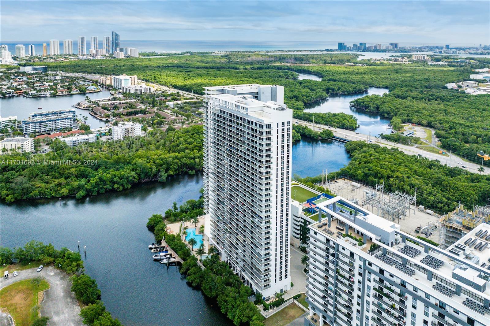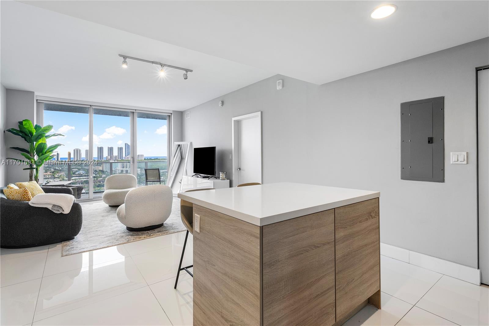 Contemporary Ocean View Living. This 2 bedroom plus den is the best of all worlds. Porcelain floors, quartz countertops, custom closets, custom blinds, open kitchen, spacious balcony, floor-to-ceiling windows with ocean views. Enjoy the amenities such as a morning juice bar, gym (overlooking kids' playroom) dance studio, spa with massage services, library-game area, gathering area with fireplace and open WiFi work area, semi-private elevators, beach sun tanning, water sport launch area, and private entry vestibule. The perfect City living building. 1 mile to the beach, 1 mile to the Brightline station, 1 mile to Aventura Mall, Restaurants, and Groceries.