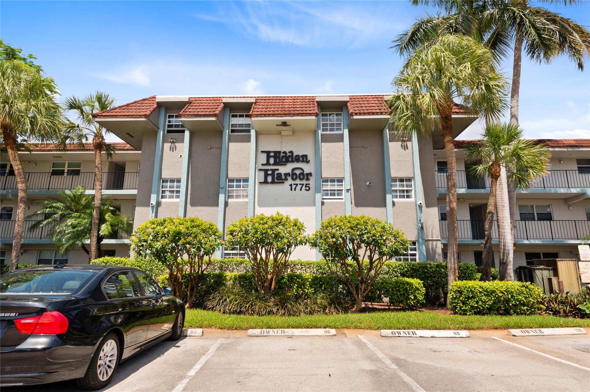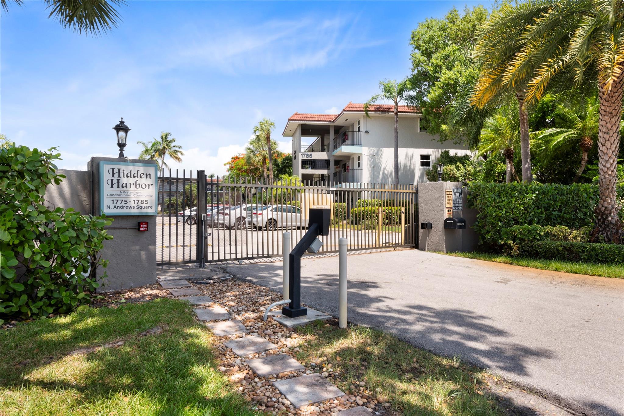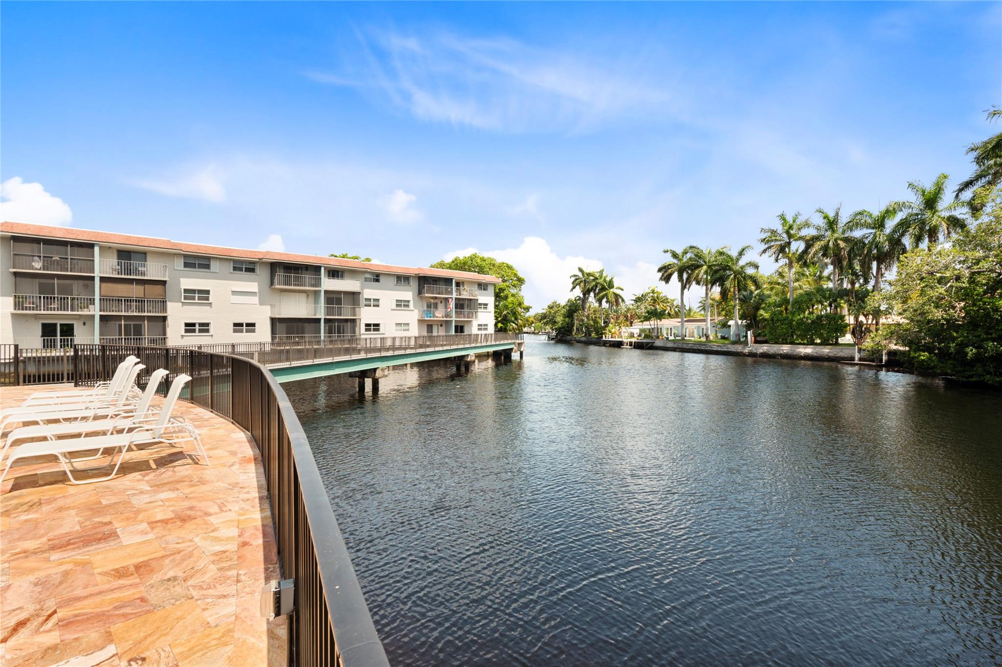 Truly a hidden gem. This updated two bedroom/two bath condo in the gated, peaceful waterfront community of Hidden Harbor. Located directly on the Middle River close to Wilton Manors and Fort Lauderdale, Hidden Harbor is minutes to Wilton Drive and Las Olas with dining, parks and more nearby. Gym, sauna, clubroom and waterfront pool with river views at your doorstep! This must-see top floor unit has an updated kitchen open to living and dining areas with gorgeous hardwood cabinetry, granite counters, stainless appliances and wrap around bar. Tile flooring and crown molding throughout, screened balcony overlooking canal. Two spacious bedrooms, each with an updated bath and generous closets. Impact window and doors throughout! Assigned parking space outside. Washer/Dryer on floor.