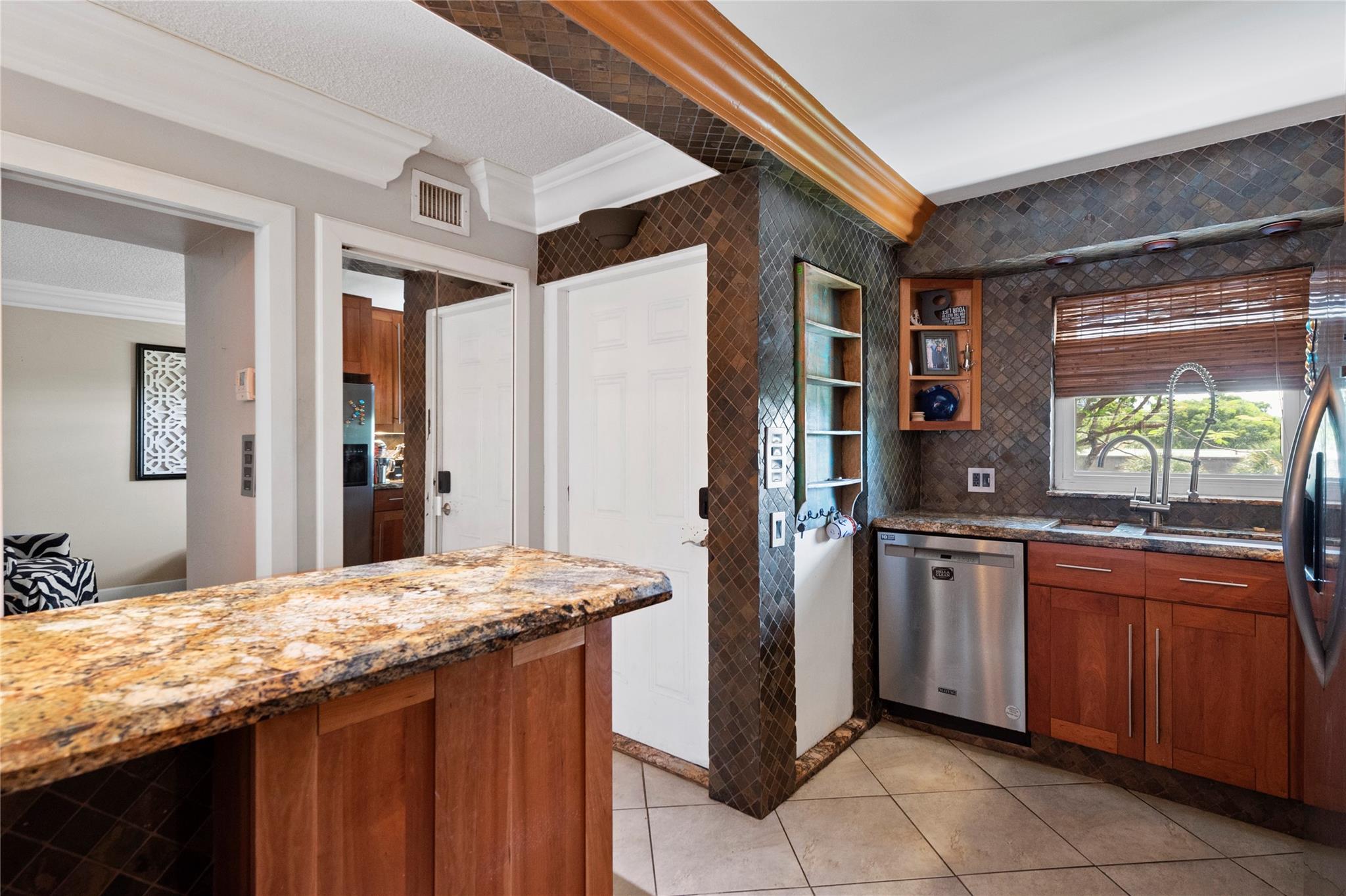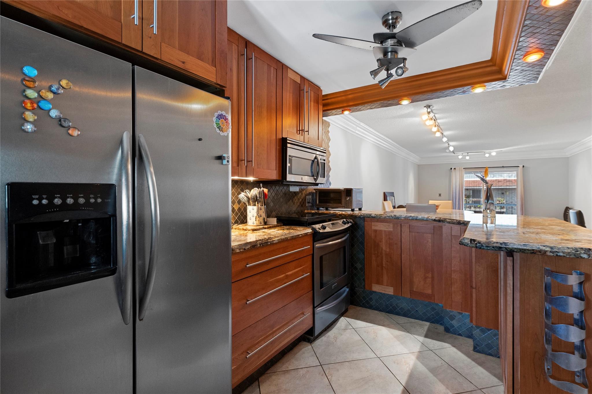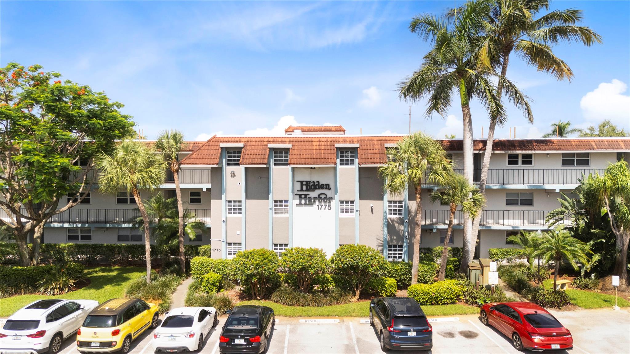 Truly a hidden gem. This updated two bedroom/two bath condo in the gated, peaceful waterfront community of Hidden Harbor. Located directly on the Middle River close to Wilton Manors and Fort Lauderdale, Hidden Harbor is minutes to Wilton Drive and Las Olas with dining, parks and more nearby. Gym, sauna, clubroom and waterfront pool with river views at your doorstep! This must-see top floor unit has an updated kitchen open to living and dining areas with gorgeous hardwood cabinetry, granite counters, stainless appliances and wrap around bar. Tile flooring and crown molding throughout, screened balcony overlooking canal. Two spacious bedrooms, each with an updated bath and generous closets. Impact window and doors throughout! Assigned parking space outside. Washer/Dryer on floor.
