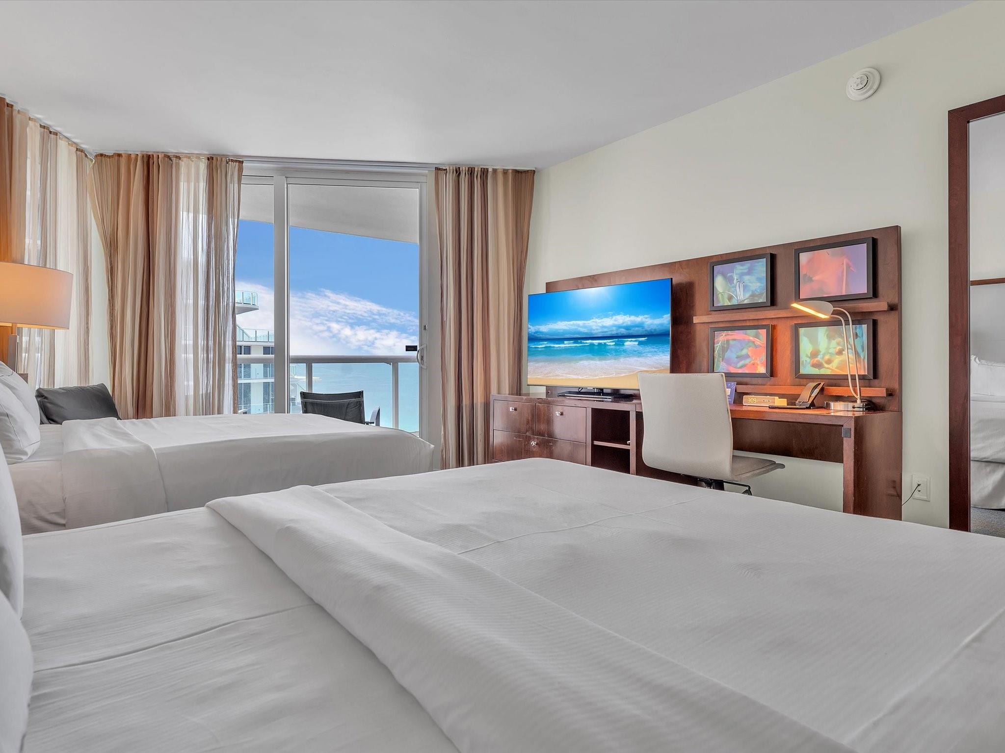 Condo hotel managed by the Hilton. Discover your tropical paradise in the heart of Fort Lauderdale's vibrant & busy Beach where endless sunshine, pristine sands, and exciting nightlife awaits with plentiful shops, restaurants, bars, shopping center and more. This exceptional fully furnished studio boasts of two queen-sized beds, modern flooring & a massive 119 sq. ft wrap-around terrace w/ impact windows offering breathtaking OCEAN VIEWS. Enjoy the convenience of a washer & dryer, stainless steel mini-fridge, microwave, stove top & owners closet. Amenities feature a beachfront luxurious pool to unwind in style, delicious on site dining options such a S3 & Nube rooftop, starbucks, a 24h state-of-the-art fitness center, pampering spa, valet & exclusive beach access. 10 min from the airport