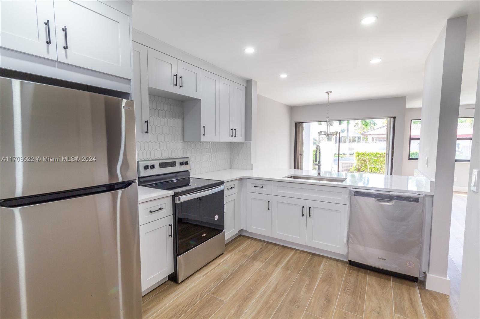Beautifully renovated lake view townhome located in the 24/7 guard gated community of Pierpointe II. This bright and spacious 3-bedroom, 2.5-bath corner unit was elegantly updated with a new kitchen with quartz counters, white wood cabinets, stainless steel appliances, all-new bathrooms, new baseboards, and new floors with LVP downstairs and carpet upstairs. Enjoy a new A/C system, new water heater, and impact windows and doors for full hurricane protection. Washer and Dryer inside the unit. Ample fenced patio with access to the lake and walking path. Complete external building renovation just 3 years ago, new roof, new stucco, and paint. Directly across from the community pool. Near Shopping and transportation. 700+ Credit Score Requirement.