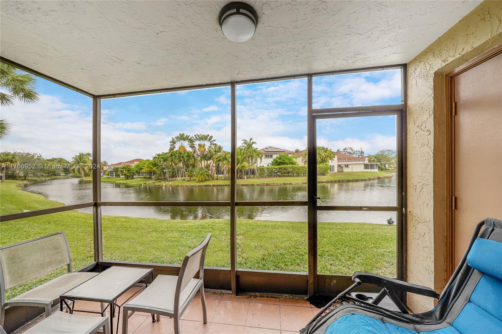 Discover modern comfort in this fully remodeled 2-bedroom, 2-bath corner condo with stunning lake views. Porcelain floors flow throughout, complementing a stylish kitchen with quartz countertops. Impact windows, doors, and a newer A/C unit (5 years old) ensure peace of mind and energy efficiency. Enjoy serene water views from the living area and patio, or relax on the tiled, screened patios at the front and back. A storage room adds convenience, reserved parking space is right outside with ample guest parking nearby. Enjoy access to the Town Center Club at Bonaventure, offering amenities like a gym, tennis, pools, bowling, roller skating, indoor basketball, and much more for the entire family. This home combines modern upgrades with a vibrant community lifestyle?don't miss it!
