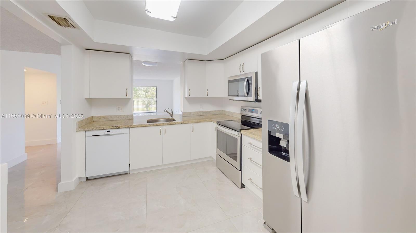 AS IS - Fully remodeled, large apartment in Weston of 2 beds, 2 full baths. This unit boasts a stunning view of the Bonaventure golf course that you can enjoy from a large screened balcony. Showcasing new ceramic flooring throughout. A spacious eat-in kitchen with ample granite counter space and storage, and a generous primary suite with a large walk-in closet and private bathroom. Full-size washer and dryer. A/C is 2022, and Water Heater 2021. Two community pools and 3 Tennis Courts. All offers will be considered. Residents of Fairways can also enjoy the benefits of a large community pool, tennis and gym access to the Bonaventure Town Center Club for $335 per year. This is a gem, and it won't last! Please see Virtual Tour !