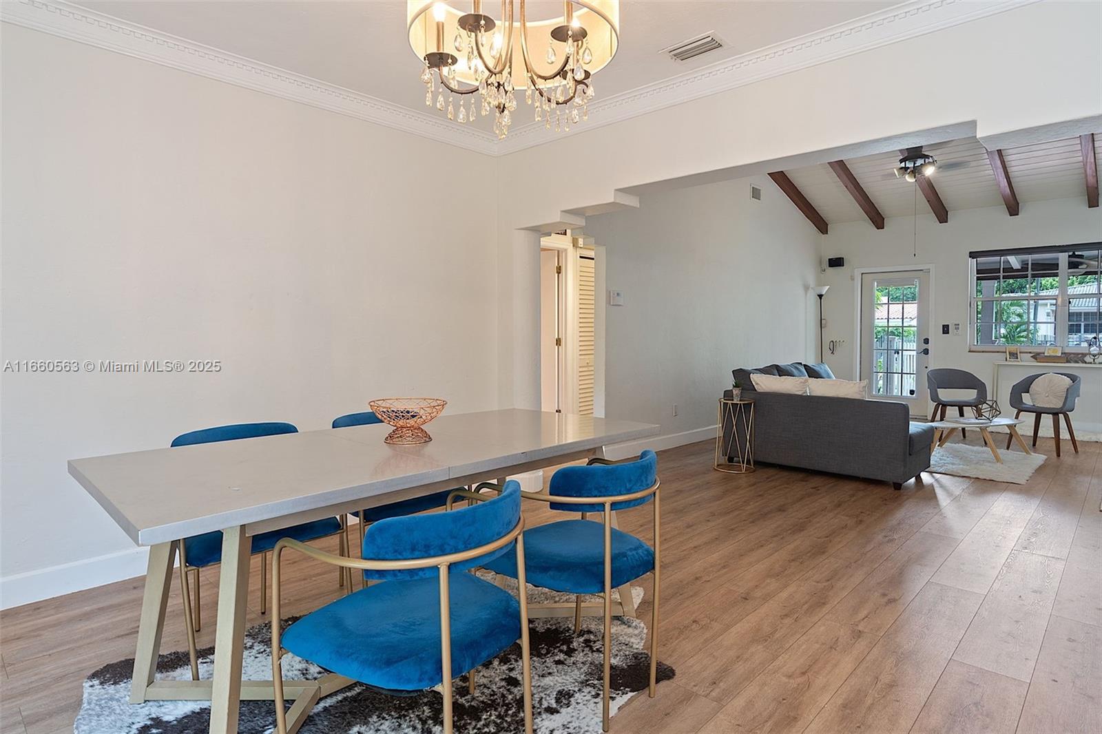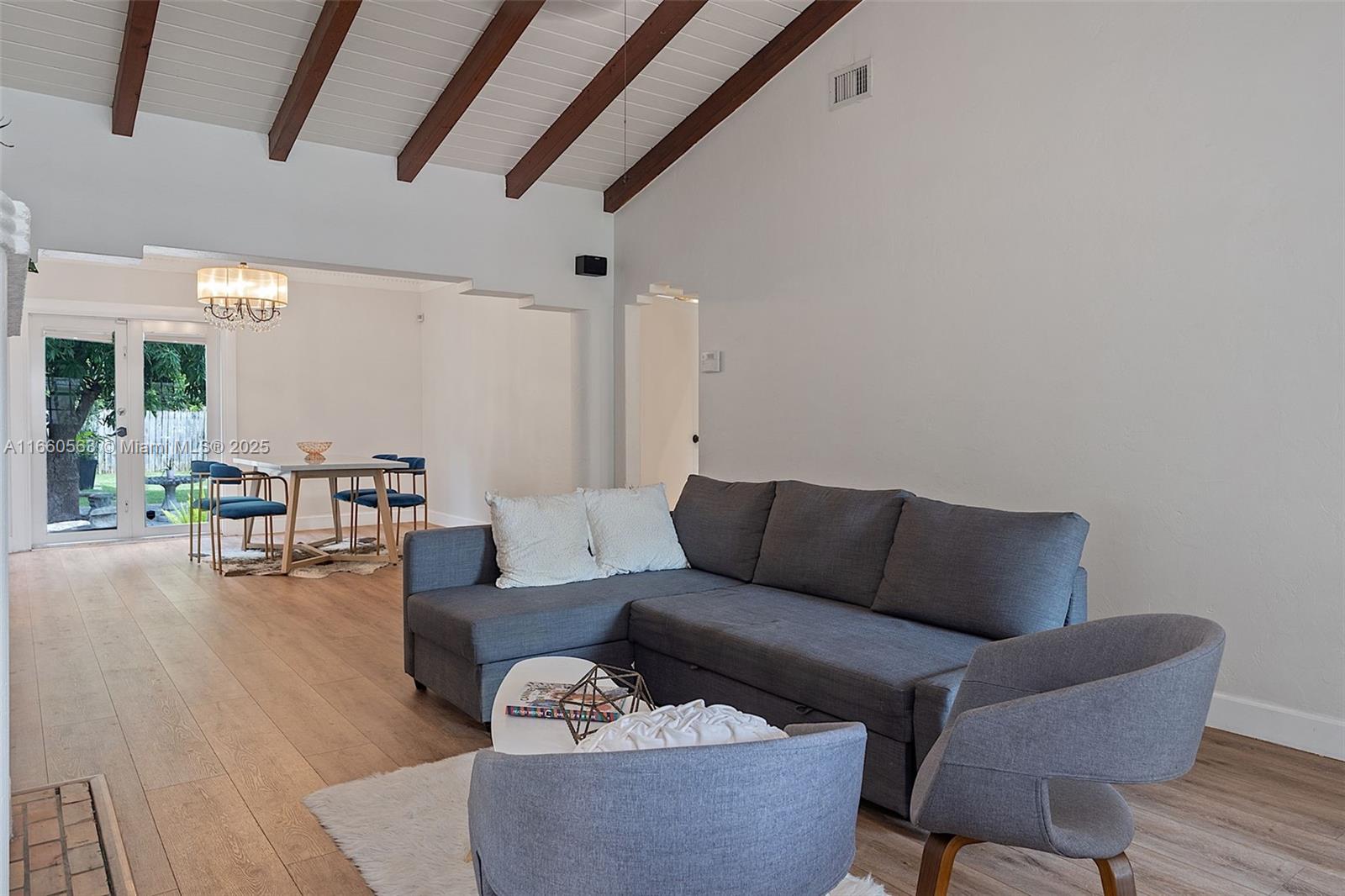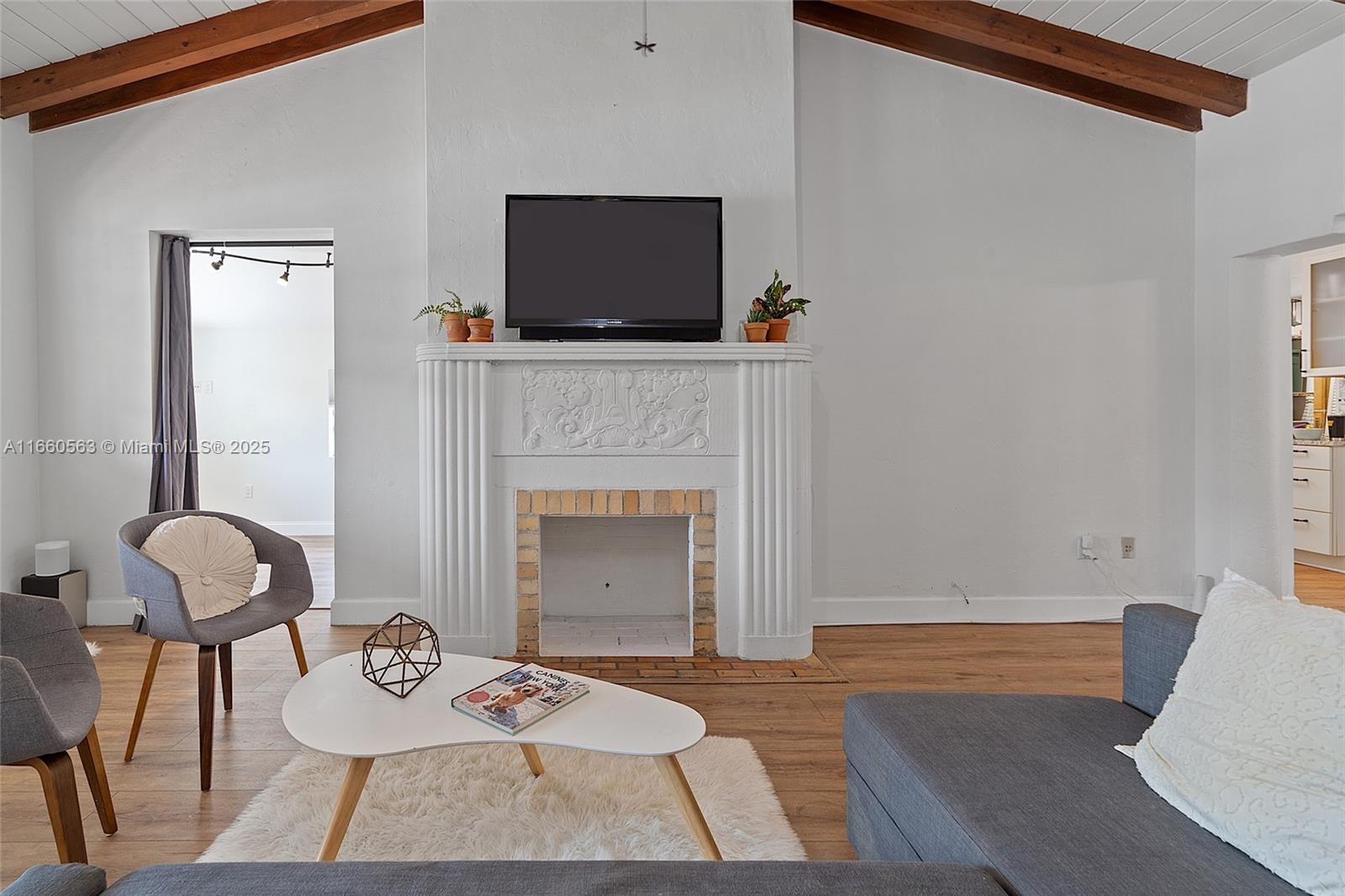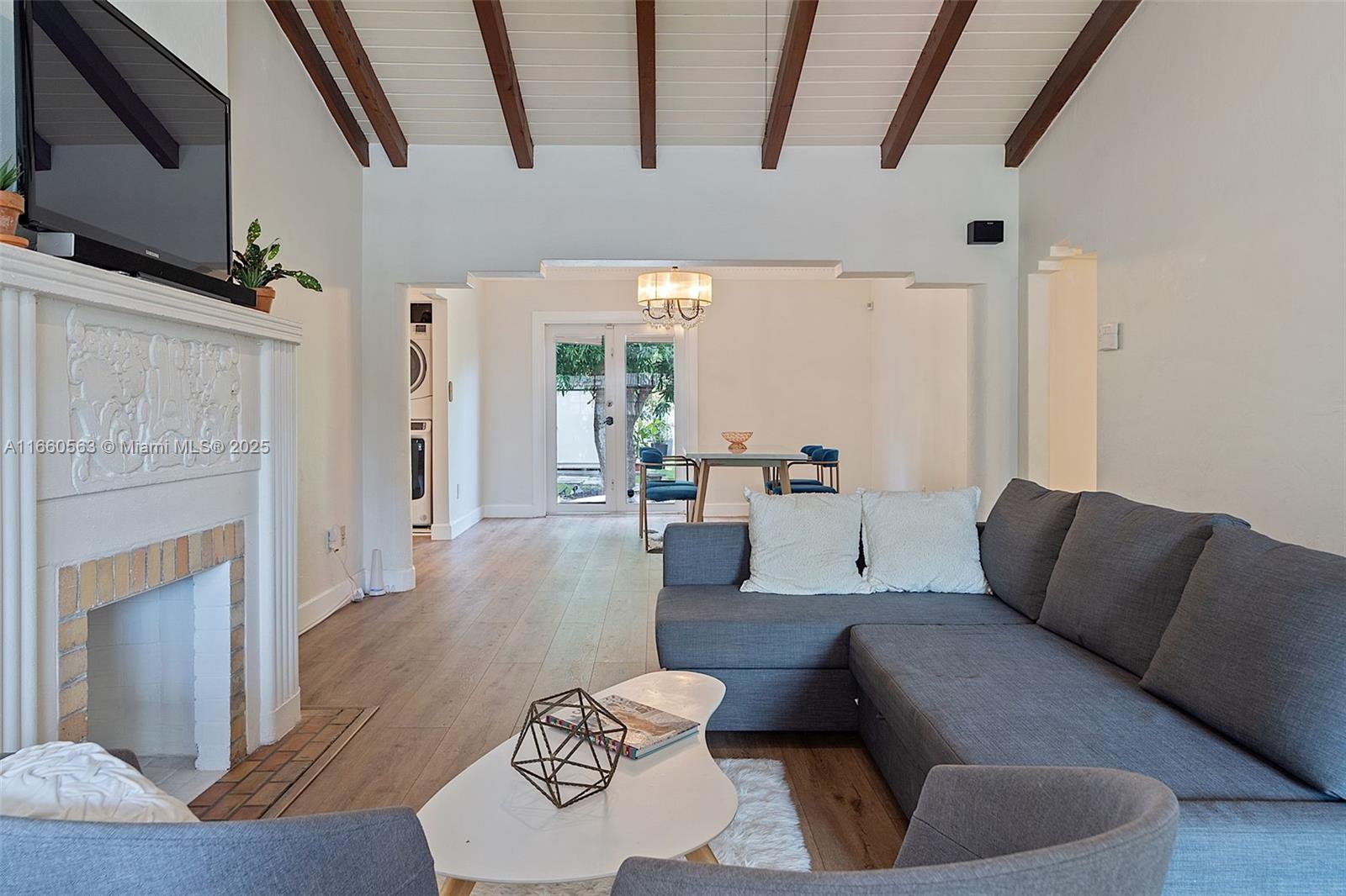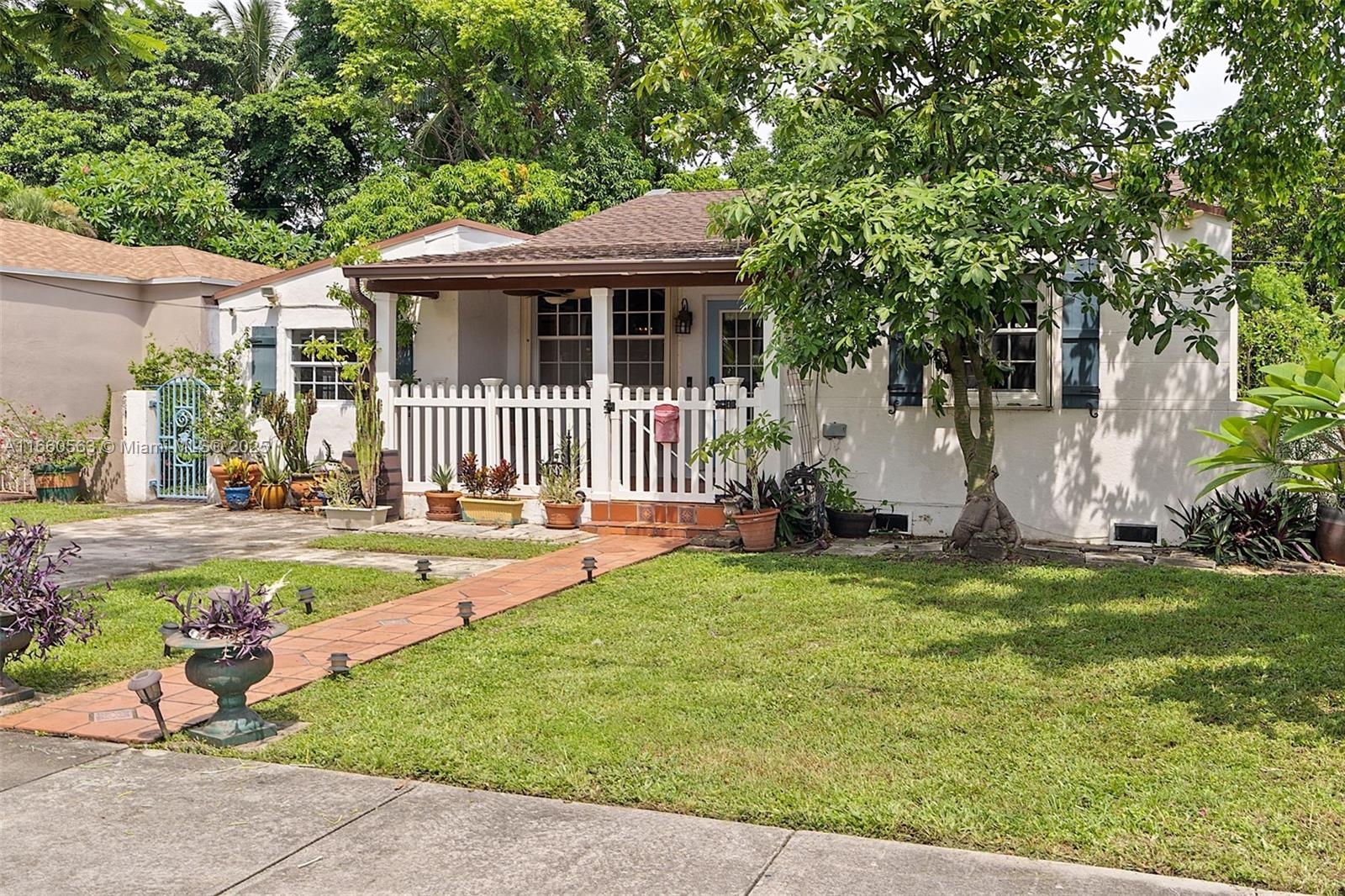 Delightful house situated on a tree-lined street in the historic Silver Bluff neighborhood. Located near world-class shopping/dining in downtown Coral Gables and charming village of Coconut Grove. Renovated 2BR/2BA + office home that can be easily converted into a 3rd bedroom. The total square footage under air, as reported by the seller, is 1,591. The light-filled living and dining rooms boast vaulted, wood-beamed ceilings, a fireplace, and original architectural details. Kitchen features classic white-wood cabinetry, stone countertops, and SS appliances, including a gas cooktop and a pantry. The expansive garden offers plenty of space for entertaining. Additionally, a permitted shed for extra storage. Close to MIA, Brickell, Downtown, and the Beaches. New tankless water heater and AC.