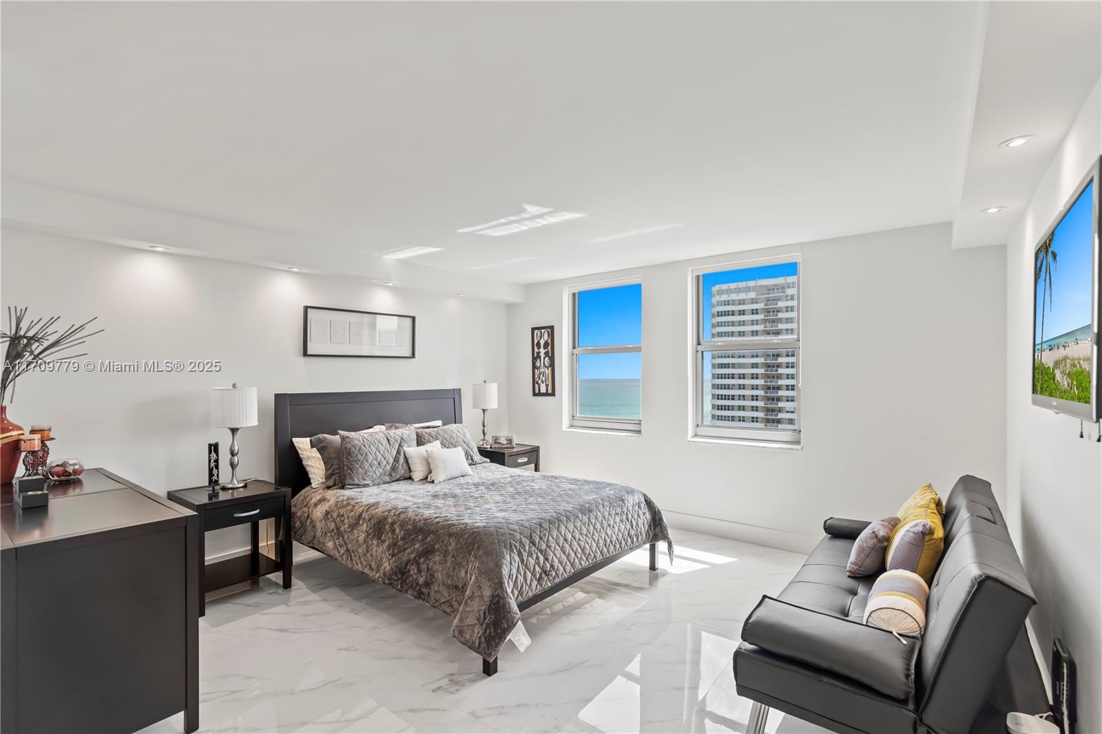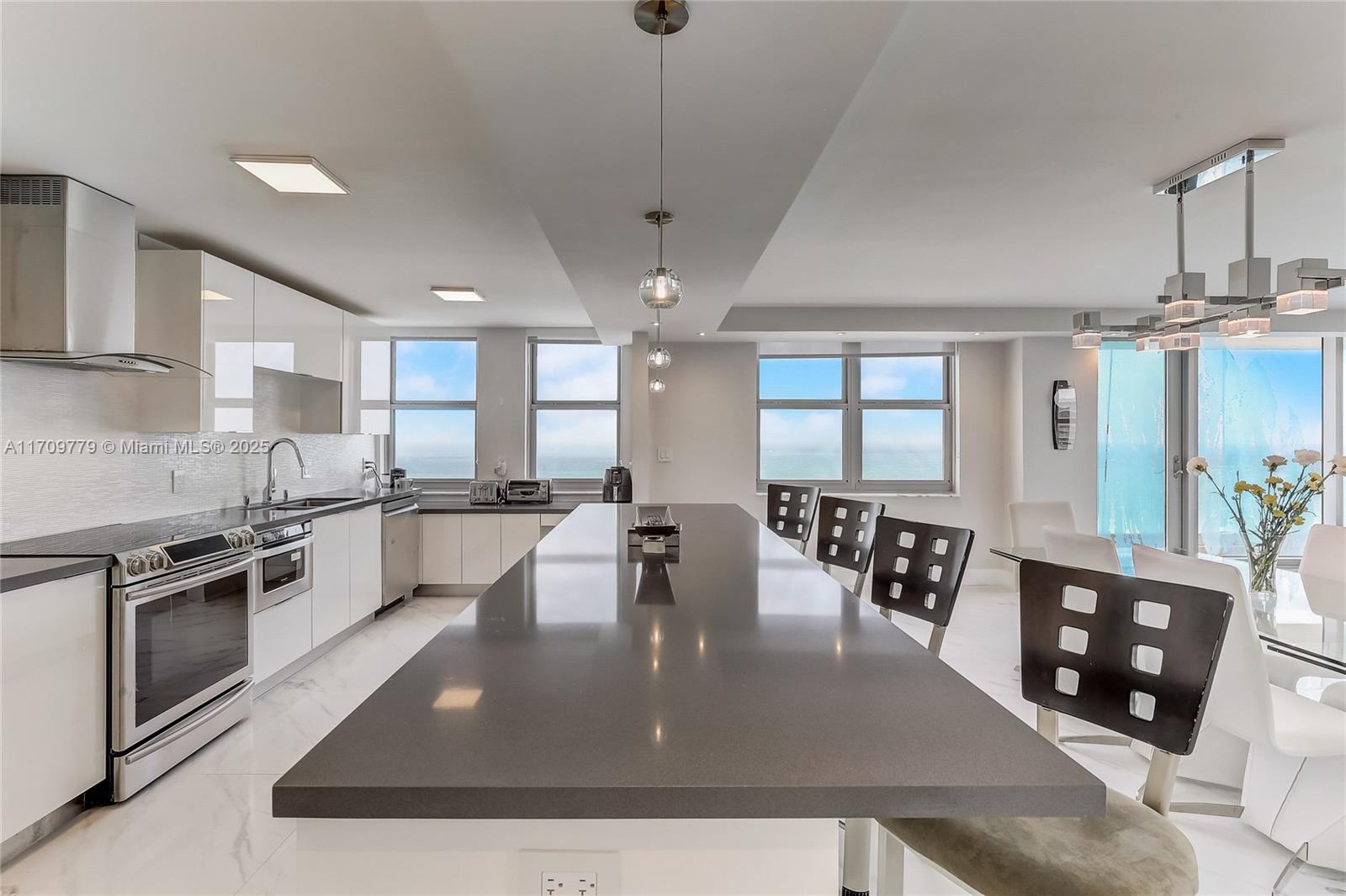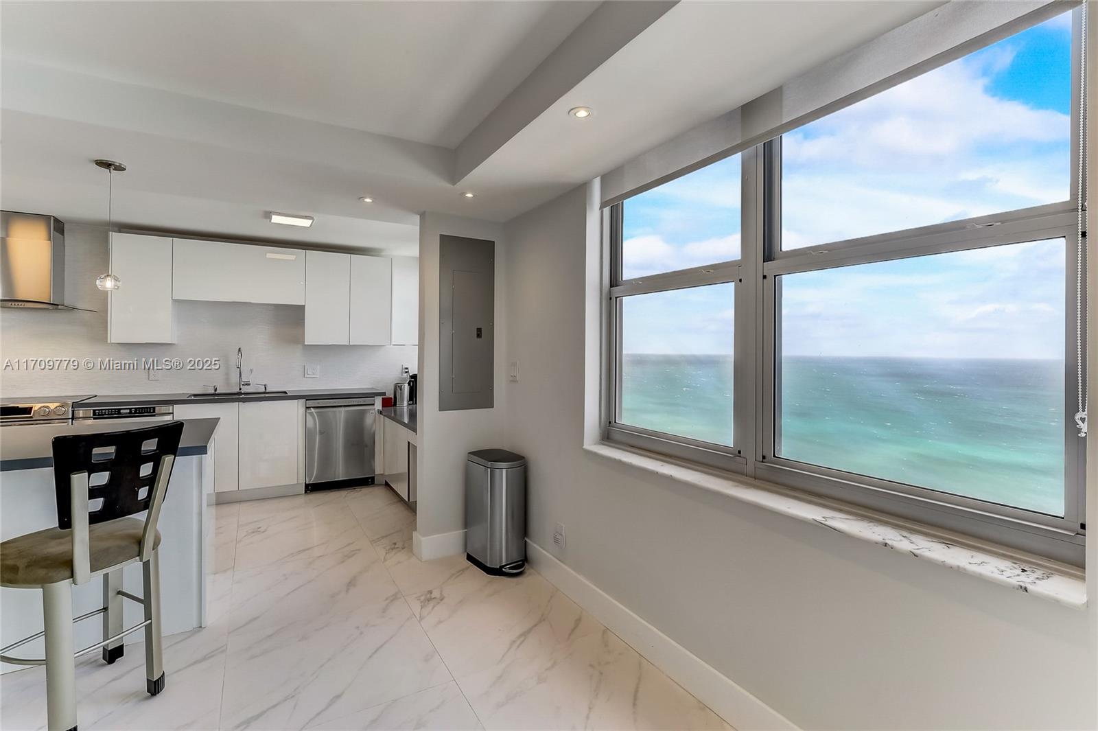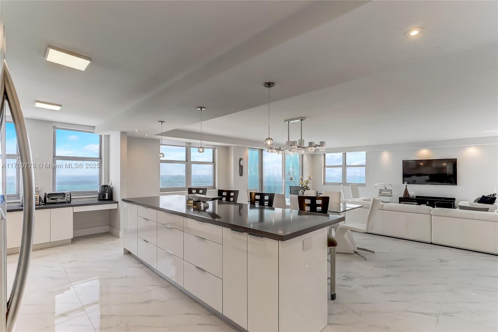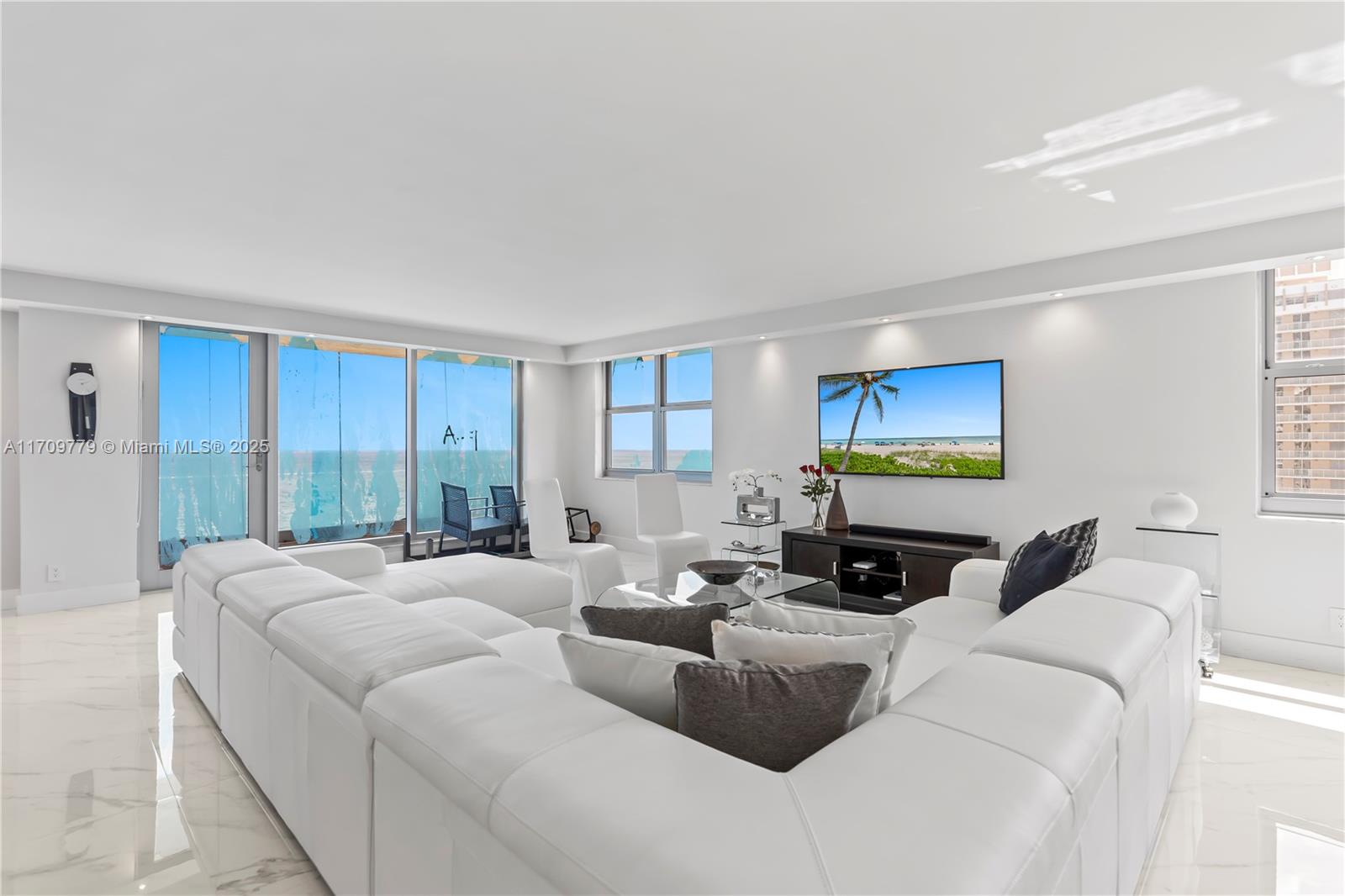 Come see this completely renovated, rarely available, most desired SE corner unit with amazing direct ocean views. This exceptional 2 bed/3 bath boasts over 2300sqft of modern luxury(This unit can easily convert to a generous 3 bed). Enter and be impressed with the immediate ocean views, bright open floor plan, large living room, and high-end renovations. Relax on the wraparound balcony where you will enjoy the stunning blue waters, ocean breezes and beautiful city views. This unit includes an open white kitchen with quartz countertops, huge island with counter seating, stainless steel appliances, large ensuite bedrooms, a beautiful primary bathroom with a soaking tub, gorgeous flooring throughout and a laundry room with storage. Upgrades extend to impact windows & glass balcony railings