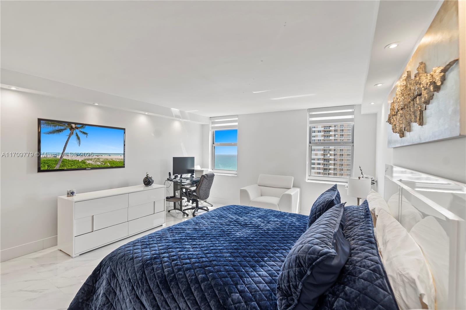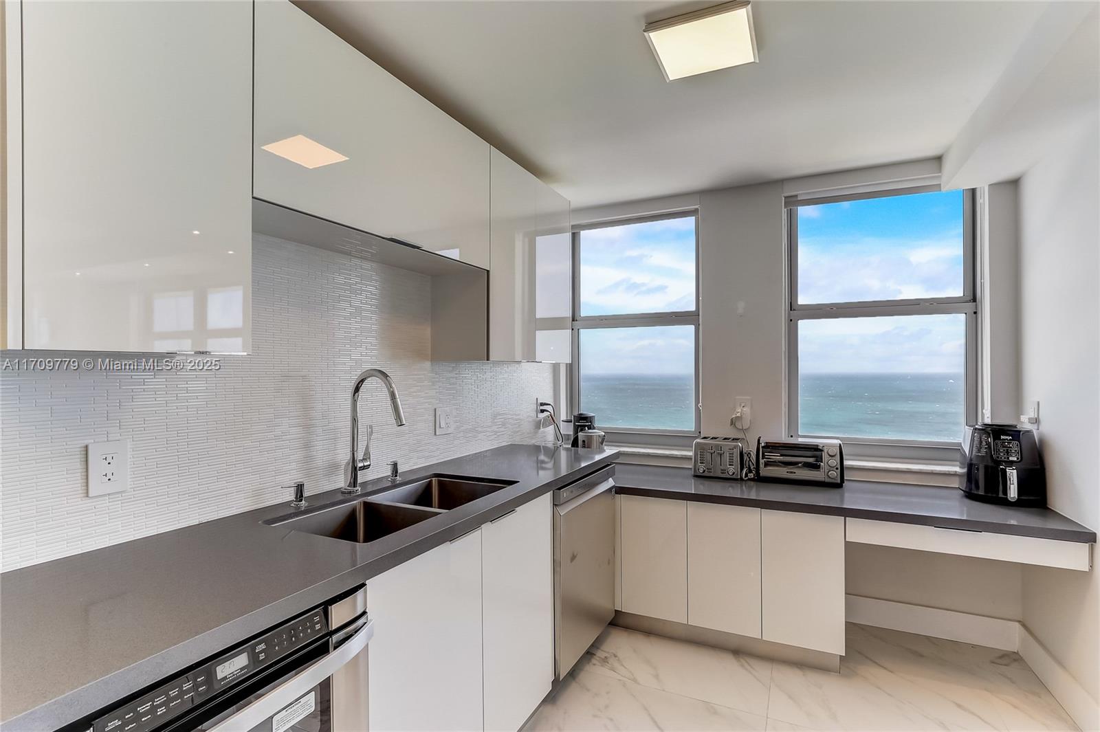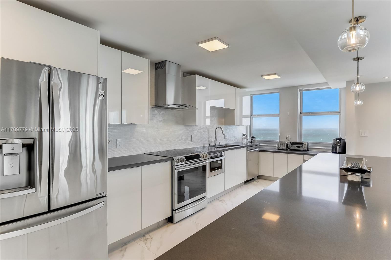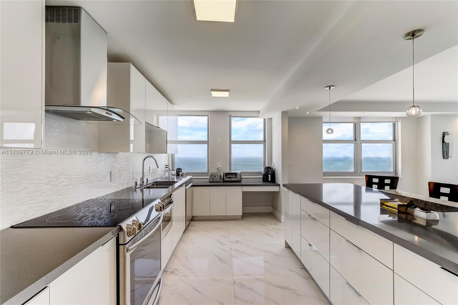 Come see this completely renovated, rarely available, most desired SE corner unit with amazing direct ocean views. This exceptional 2 bed/3 bath boasts over 2300sqft of modern luxury(This unit can easily convert to a generous 3 bed). Enter and be impressed with the immediate ocean views, bright open floor plan, large living room, and high-end renovations. Relax on the wraparound balcony where you will enjoy the stunning blue waters, ocean breezes and beautiful city views. This unit includes an open white kitchen with quartz countertops, huge island with counter seating, stainless steel appliances, large ensuite bedrooms, a beautiful primary bathroom with a soaking tub, gorgeous flooring throughout and a laundry room with storage. Upgrades extend to impact windows & glass balcony railings
