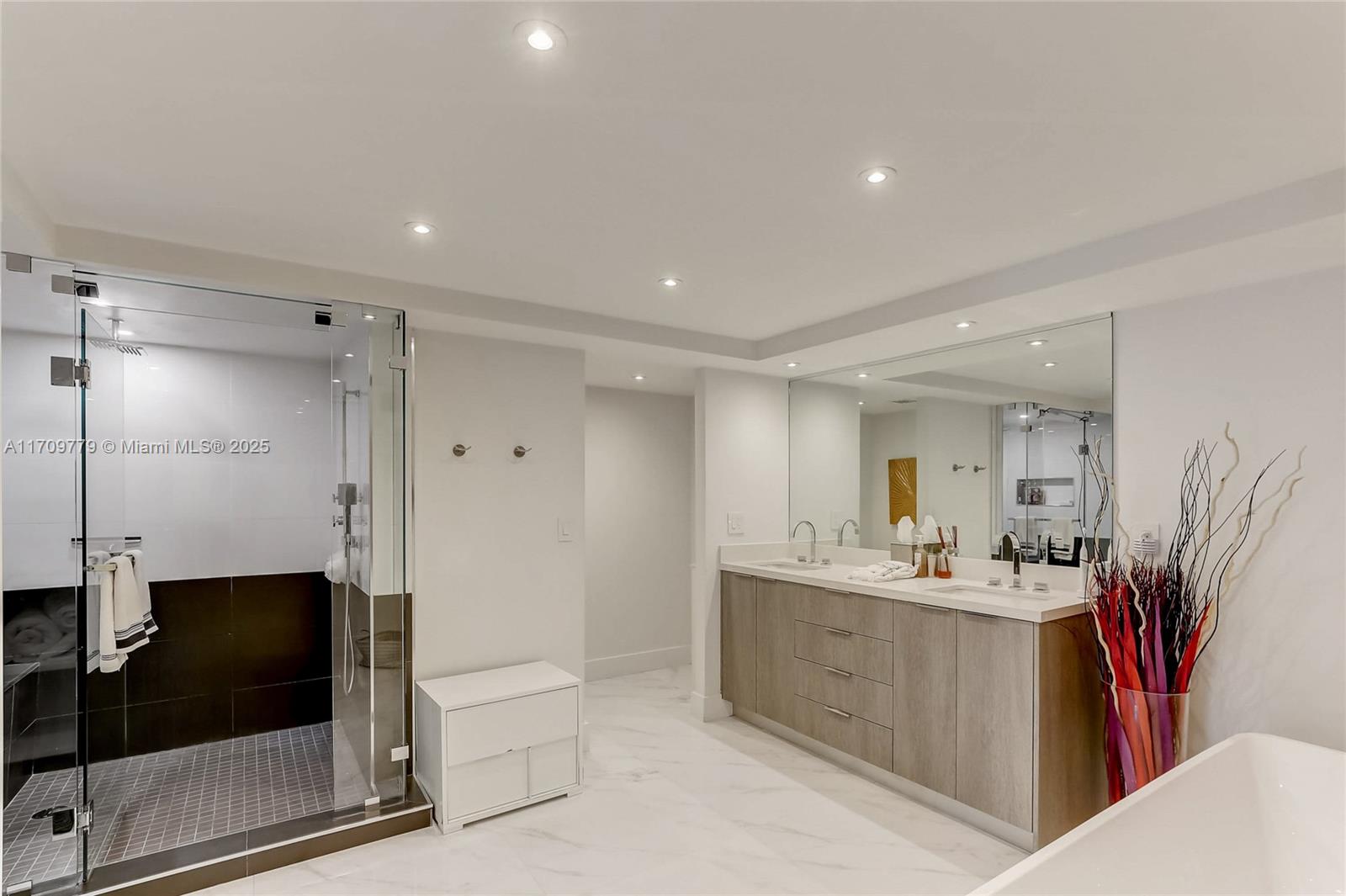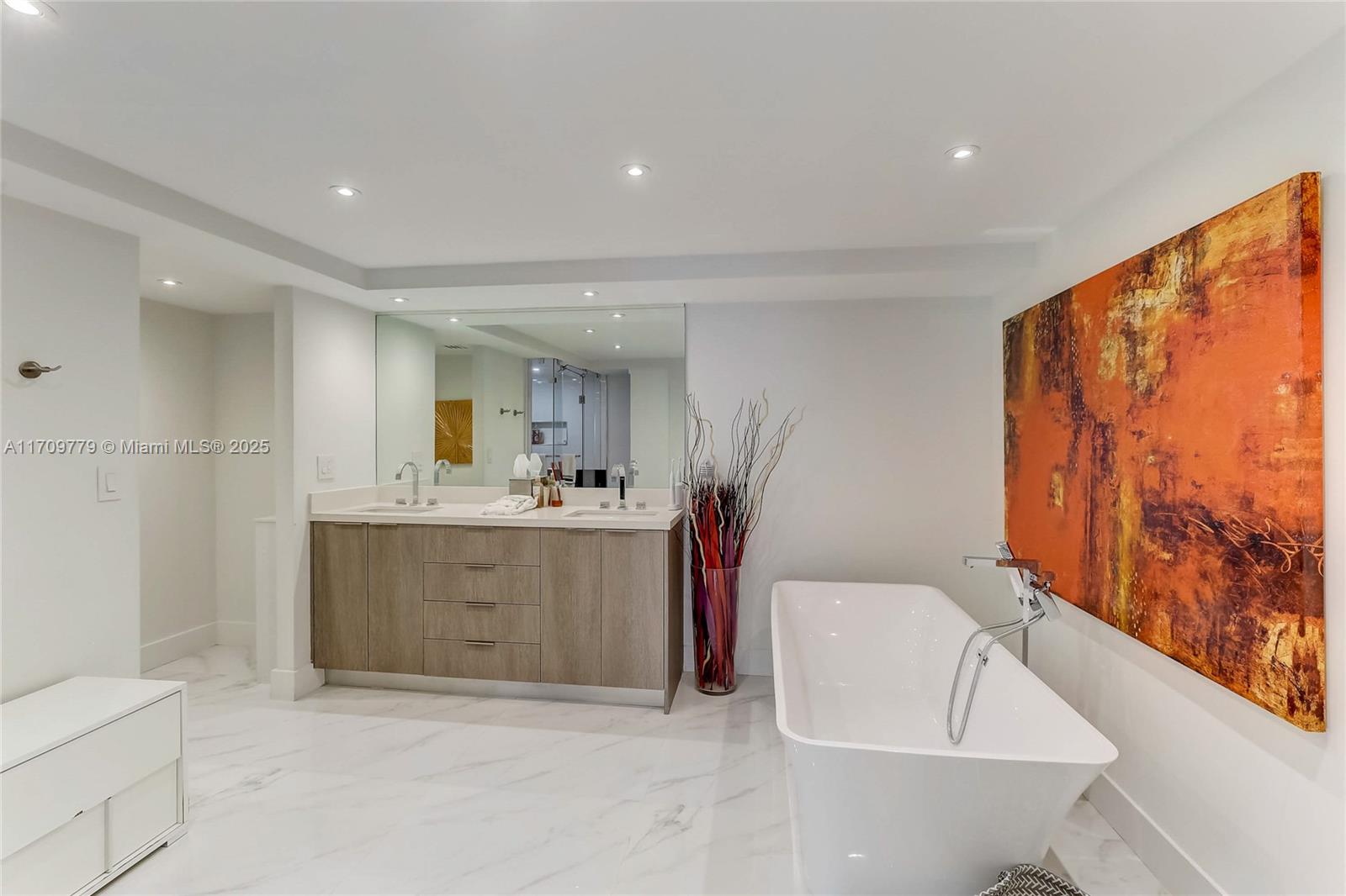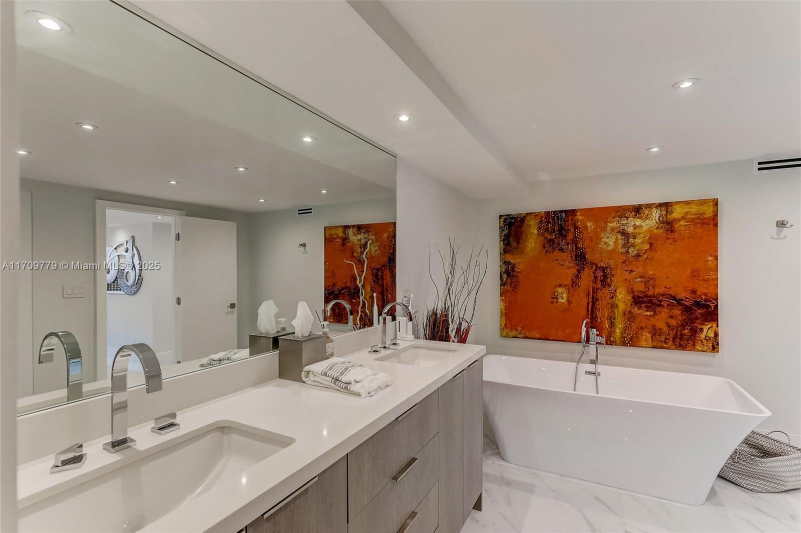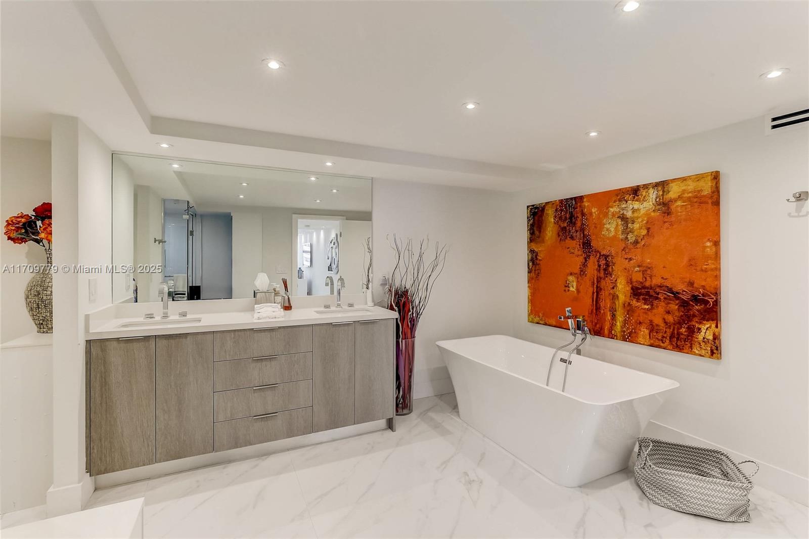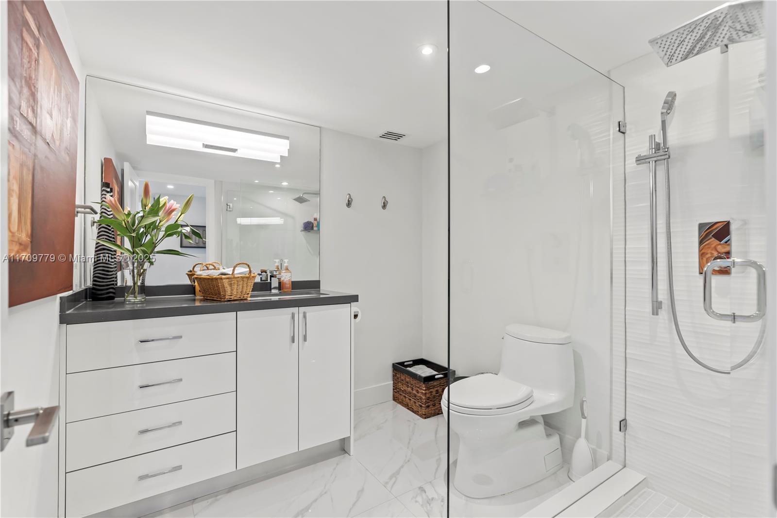 Come see this completely renovated, rarely available, most desired SE corner unit with amazing direct ocean views. This exceptional 2 bed/3 bath boasts over 2300sqft of modern luxury(This unit can easily convert to a generous 3 bed). Enter and be impressed with the immediate ocean views, bright open floor plan, large living room, and high-end renovations. Relax on the wraparound balcony where you will enjoy the stunning blue waters, ocean breezes and beautiful city views. This unit includes an open white kitchen with quartz countertops, huge island with counter seating, stainless steel appliances, large ensuite bedrooms, a beautiful primary bathroom with a soaking tub, gorgeous flooring throughout and a laundry room with storage. Upgrades extend to impact windows & glass balcony railings