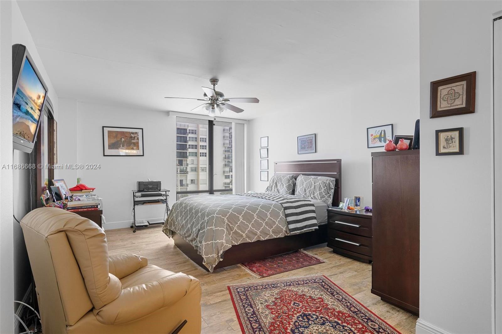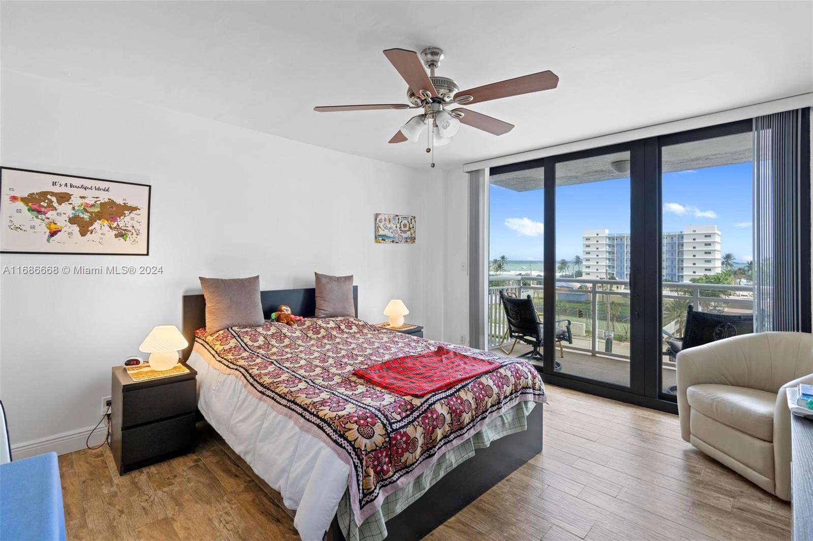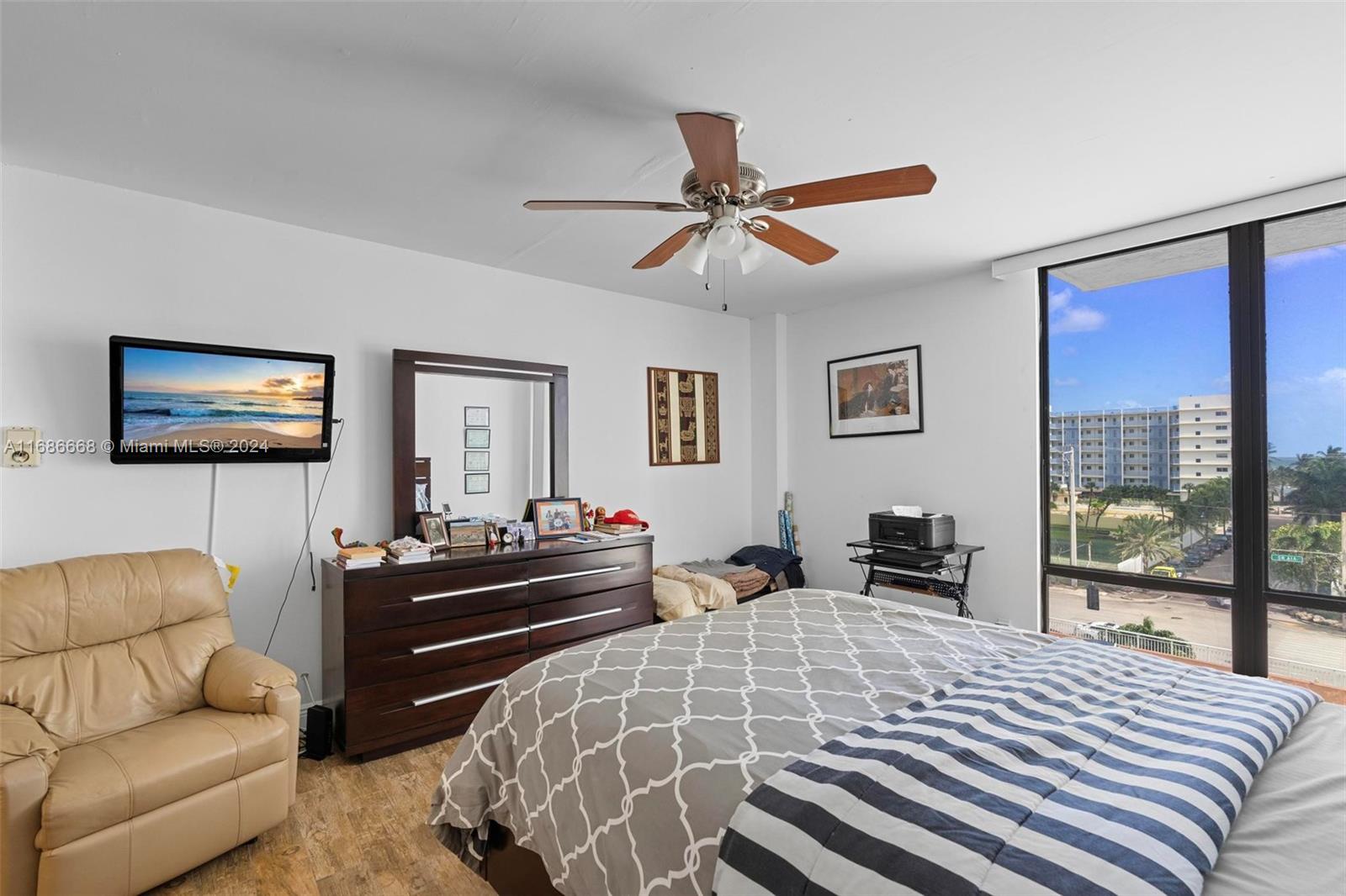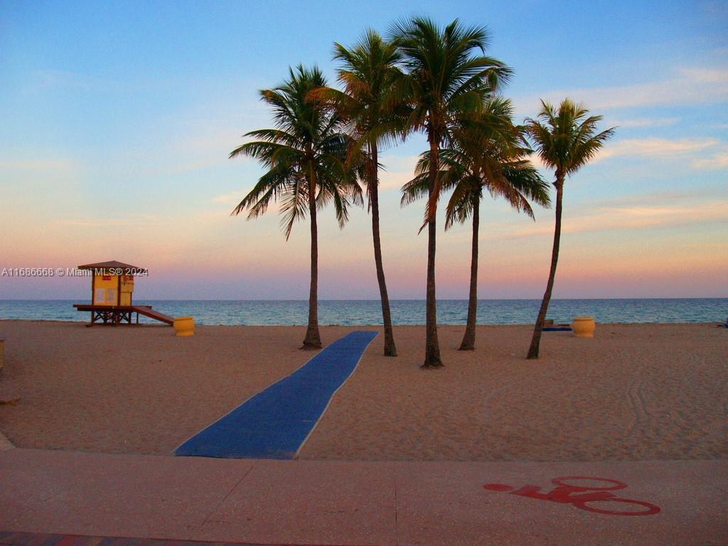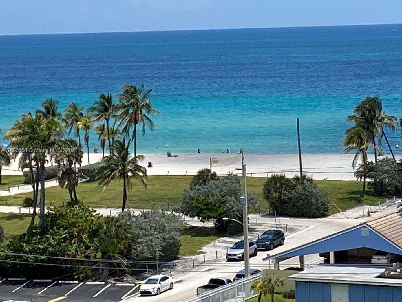 Welcome to Allington Towers South with Oceanview living with spectacular sunrises! This spacious 2-bedroom, 2-bathroom condo offers 1,218 square feet. This well-maintained unit features floor-to-ceiling windows, ceramic wood floors, a new water heater, and hurricane-impact sliding glass doors off the guest bedroom and an oversized terrace. With a large storage closet inside and a walk-in closet in the primary bedroom, this condo is ready for your tender loving care. Enjoy 24-hour security, with the airport just 15 minutes away and the Hollywood Broadwalk a short stroll away. This residence boasts the best-covered parking spot in the building. Beach access is right across the street, small pets are allowed, and it is rentable in the first year per cap rate.
