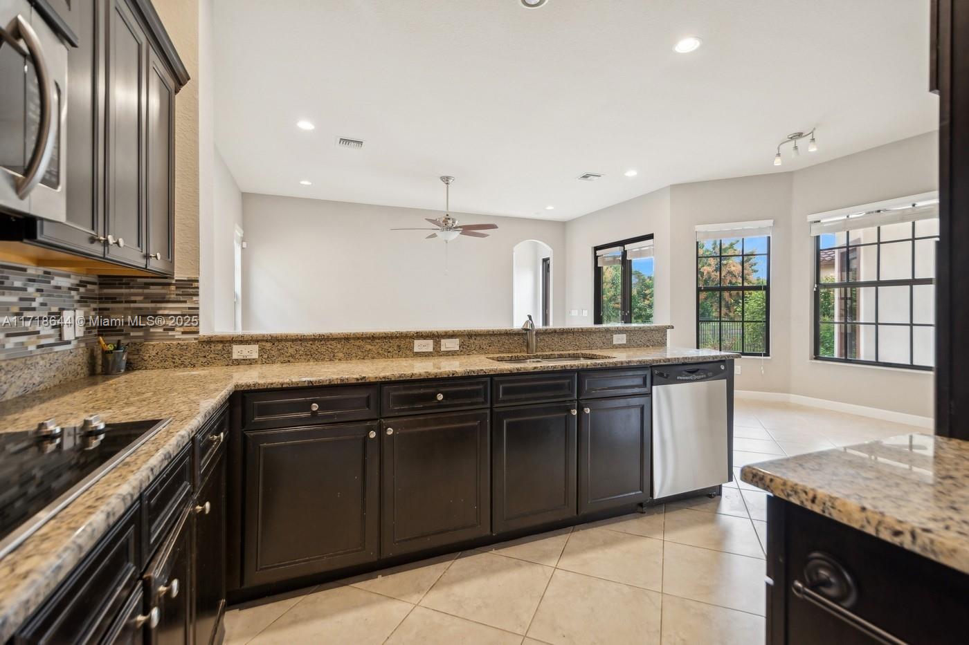 Welcome to 8771 NW 41st Street, Cooper City, This 4-bedroom 3-bathroom home totals 3411 sqft with 2480 sq ft under AC. Located in the executive Estada community at Monterra. This residence offers volume ceilings, a covered back porch, and full impact windows. The home features dual garages with space for three vehicles and a flexible layout with a rear bedroom ideal for in-laws or guests. Step outside, where water shimmers beyond the covered patio. with plenty of room to add a pool. Every detail supports relaxed, elegant living in one of Cooper City's most desirable neighborhoods.