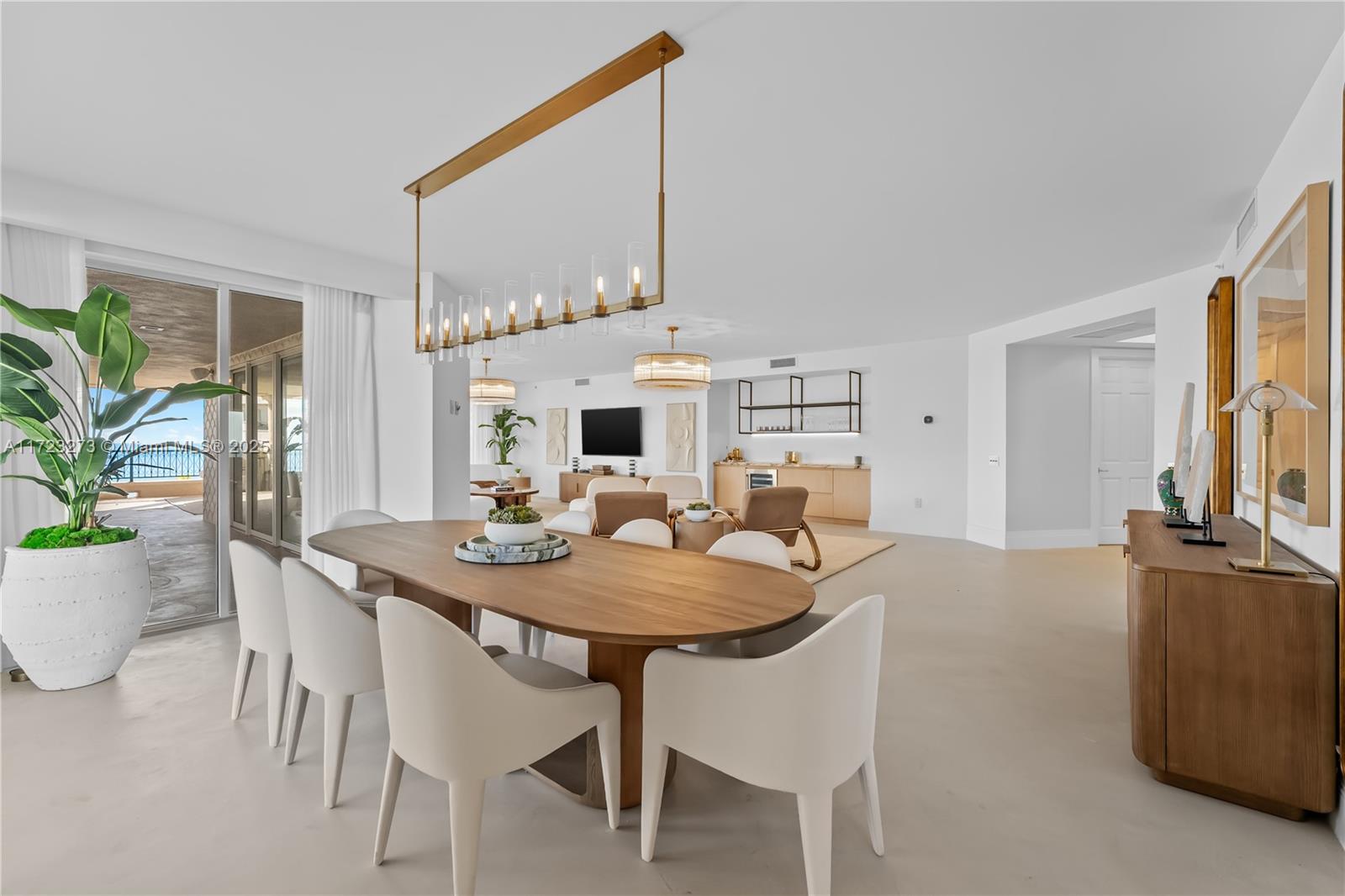 Unique luxury east oceanside unit from which you leisurely stroll from your home directly onto the beach and enjoy the ocean breeze. 3 bedrooms, 4.5 bath, this 3,959 square feet unit had renovation completed January 2025, featuring modern kitchen with viola marble counter tops, a rolling center island, new bathrooms, new closets, waterworks brass door fixtures, new French oak floors, new lighting fixtures. Open plan living and dining areas framed by expansive walls of glass leading to wraparound vast 1,721 sq foot terrace with wide panoramic views of Miami Beach + Atlantic Ocean. Principal suite boasts sitting area, dual walk-in closets + dual spa baths. Turn key, furniture included so move in ready! Enjoy 5-star Fisher Island amenities or sit by your pool listening to ocean waves roll in.