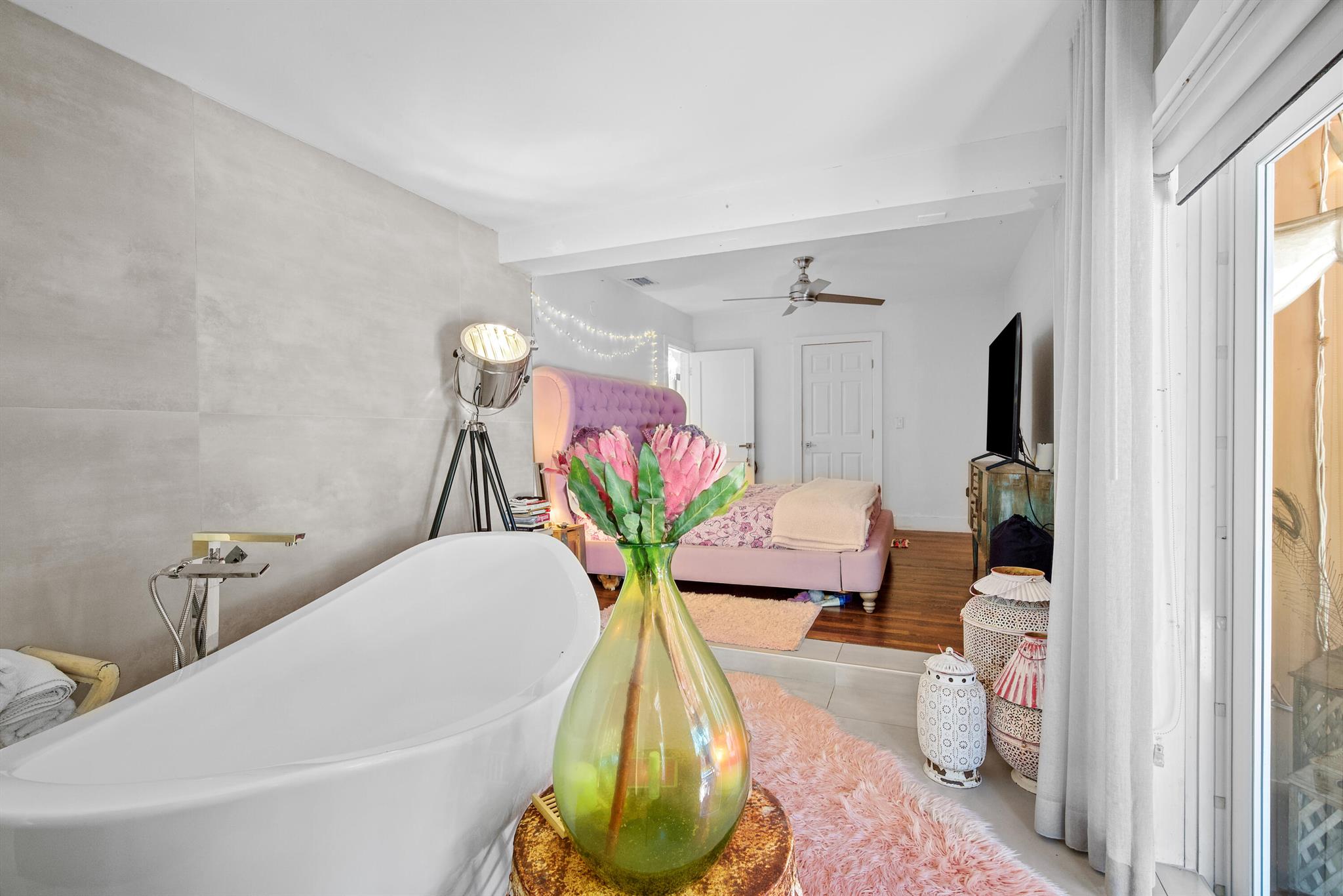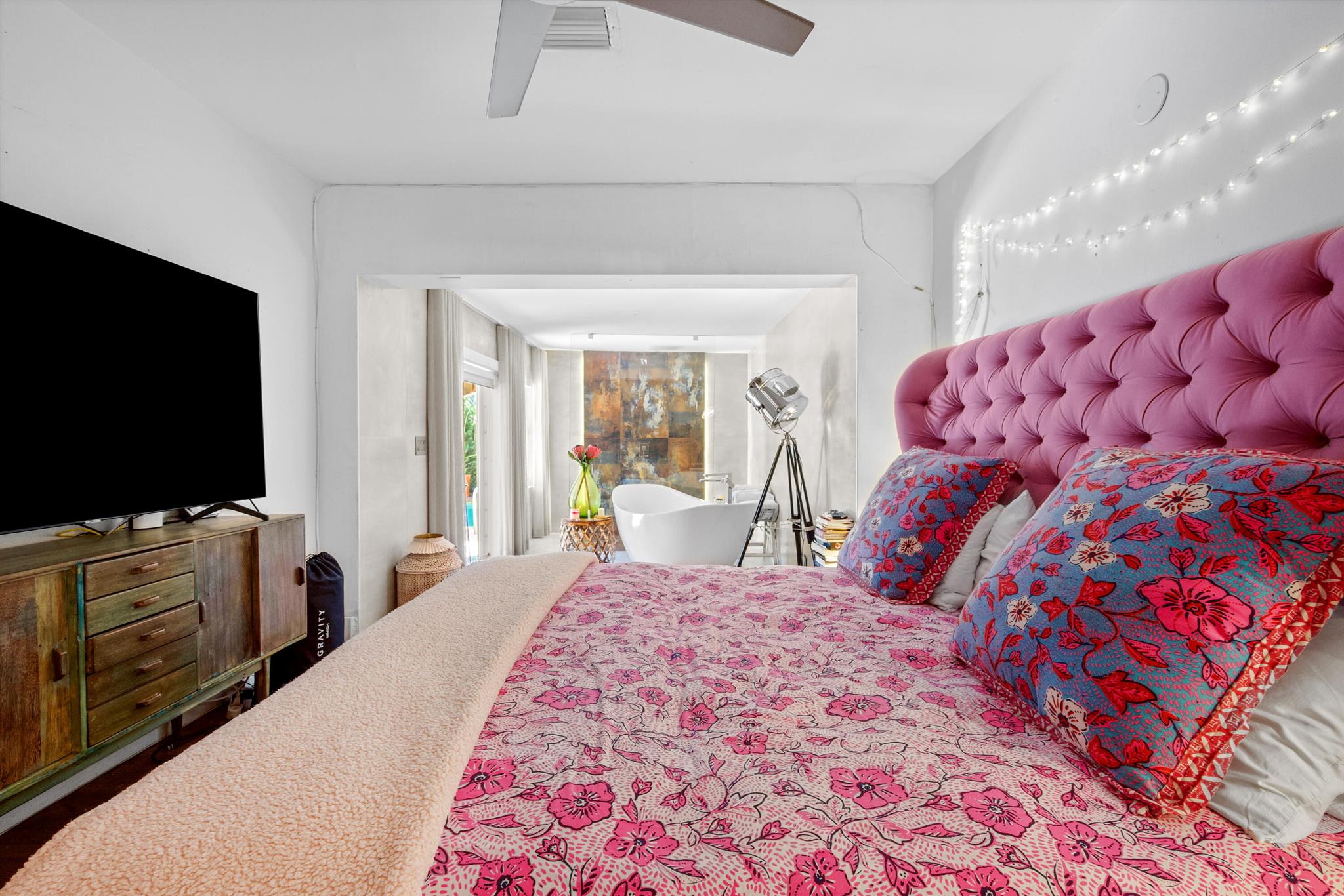 Discover the prestigious Rio Vista neighborhood, where timeless architecture and historic charm blend seamlessly with modern comfort.This stunning 3-bedroom, 2.5-bathroom home offers a perfect mix of original character and contemporary upgrades--including a private pool that enhances its resort-style living. Inside, you'll find an Italian-designed kitchen with stainless steel appliances, quartz countertops, desk area overlooking a gated front patio adorned with elegant wood and wrought iron doors.The primary suite serves as a tranquil retreat, featuring an open-concept bathroom with a soaking tub, separate shower, and serene views of the pool and garden. Sunlit living areas provide an inviting set