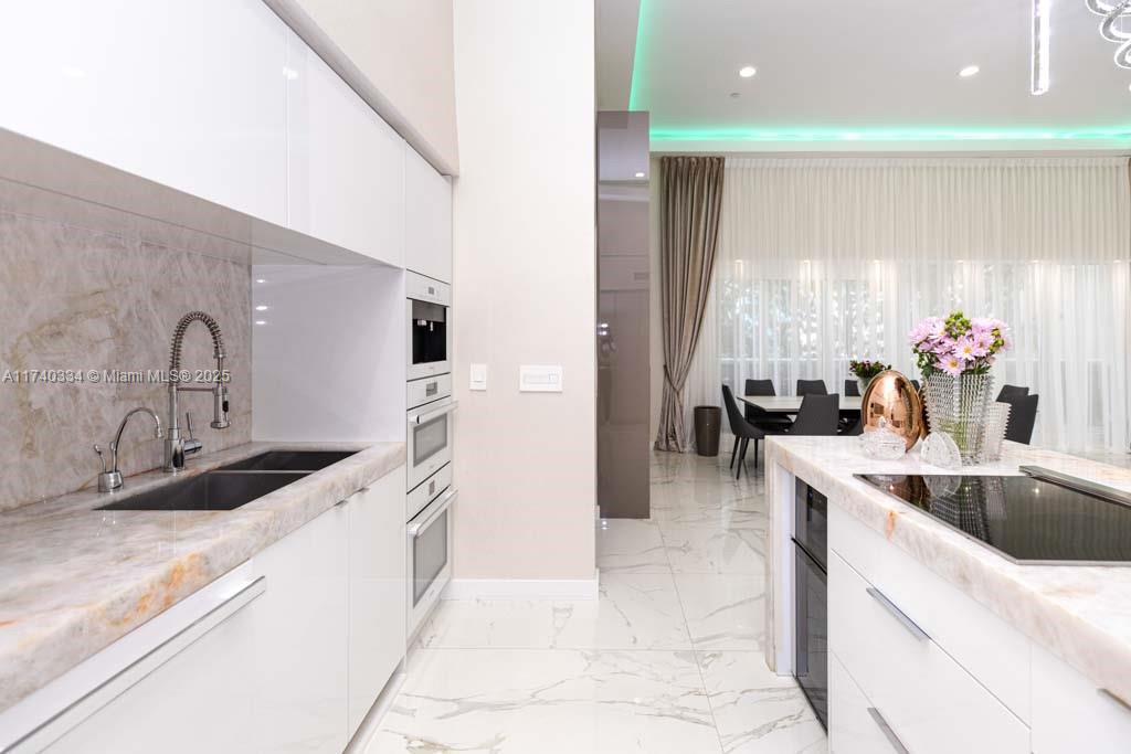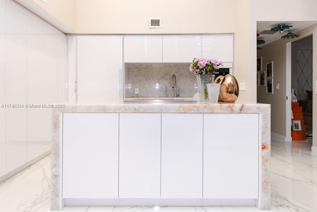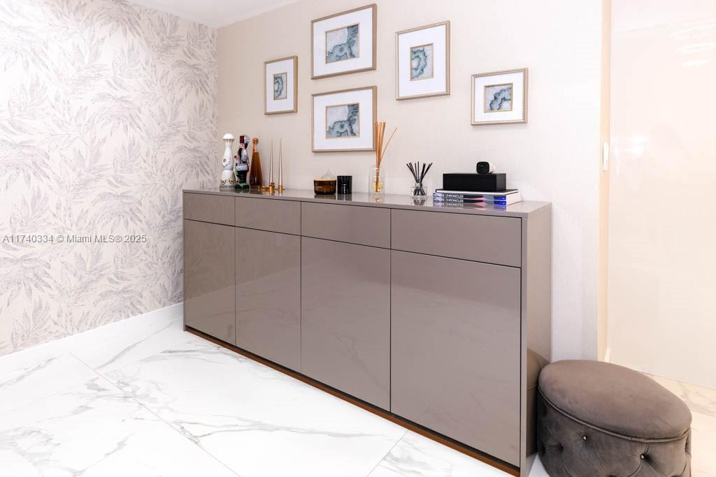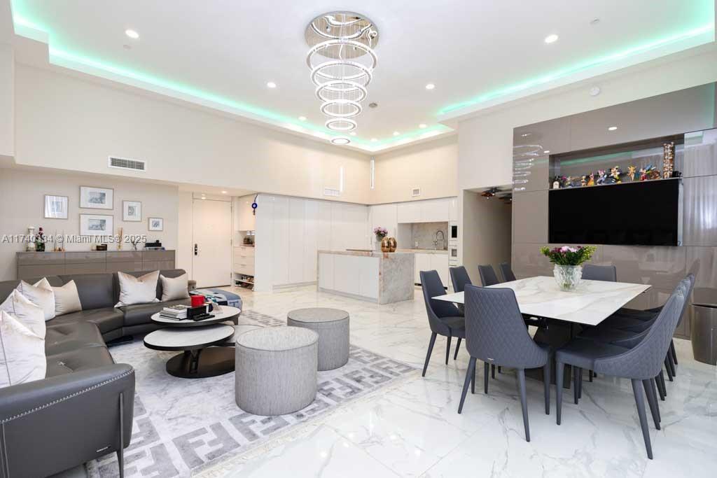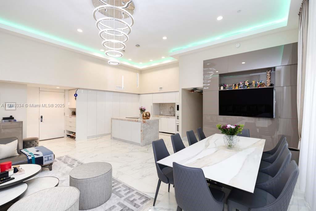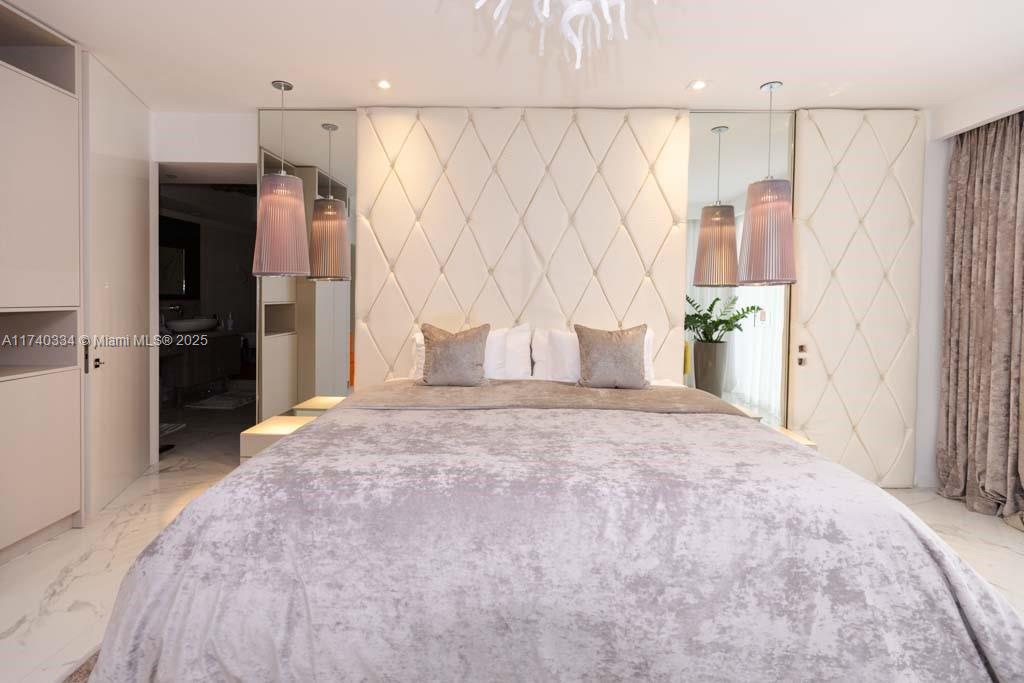 Turn-Key oceanfront freshly renovated 2 bedrooms/2 bathrooms unit - 1782 sq ft - with over 450 sq ft wraparound balcony. HUGE 12 feet ceiling in the living room is a great place to entertain! The elegant and modern interior features Italian calacatta porcelain flooring throughout. Open kitchen with top-of-the-line appliances, Onyx backlit countertop(lights up), freshly upgraded kitchen cabinets. Custom made built in furniture, beautiful curtains and modern chandeliers all over the unit. Fully renovated bathrooms, master bathroom features tub and huge shower. Separated Miele washer&dryer room. Resort-style amenities features a 50,000 sq ft fitness center & full service spa overlooking the ocean, 5 huge pools, hot tubs, beach chair service, restaurant/bar, party room, 24 hours security&valet