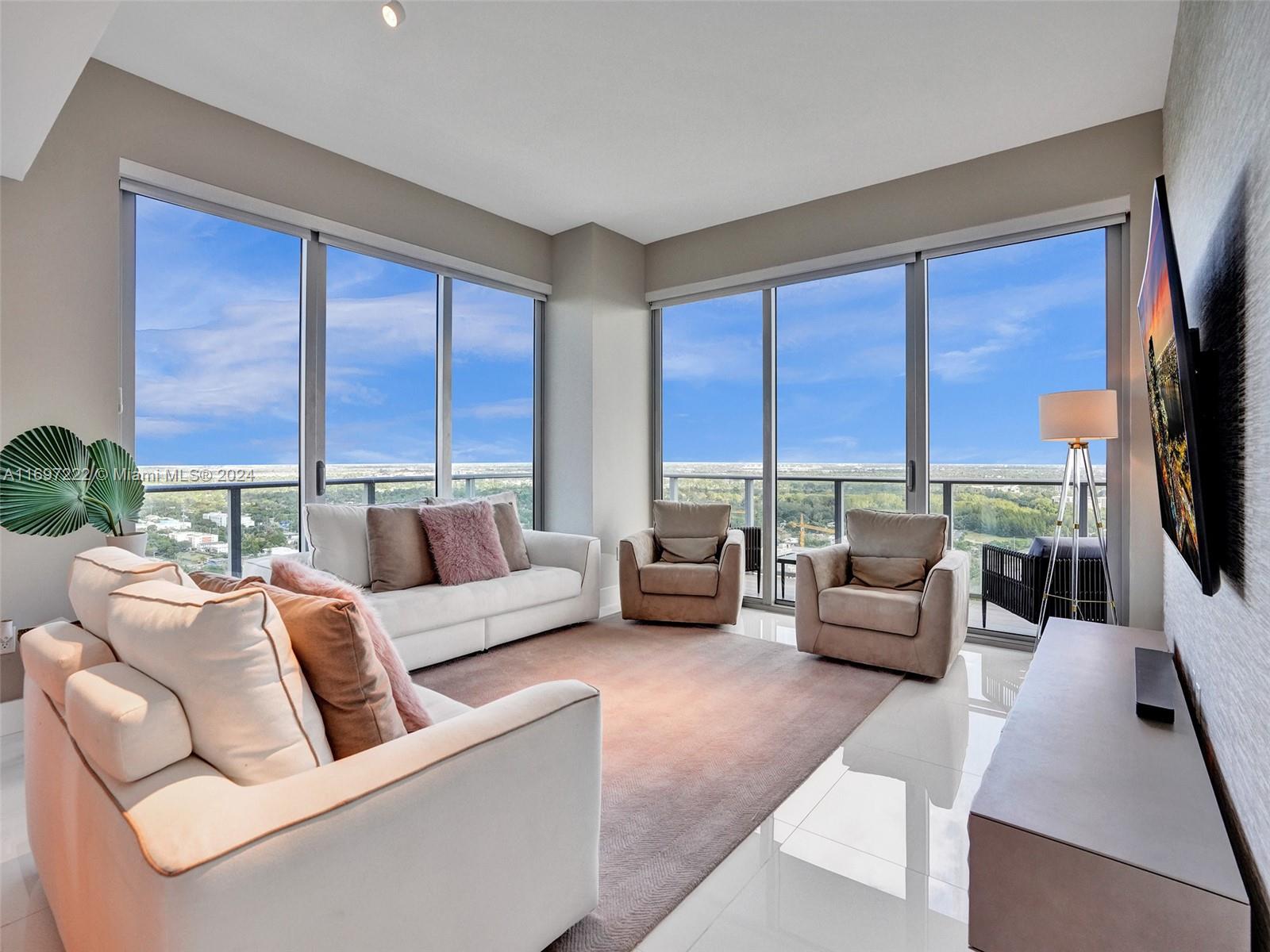 Astonishing Lower Penthouse! 3 Bedroom & 3 Complete Bath + a Versatile Den, corner unit in a prime line at the new luxury condo THE HARBOUR in North Miami. This beautifully decorated and fully equipped condo has an expansive floor plan with a modern open kitchen with LIEBHERR & SMEG appliances, a comfortable dining and living area, and a wide-open balcony. Enjoy stunning views of the Bay and Sunny Isles' magnificent skyline from floor to ceiling windows throughout the condo. THE HARBOUR is a full-service building offering concierge, Spa, Fitness Center, Pool, Kids Room, Tennis and Basketball courts, open Kid's Playground, Picnic area, Bikes on site, Valet and much more! (Realtors see Broker remarks