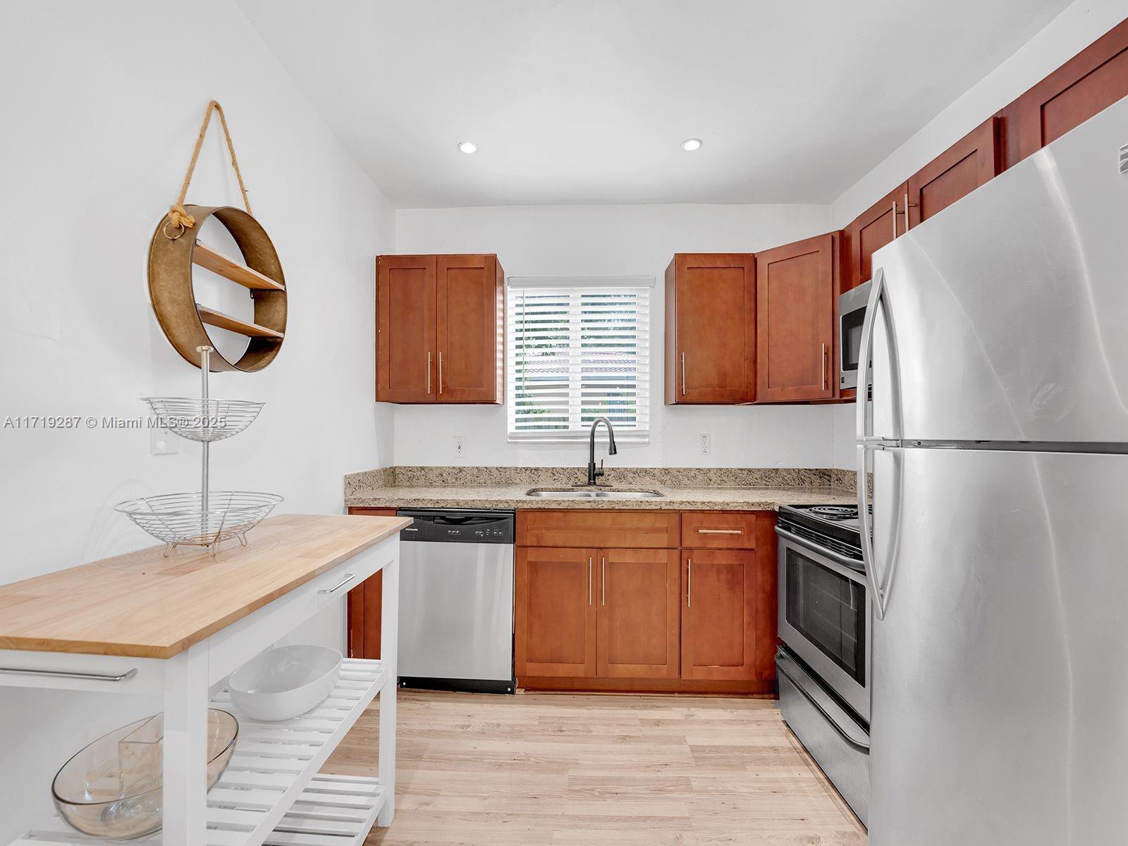Welcome to this turnkey single-family home conveniently located in the heart of the city. This tropical oasis is situated just minutes from the beach, the Brightline Train Station, Oleta River State Park and Aventura Mall to name a few. This charming 3-bedroom, 2.5-bathroom home is offering an abundance of comfort. It boasts a tranquil pond, hurricane-impact windows and doors throughout, central air conditioning, and beautifully remodeled bathrooms. The kitchen is outfitted with sleek stainless steel appliances, granite countertops, and a dishwasher. Additional highlights include a tankless water heater, a laundry room with Samsung washer and dryer, and a spacious, fully fenced backyard. This is one of the best priced homes on the market and will not last! Easy to Show.