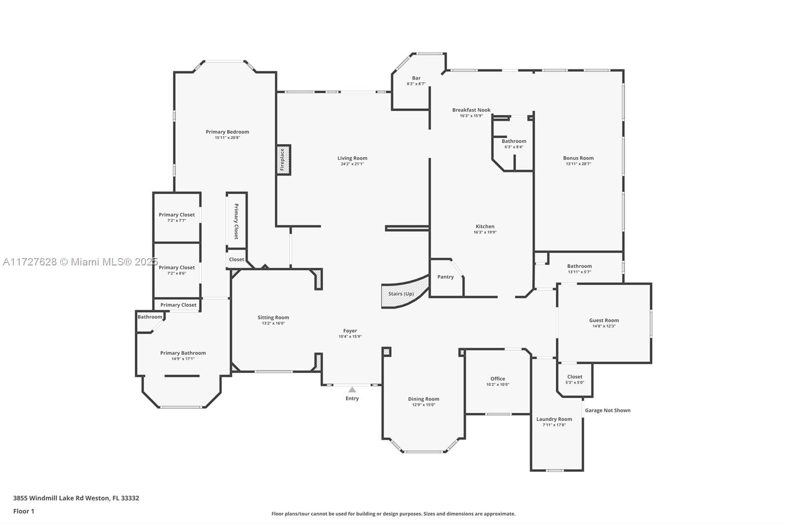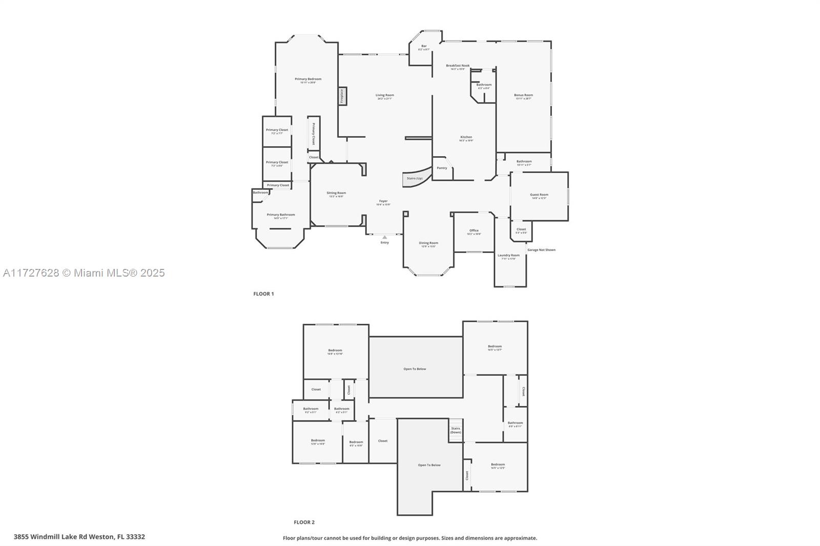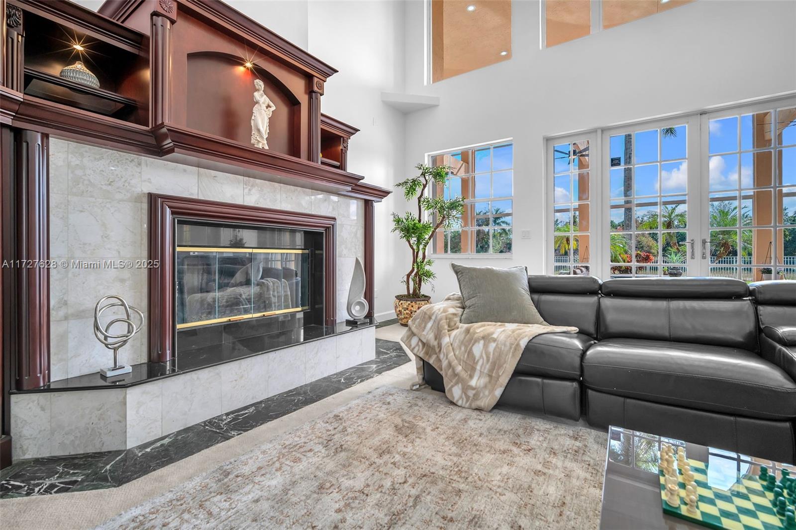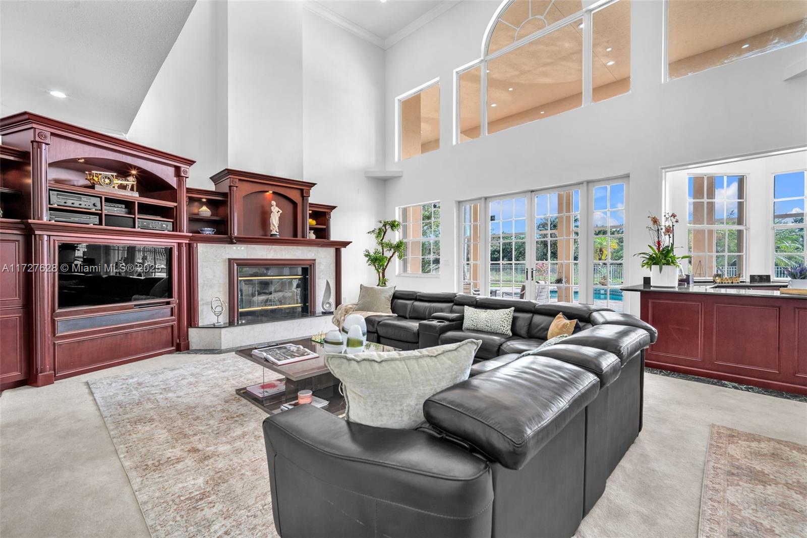 Nestled within the exclusive, gated enclave of Windmill Lake Estates, this extraordinary lakefront/pool estate on 1 acreage offers an exceptional blend of privacy and Luxury, in the heart of Weston. Ideally located near top-tier schools, showcasing an impressive grand entry foyer adorned with exquisite marble flooring that extends throughout the first level. Towering 22-foot ceilings in the family room create a dramatic connection to the space, while a stunning fireplace exudes warmth and grandeur. The gourmet kitchen features a spacious breakfast area, a bar, perfect for hosting gatherings. This home boasts 6 lavish suites, den, private office and 5 full bathrooms. A game room provide space for both work and play, Roof 2020, A/C's 2021. Private covered patio with spectacular lake views.