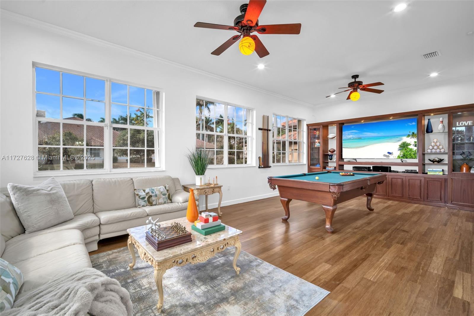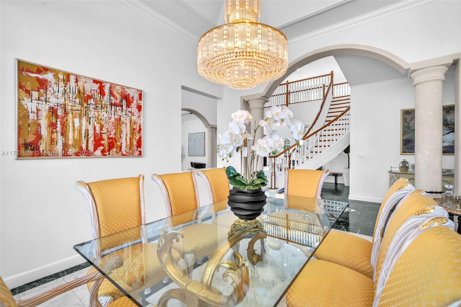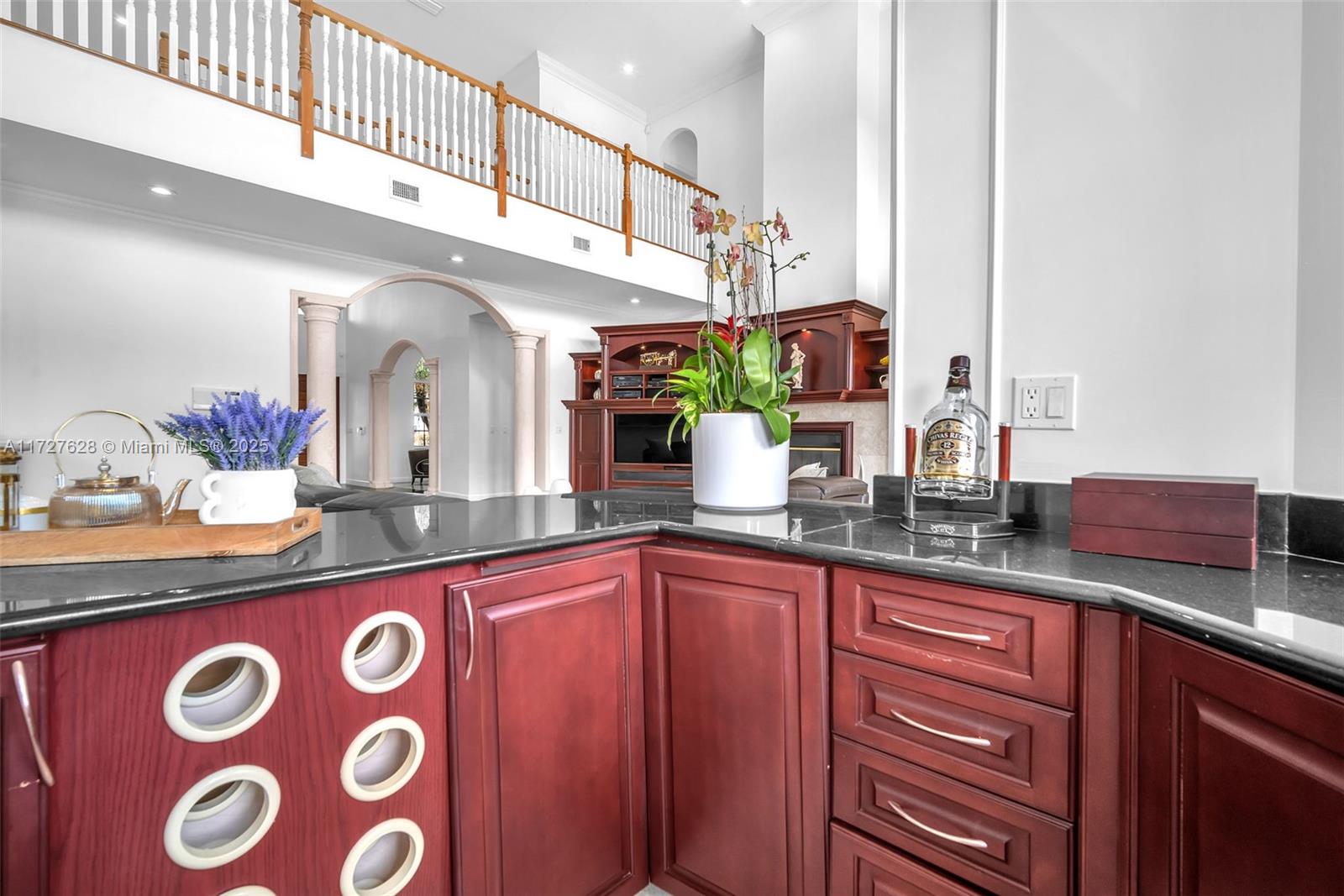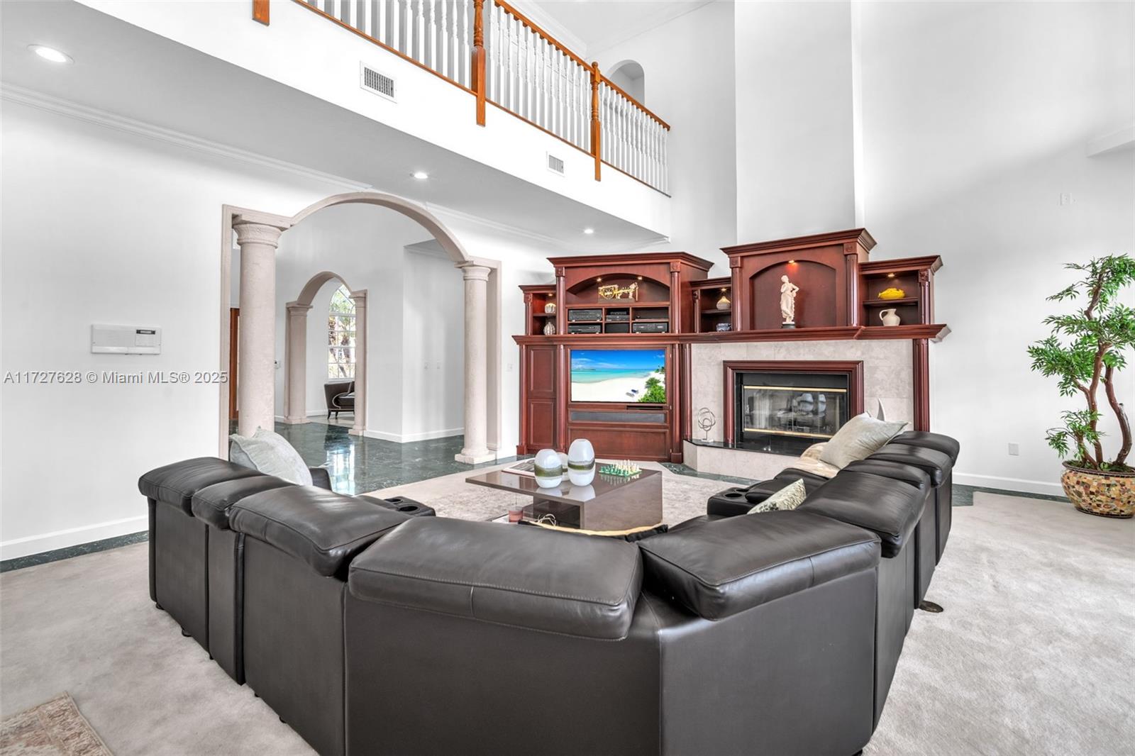 Nestled within the exclusive, gated enclave of Windmill Lake Estates, this extraordinary lakefront/pool estate on 1 acreage offers an exceptional blend of privacy and Luxury, in the heart of Weston. Ideally located near top-tier schools, showcasing an impressive grand entry foyer adorned with exquisite marble flooring that extends throughout the first level. Towering 22-foot ceilings in the family room create a dramatic connection to the space, while a stunning fireplace exudes warmth and grandeur. The gourmet kitchen features a spacious breakfast area, a bar, perfect for hosting gatherings. This home boasts 6 lavish suites, den, private office and 5 full bathrooms. A game room provide space for both work and play, Roof 2020, A/C's 2021. Private covered patio with spectacular lake views.