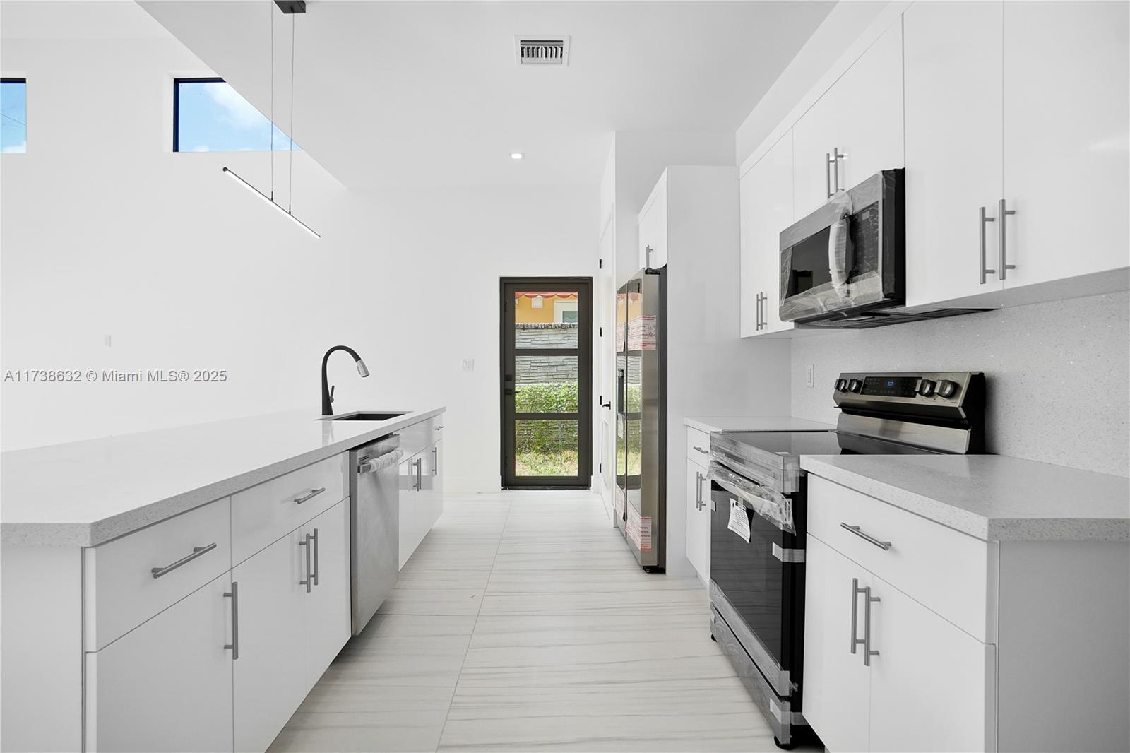 Stunning, modern, 2022-construction, 3 bedroom/2.5 bath townhouse! Great floor plan with open-top elegant finishes. Modern open kitchen with stainless steel appliances, white laquered top-of-the-line cabinets and quartz countertops. Washer and dryer conveniently located in the kitchen. Impact windows and doors. Marvelous, large ceramic tiles all throughout the home. Nice size bedrooms. Gated driveway and backyard. Showers come with glass enclosures. Both units A and B are for sale. Centrally located with no rental restrictions. Won't last.