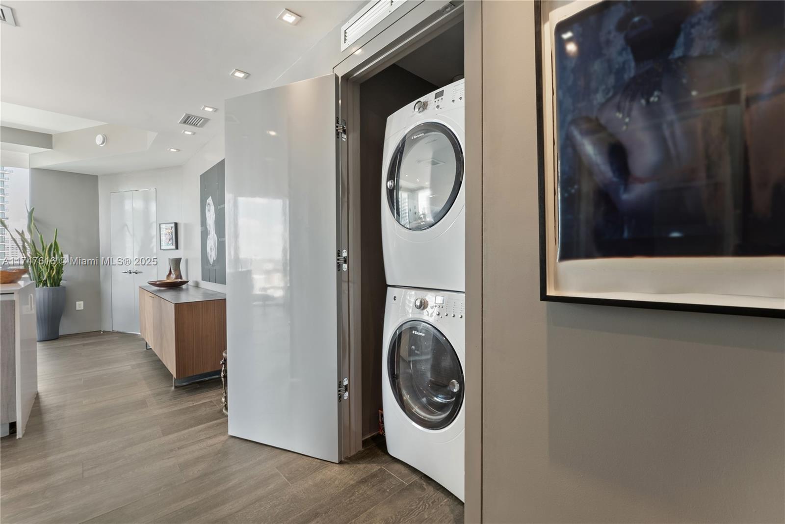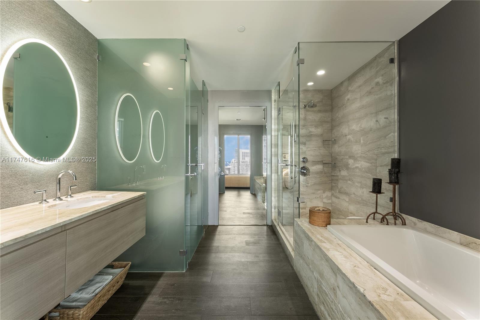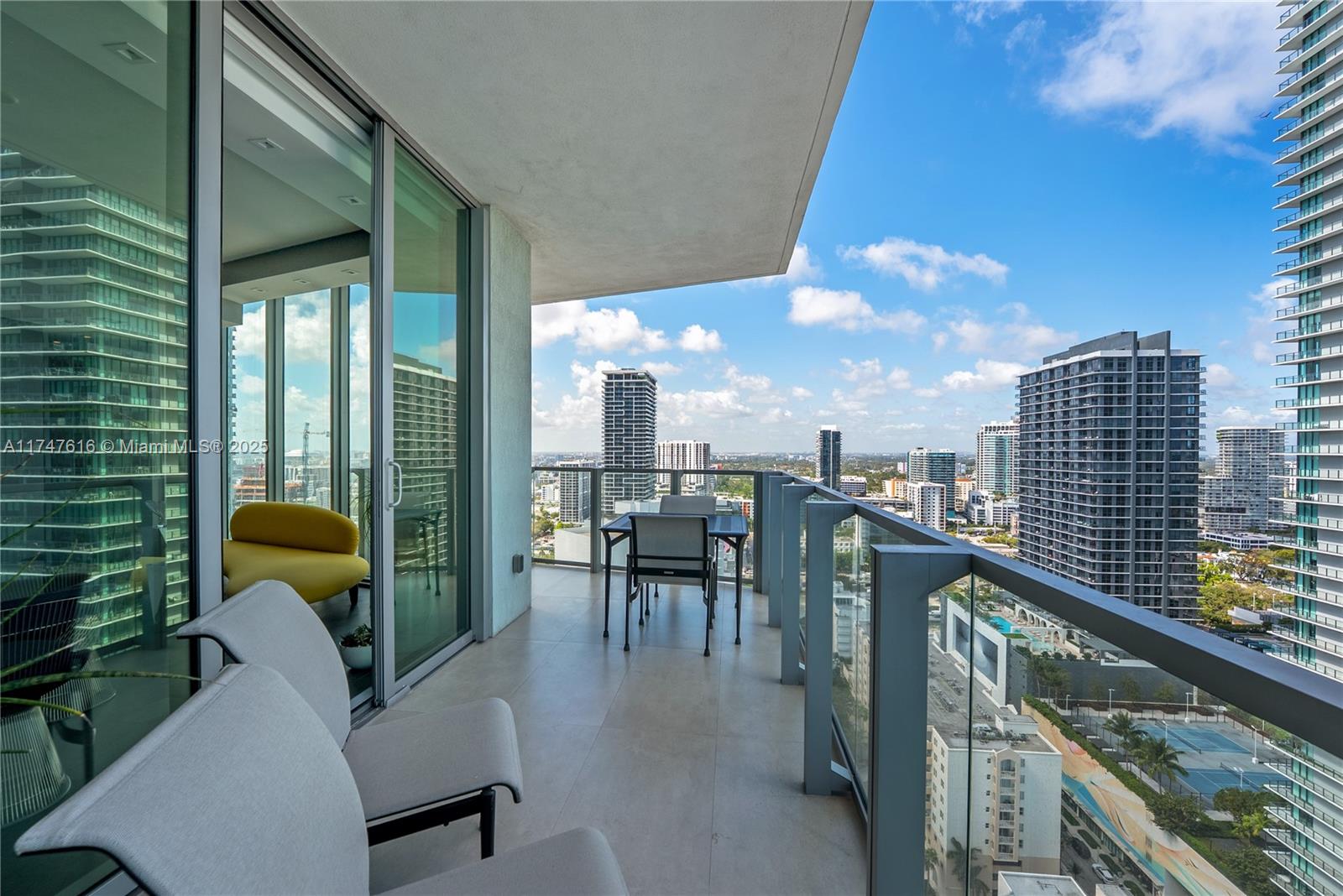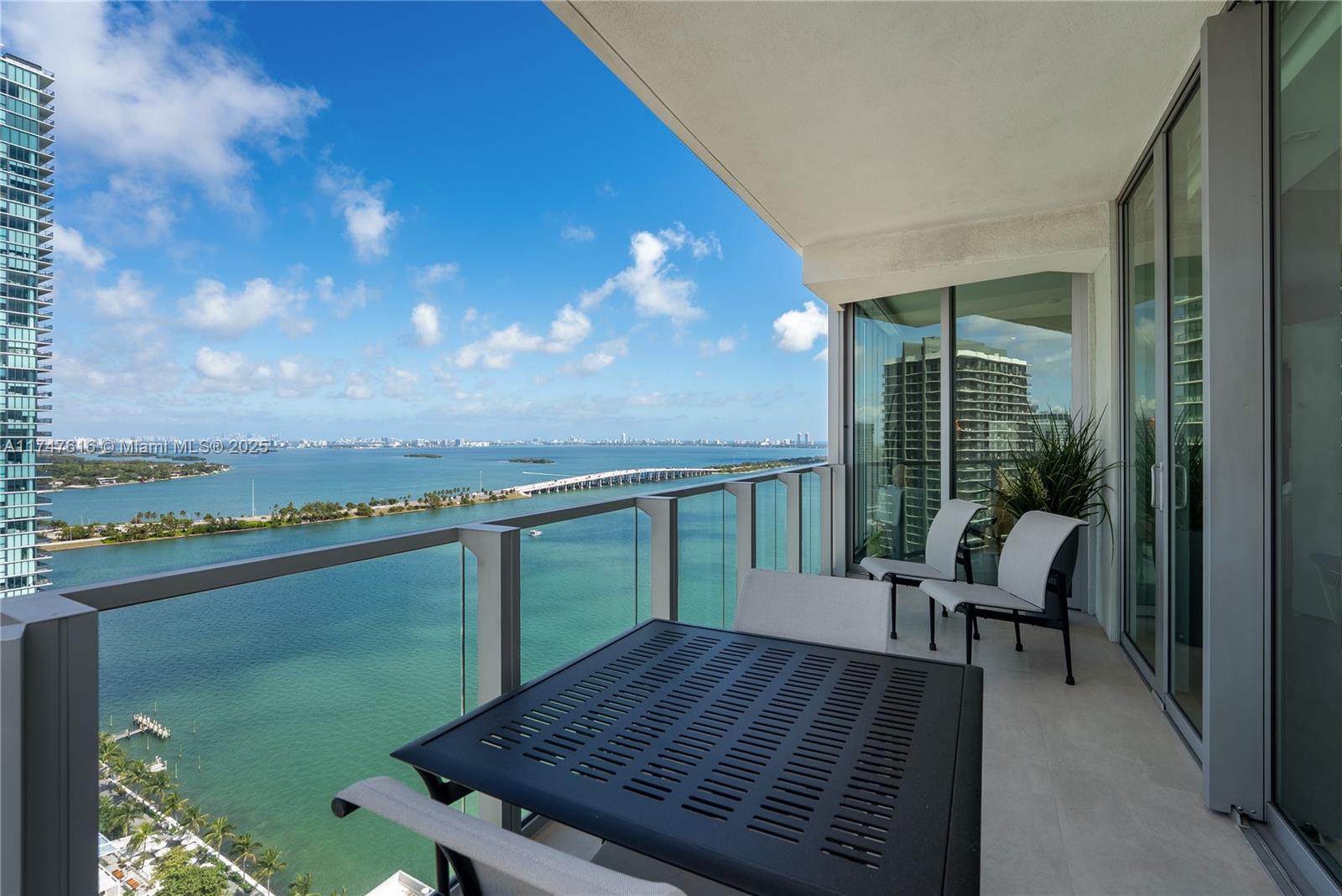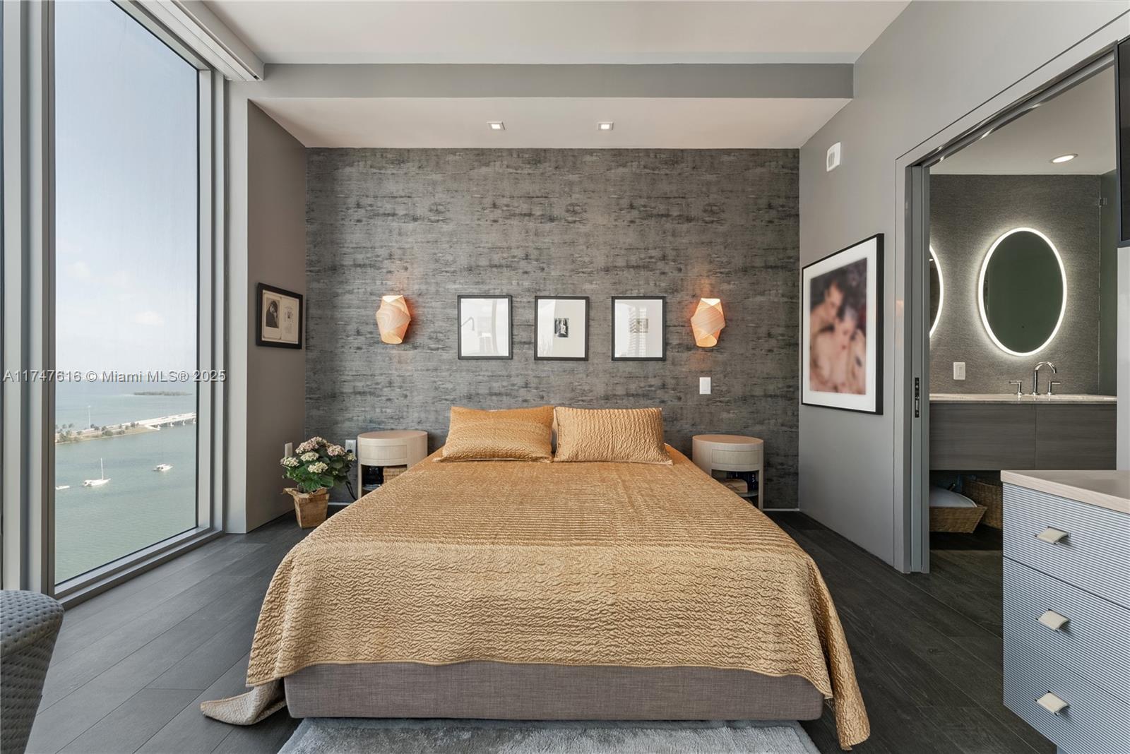 Biscayne Beach #2601 offers the best of both worlds - open bay and city/sunset views! This spacious corner 2-bedroom, 2.5-bathroom condo spans 1,060 sq. ft., features a private foyer entrance and custom artistic finishes throughout. Upgrades include custom lacquered solid-wood doors and custom closets - all with Italian hardware, upgraded modern lighting, textured wood-style porcelain floors, and a mirrored kitchen backsplash. Bathrooms boast Italian porcelain walls, backlit mirrors and extra storage cabinetry. Living area and bedrooms have automated window shades. 2 tandem parking spaces included and a storage unit is available for purchase. Furniture is also available for separate negotiation, featuring unique pieces by Isamu Noguchi, Platner & Ligne Roset.
