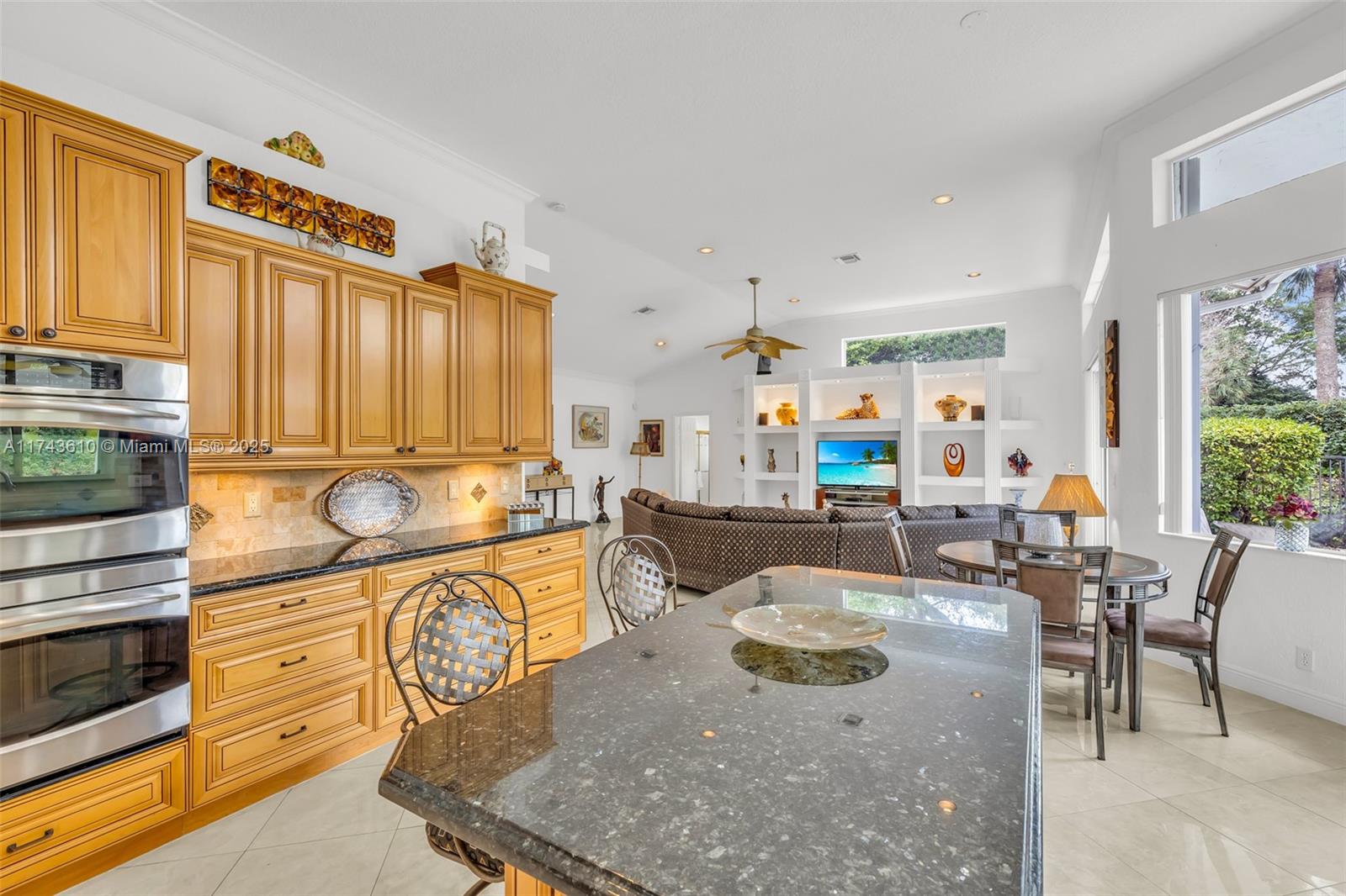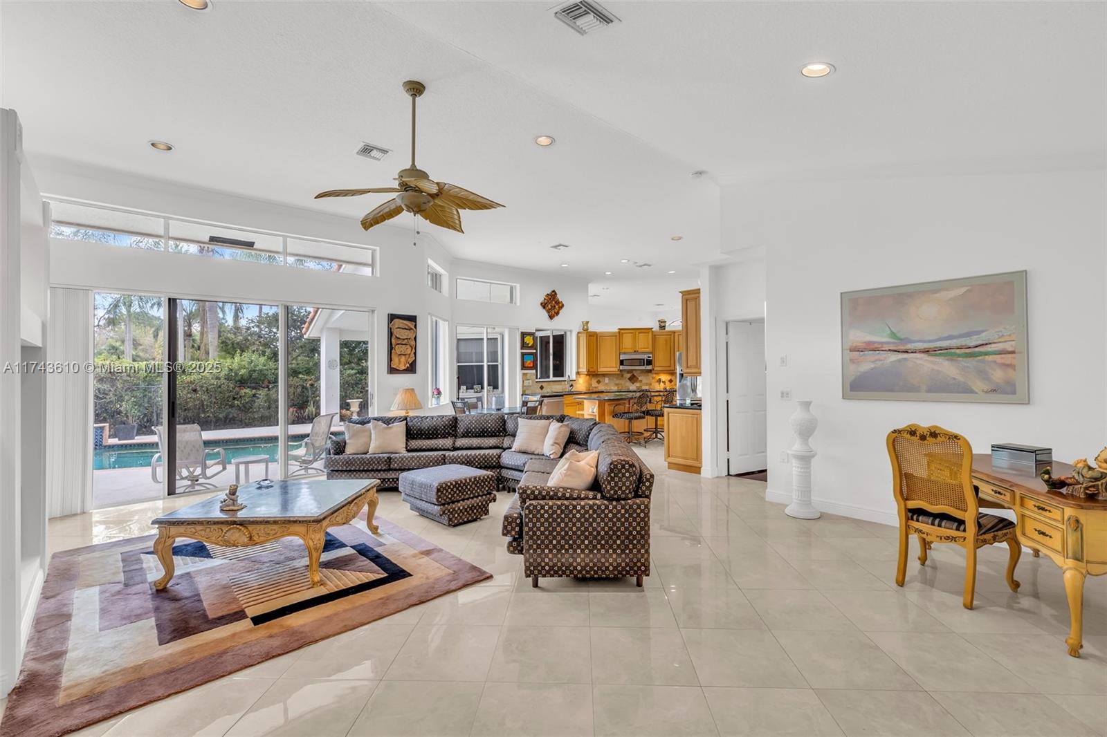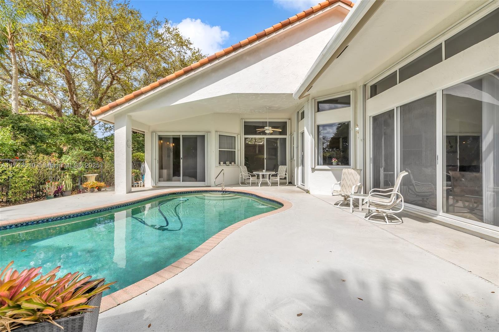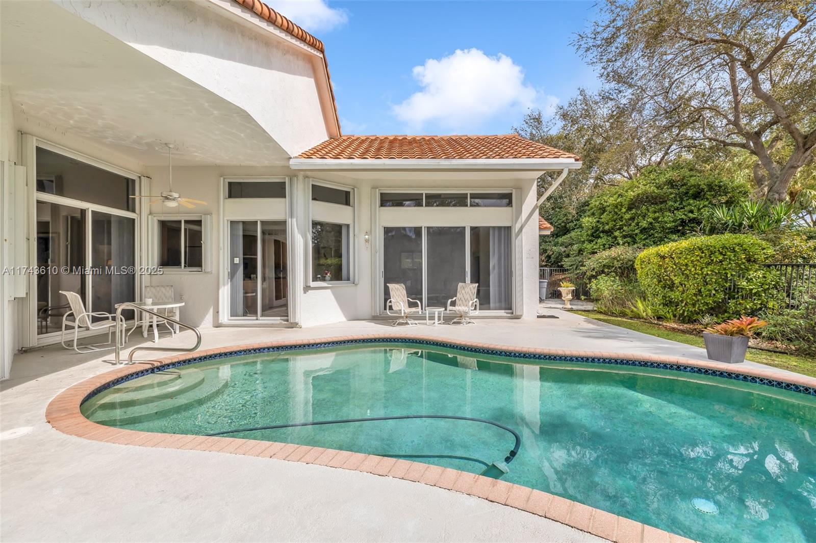 Welcome to this beautifully maintained corner pool home in the prestigious Lakewood subdivision of Weston Hills Country Club. Featuring 3 bedrooms and 3 full baths, this home offers an open, bright floor plan with high ceilings and expansive windows. The kitchen boasts an island, perfect for entertaining, while the living and dining areas overlook the pool, ideal for outdoor gatherings. The master suite offers a luxurious en-suite bath with a soaking tub, separate shower, and dual vanities. This home offers privacy and a serene atmosphere, all while being just moments from shopping, dining, and top-rated schools.