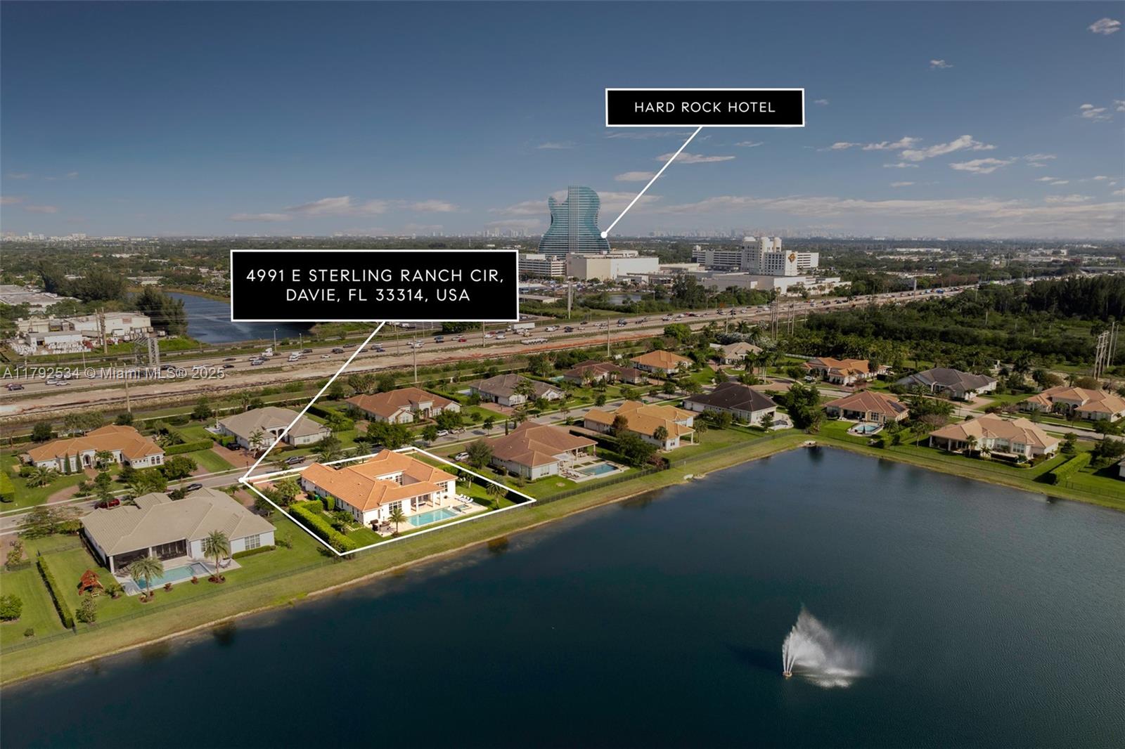 Now available--an exceptional, designer-renovated lakefront home in gated Sterling Ranch. This 4 bd+den|4.5 bth entertainer's dream boasts one of the community's largest backyards, complete with a heated saltwater pool, spa, sun ledge, vibrant lit fountains, and motorized patio screen. Soaring ceilings and abundant natural light enhance the warm, modern open layout with a chef's kitchen, oversized island, custom cabinetry, and premium appliances. Other feautures include a 500-gal propane tank, whole-house generator & water filtration, impact windows/doors, 14-camera system, indoor/outdoor speakers, bespoke lighting, and expansive custom closets. A rare fusion of style, privacy, & smart living--within view of the iconic guitar-shaped Hard Rock. Close to schools, shopping, beaches & highways.